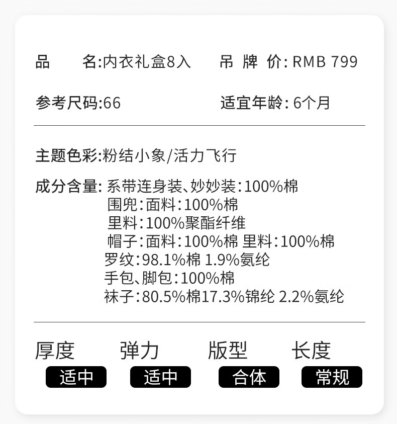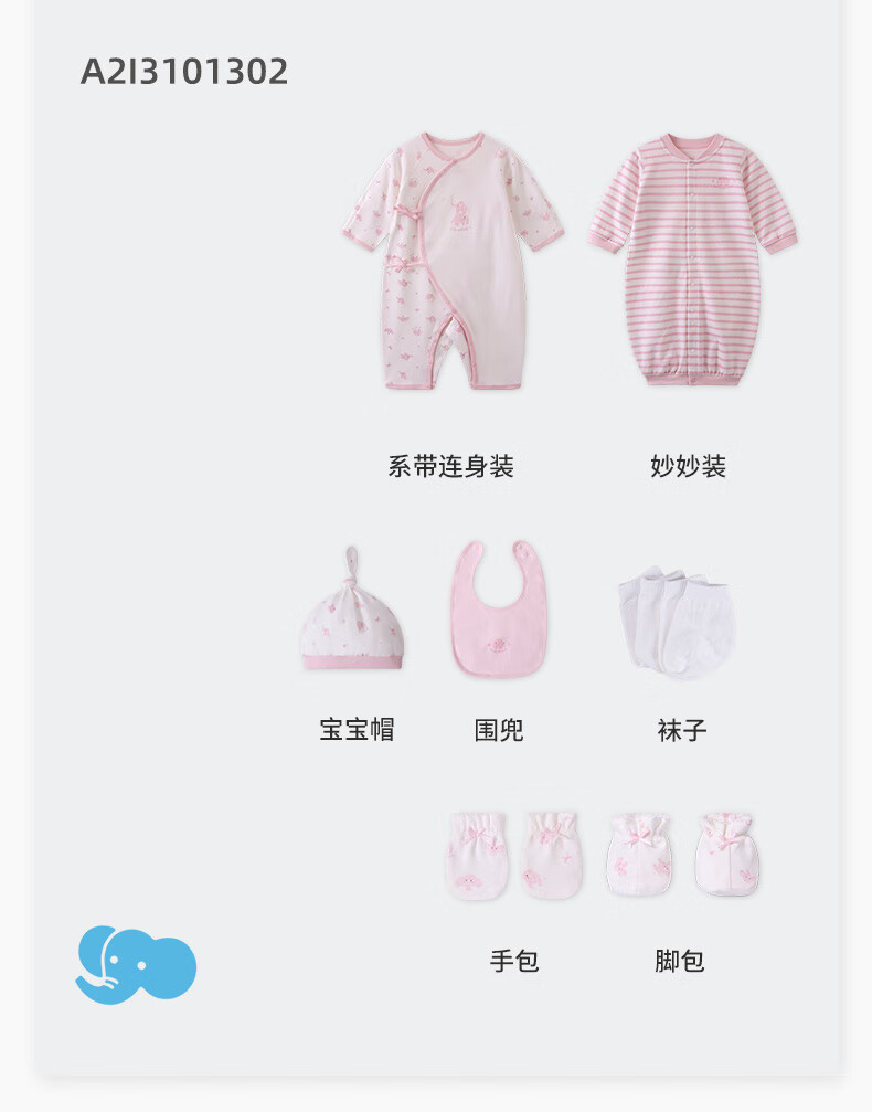 Liyinfang Newborn Gift Box 8-piece Light Luxury Gift Box Baby Onesie Pajamas Baby Harness 2025 New Product Gift Pink Elephant