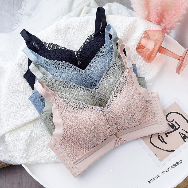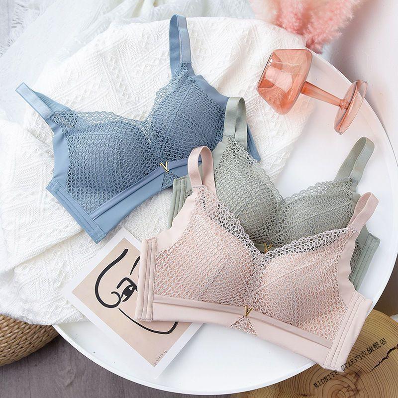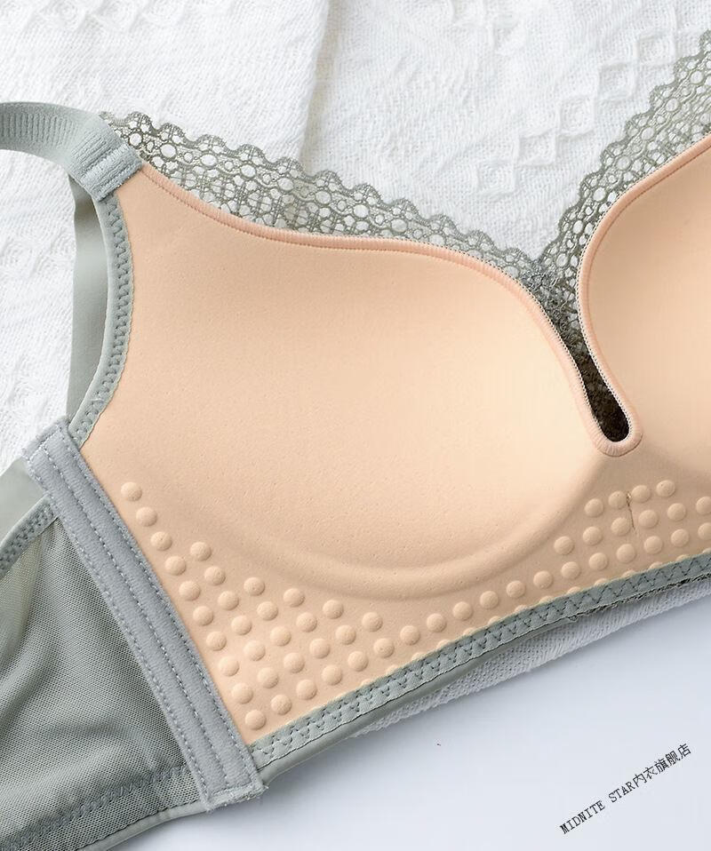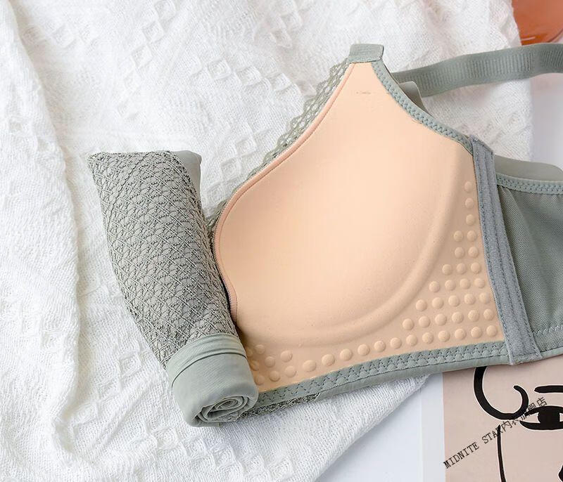 MIDNITE STAR Small Breast Push Up No Wire Ring Adjustable Bra Women's Thick and Thin Cup Upper Breast Holding Bra Set Green Set 70A 32B