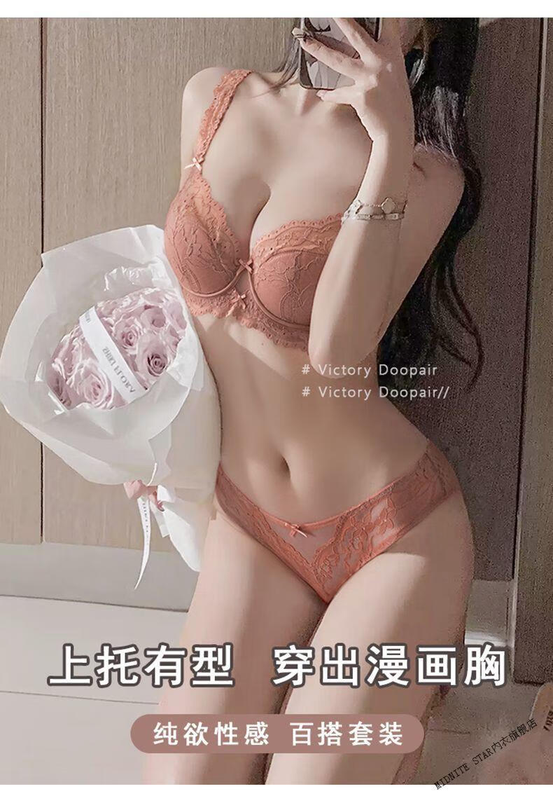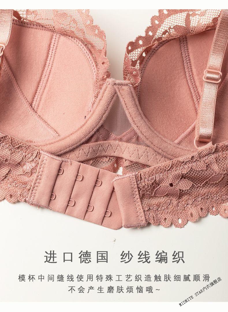 MIDNITE STAR French lace underwear for women push-up small breasts thin anti-sagging pure lust sexy bra set apricot set 70A 32B