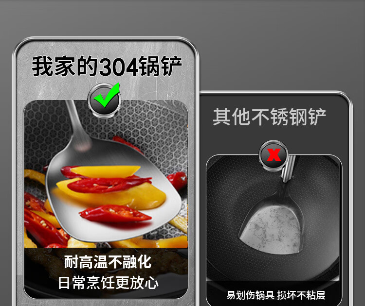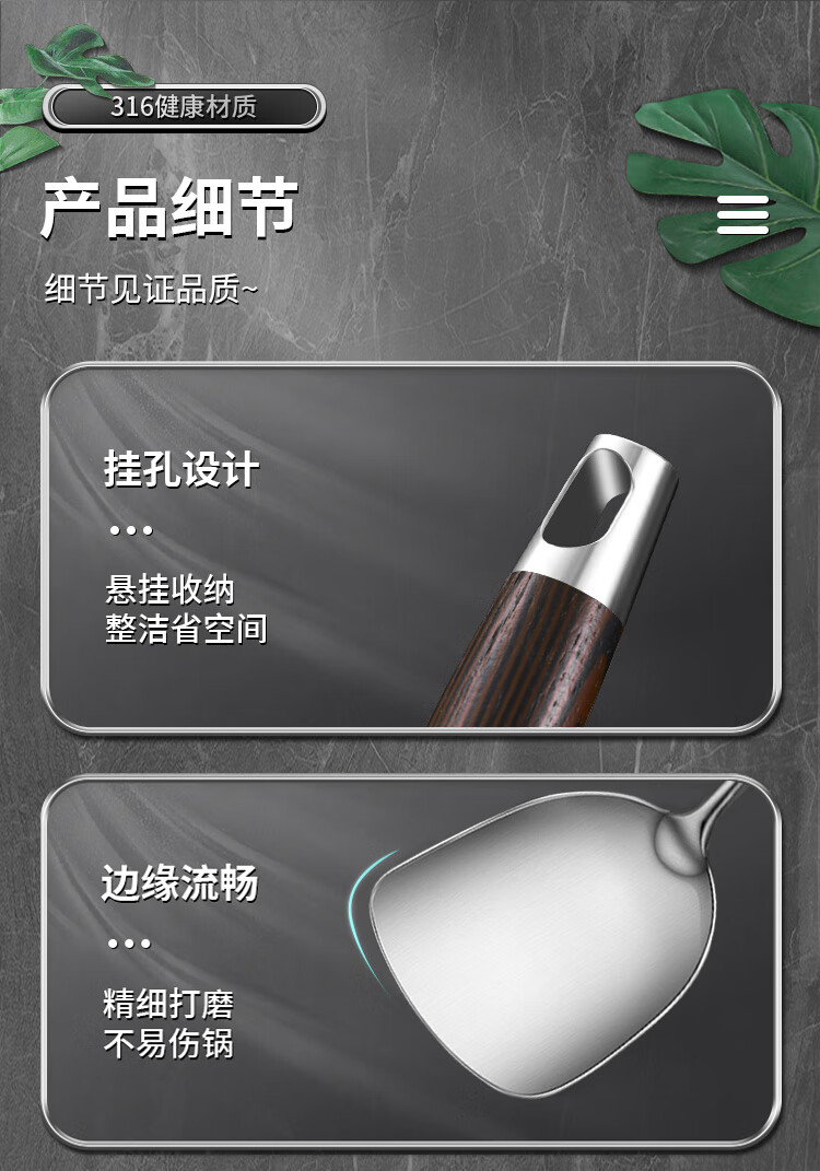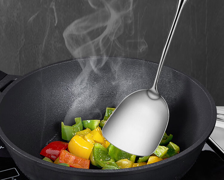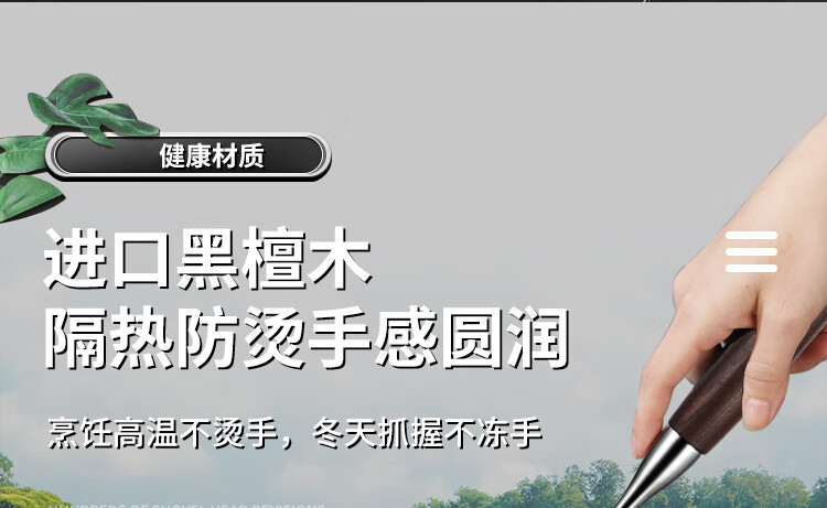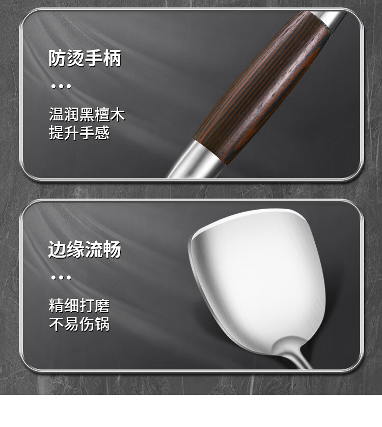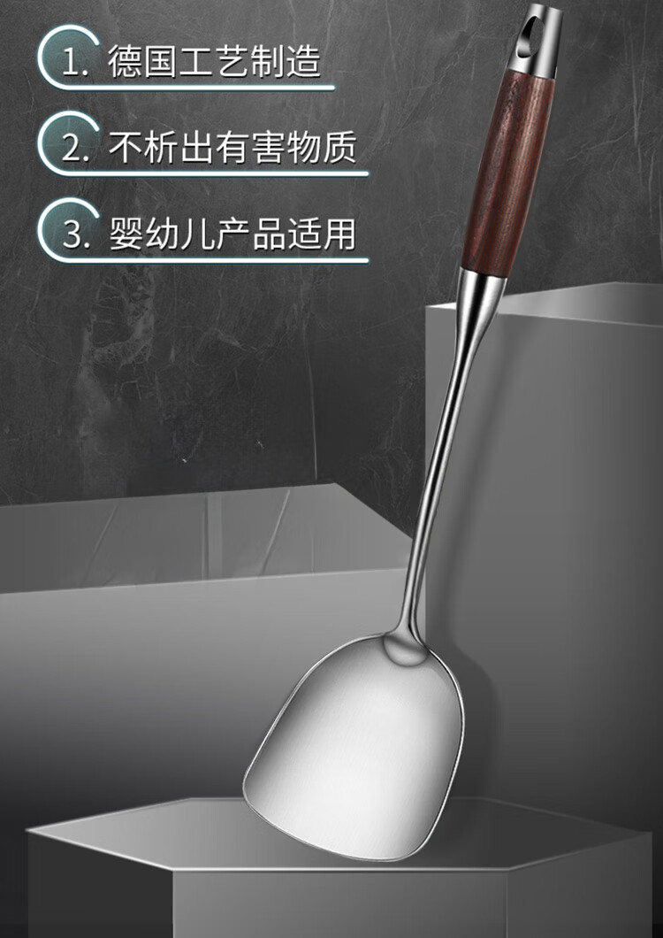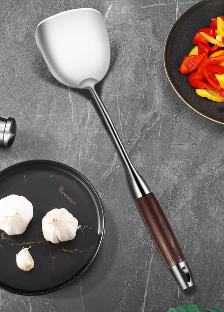 Spatula 304 stainless steel kitchen household thickened cooking spatula soup spoon colander kitchen utensils frying spoon set iron spatula 304 steel spatula ebony series-bold and thickened