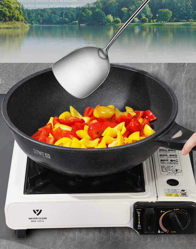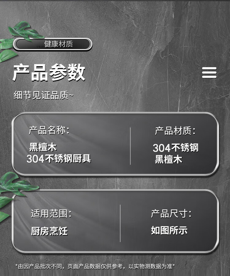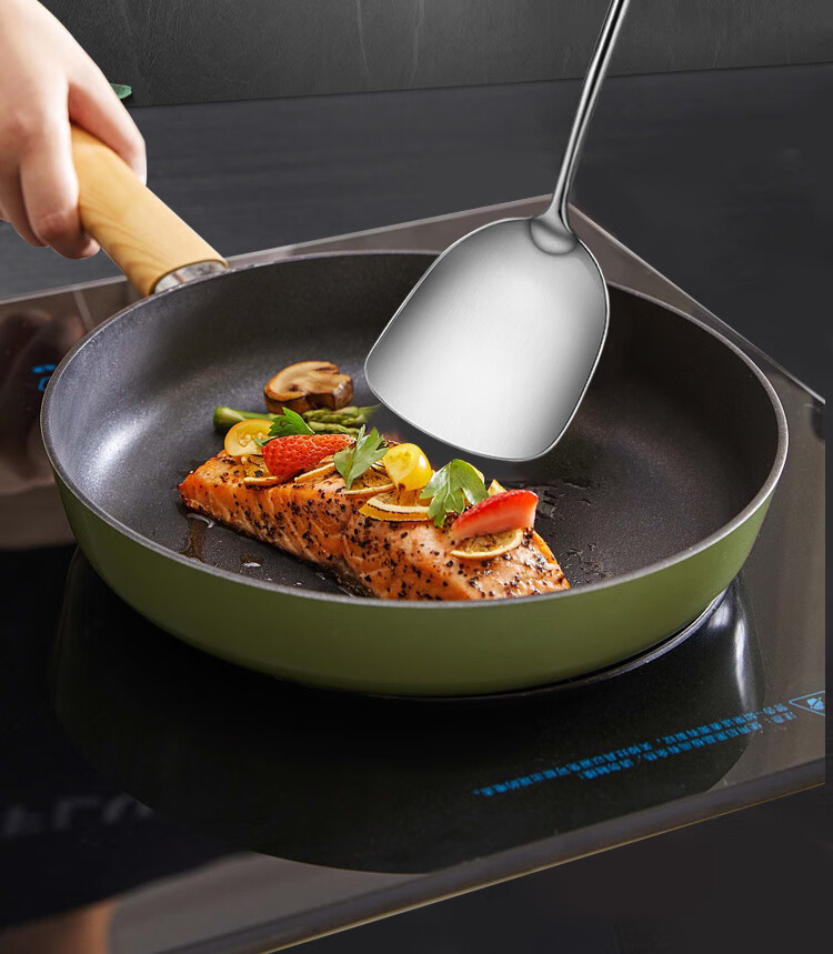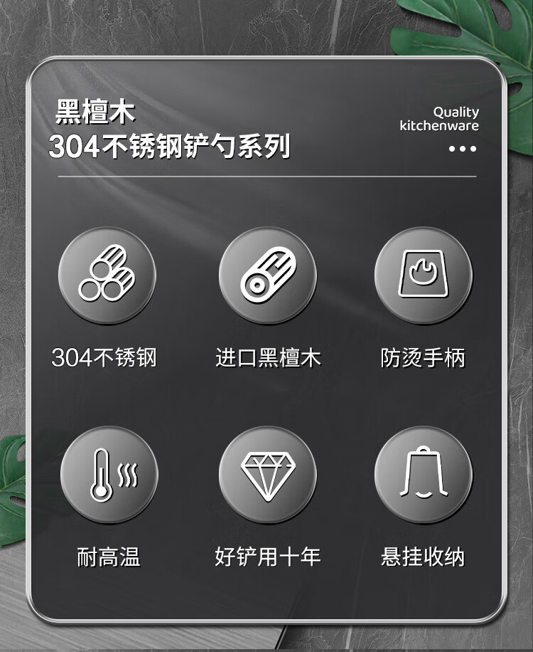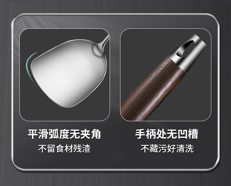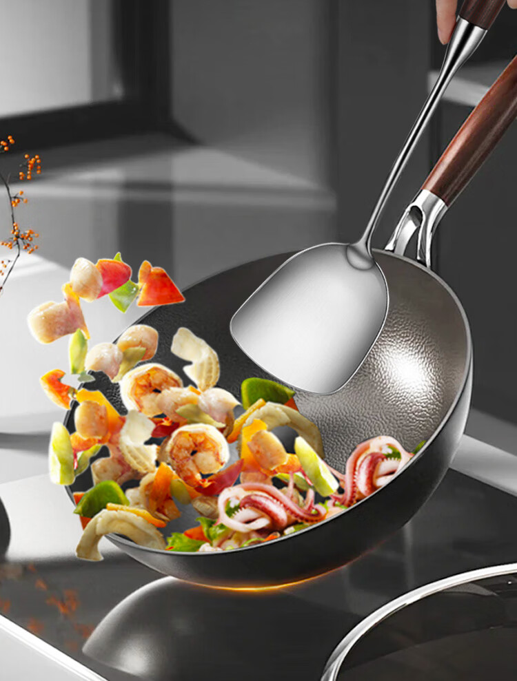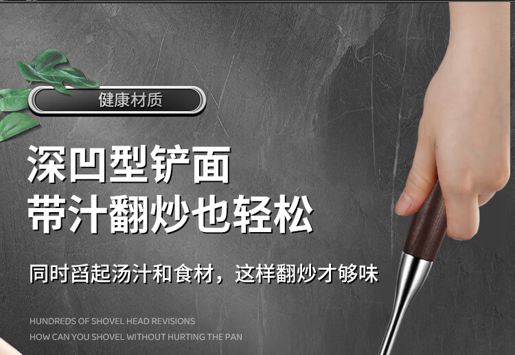 Spatula 304 stainless steel kitchen household thickened cooking spatula soup spoon colander kitchen utensils frying spoon set iron spatula 304 steel spatula ebony series-bold and thickened