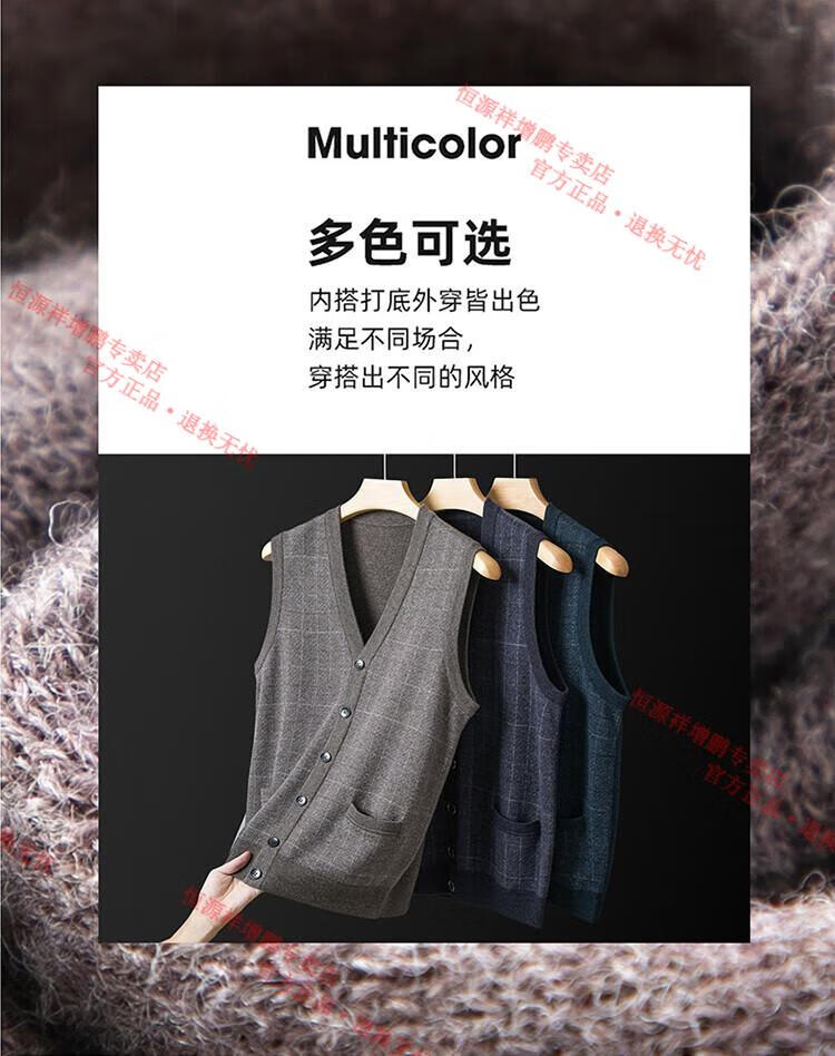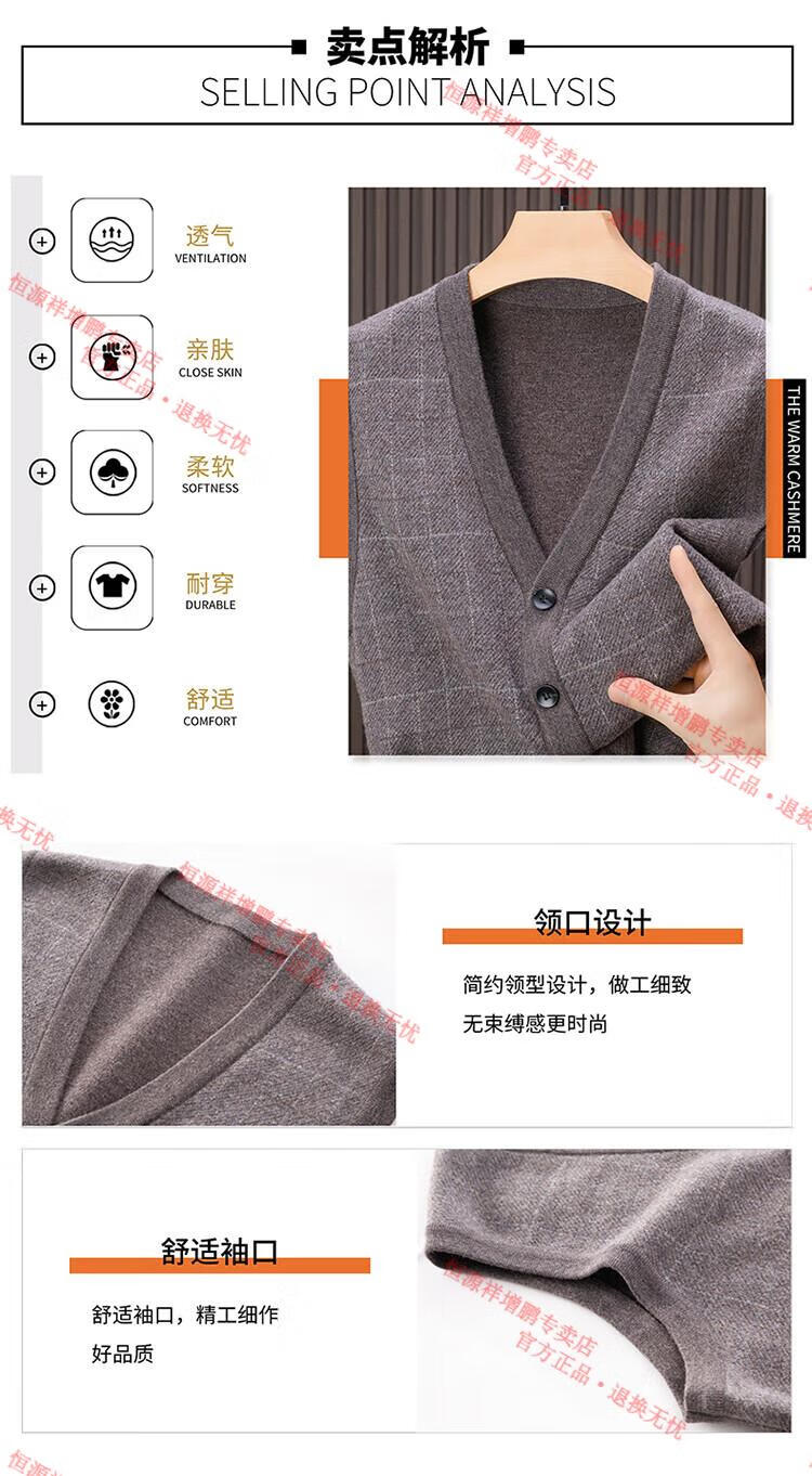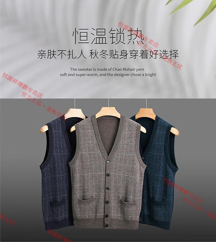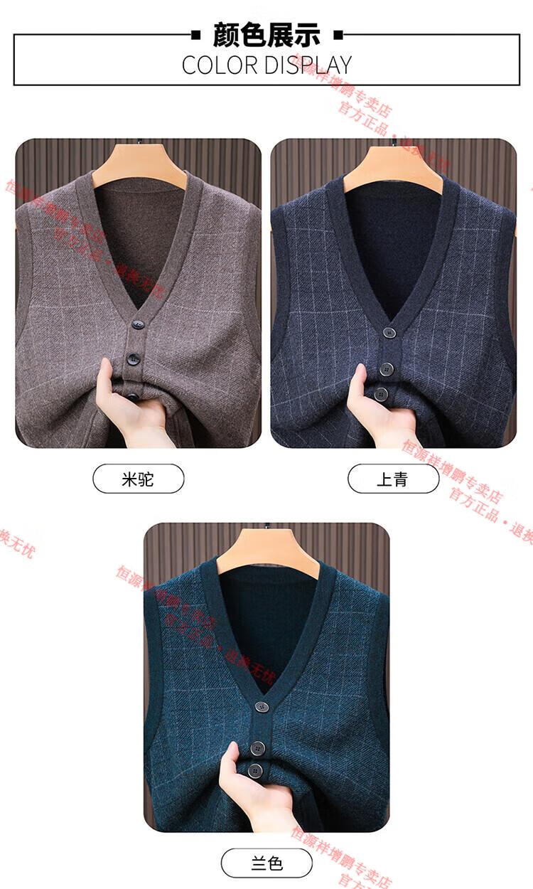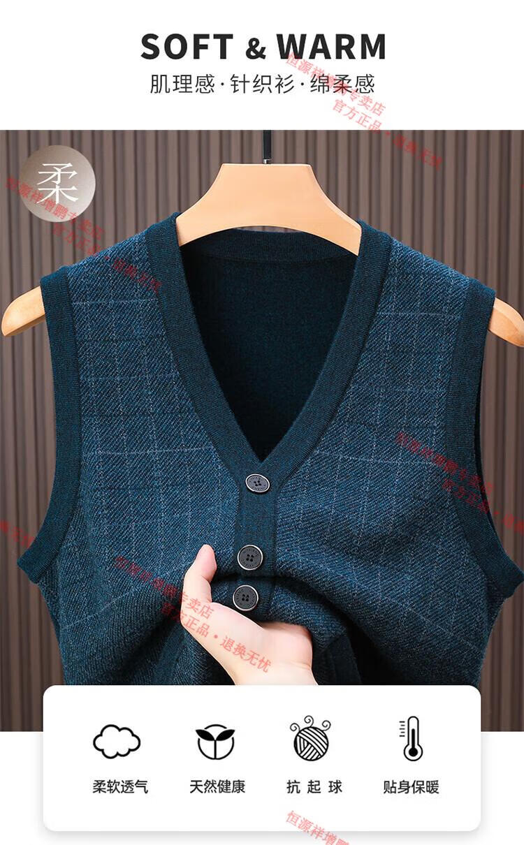 Hengyuanxiang's new autumn and winter thickened 100% wool cardigan men's waistcoat vest sweater middle-aged and elderly V-neck vest daddy outfit Mituo M 105