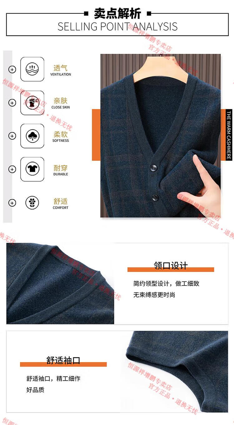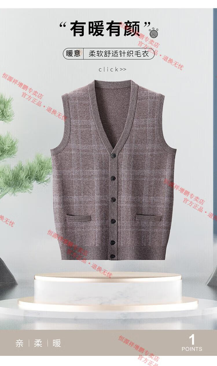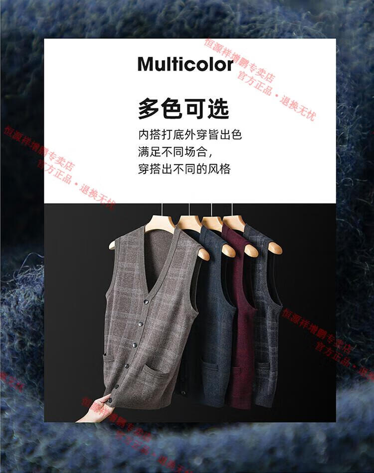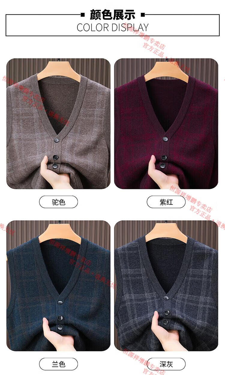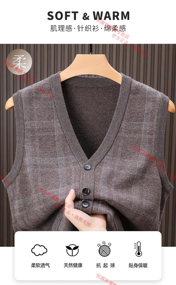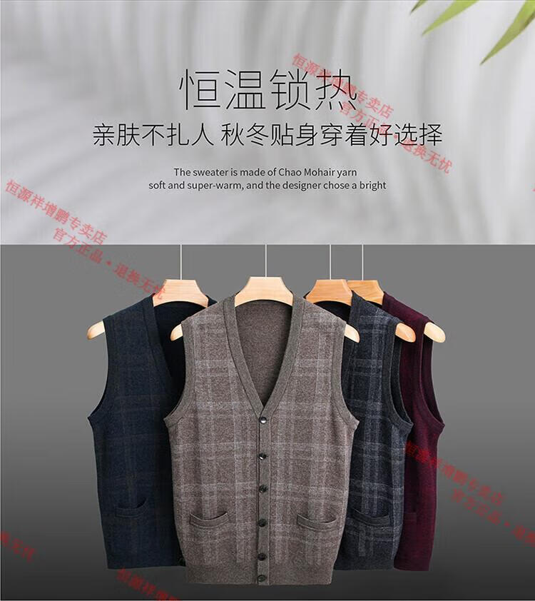 Hengyuanxiang 2025 autumn and winter new 100% pure wool cardigan vest men's v-neck thickened sweater vest middle-aged and elderly waistcoat camel M 105