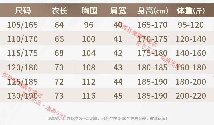 China (cm) 165 / 88-90 170 / 96-98 175 / 108-110 180 / 118-122 185 / 126-130