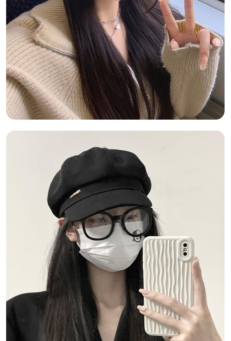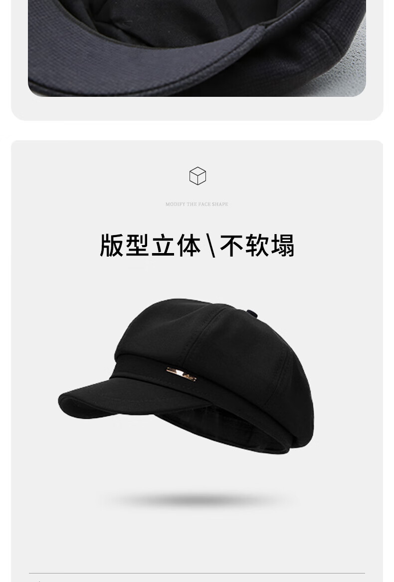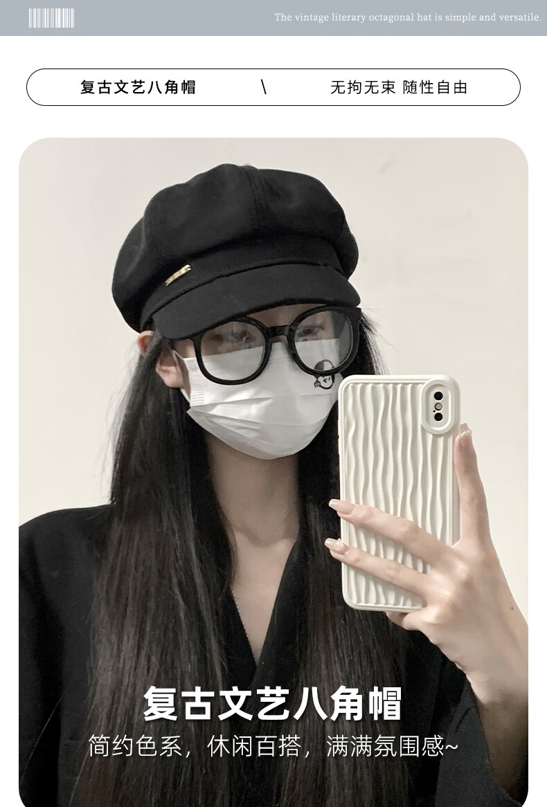 Woodpecker beret women's hat 2026 spring new newsboy hat big head circumference showing face small octagonal hat painter hat black one size