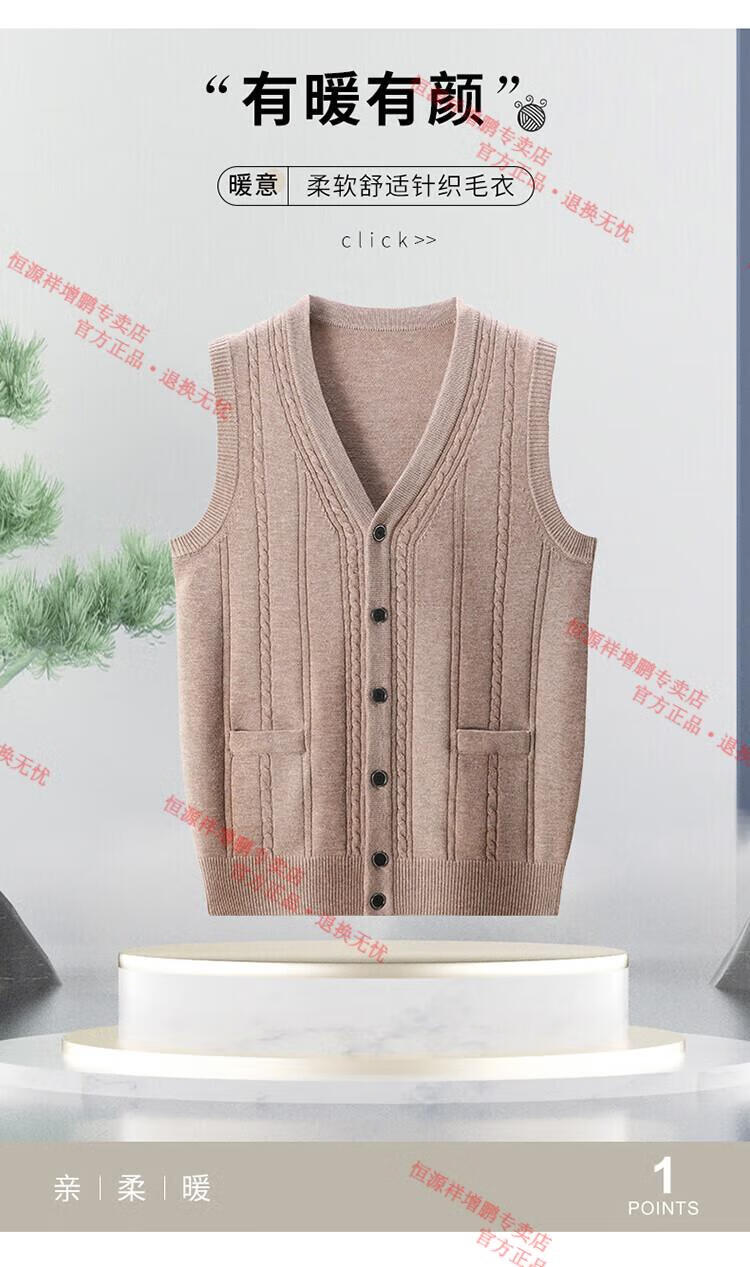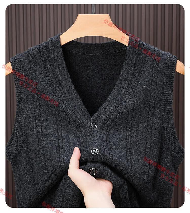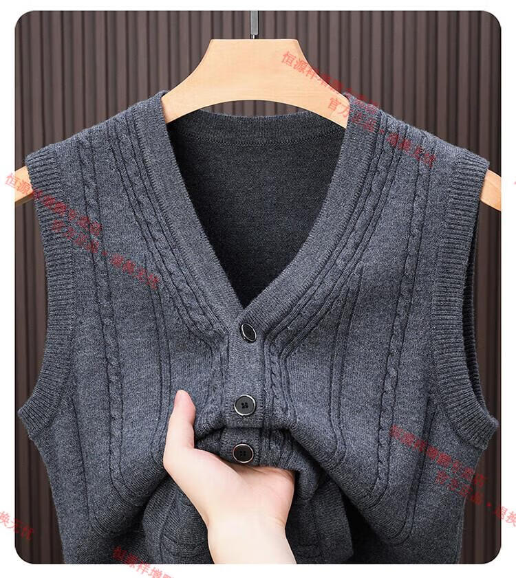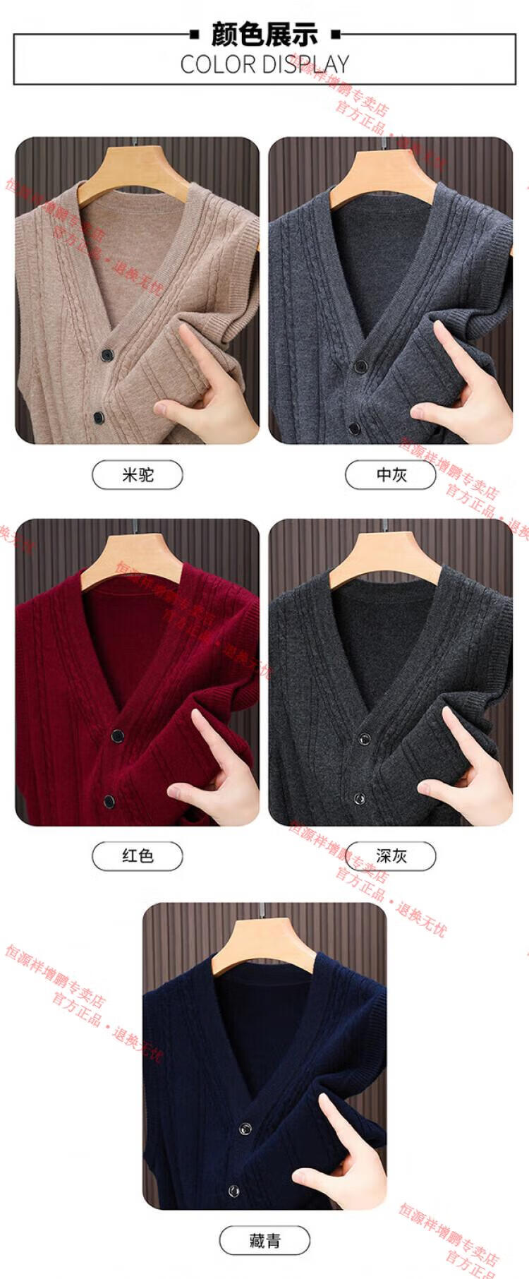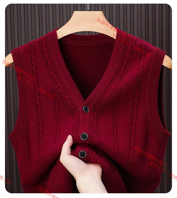 Hengyuanxiang 100% pure wool cardigan men's V-neck vest autumn and winter thickened middle-aged dad's jacquard knitted vest sweater red L 170