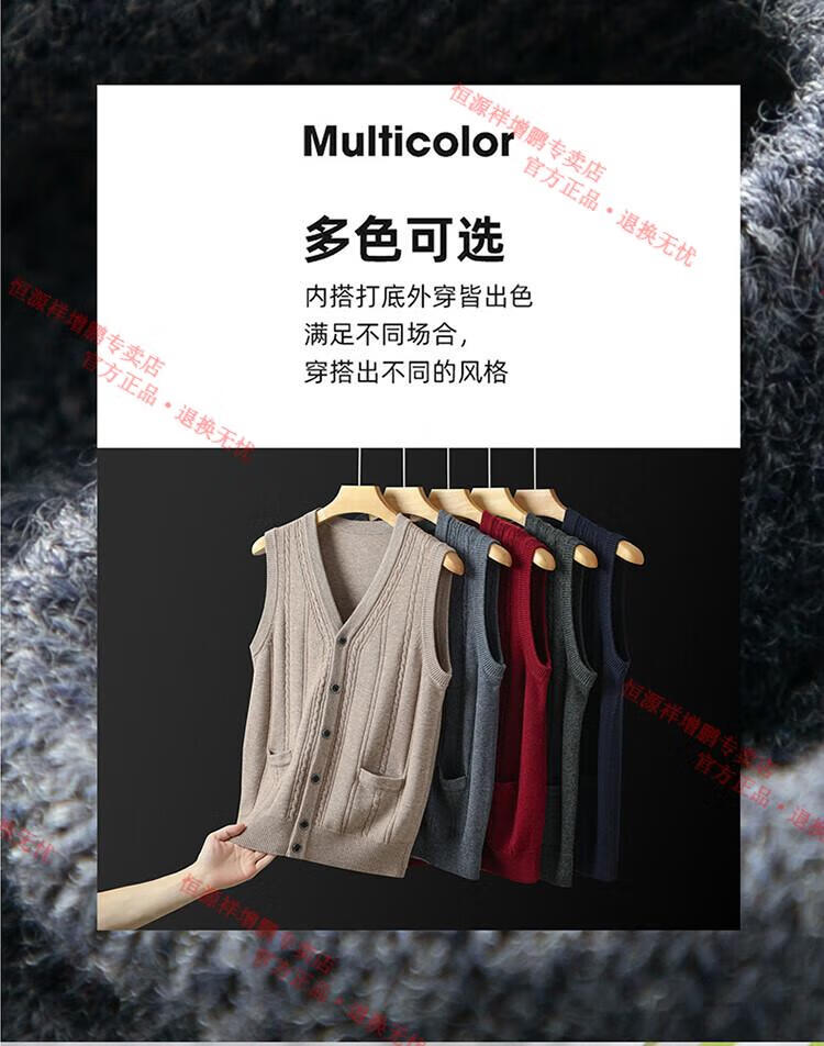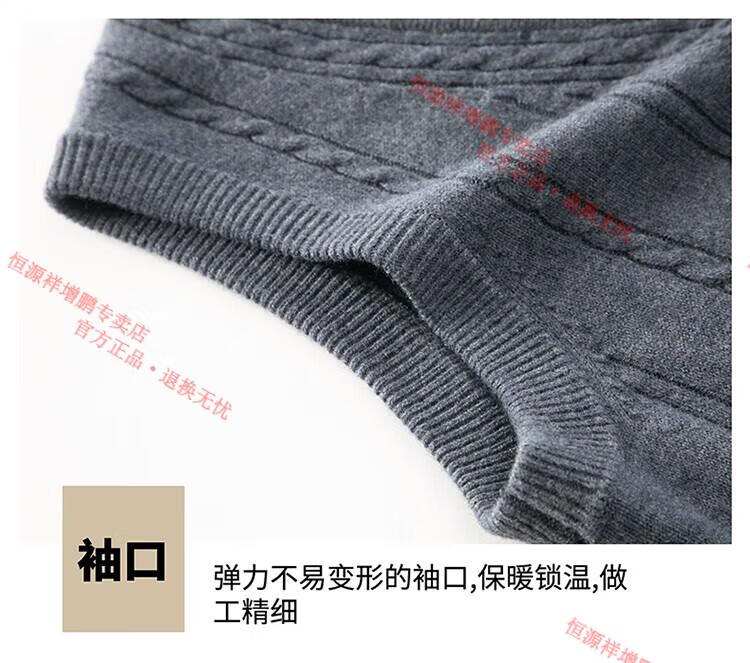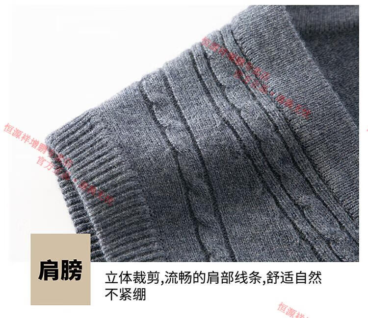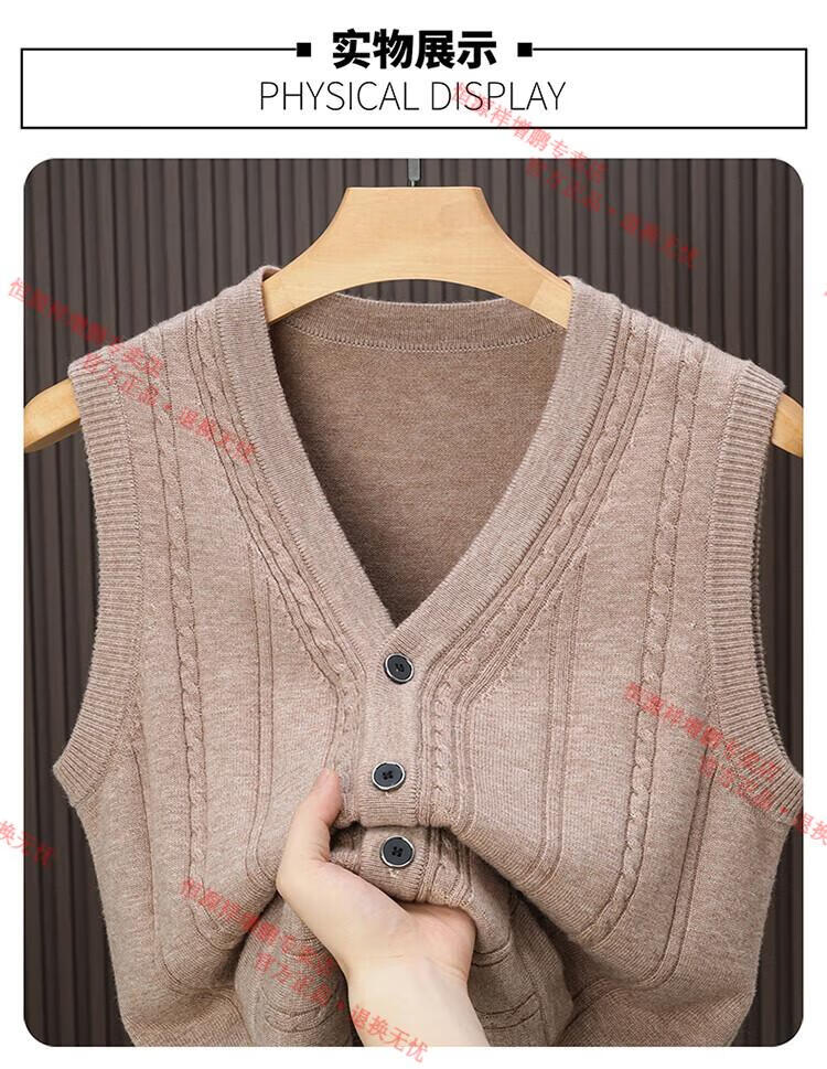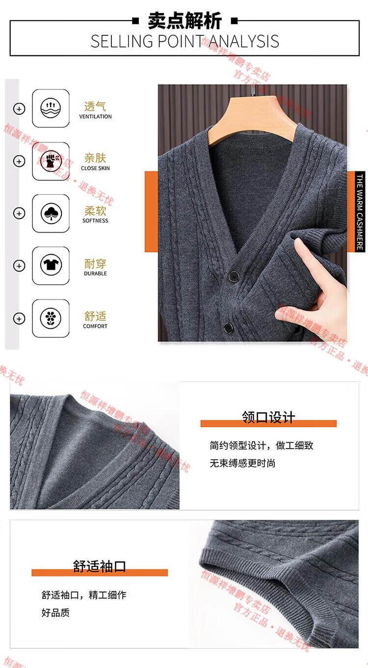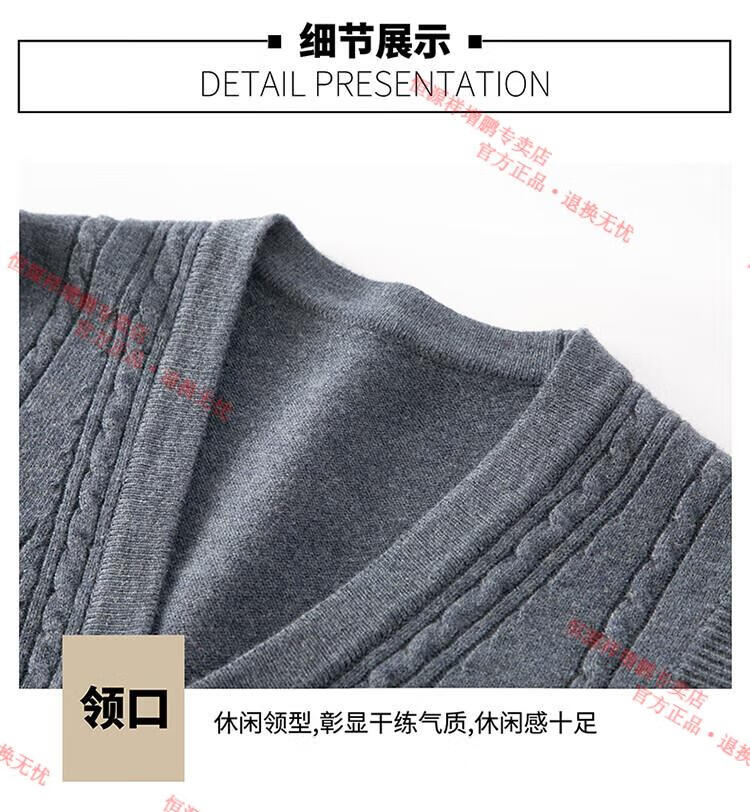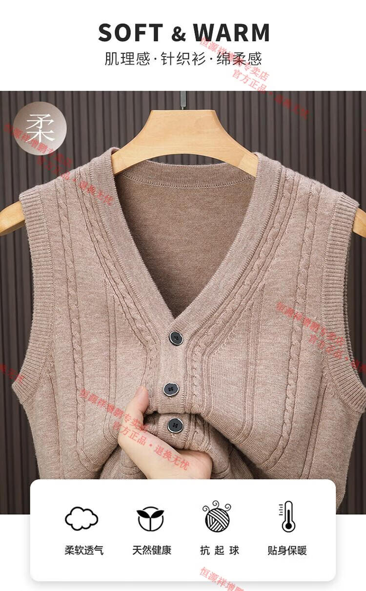 Hengyuanxiang 100% pure wool cardigan men's V-neck vest autumn and winter thickened middle-aged dad's jacquard knitted vest sweater red L 170
