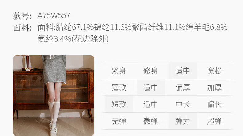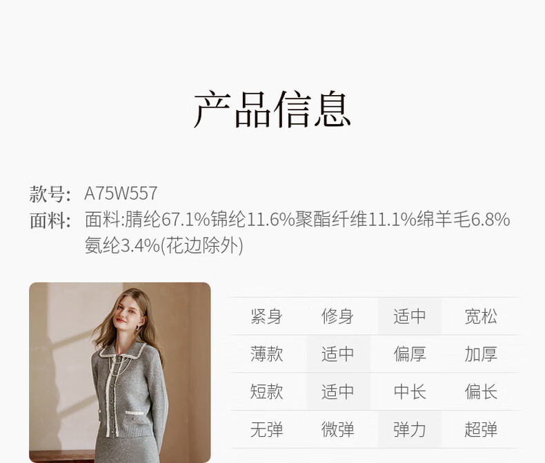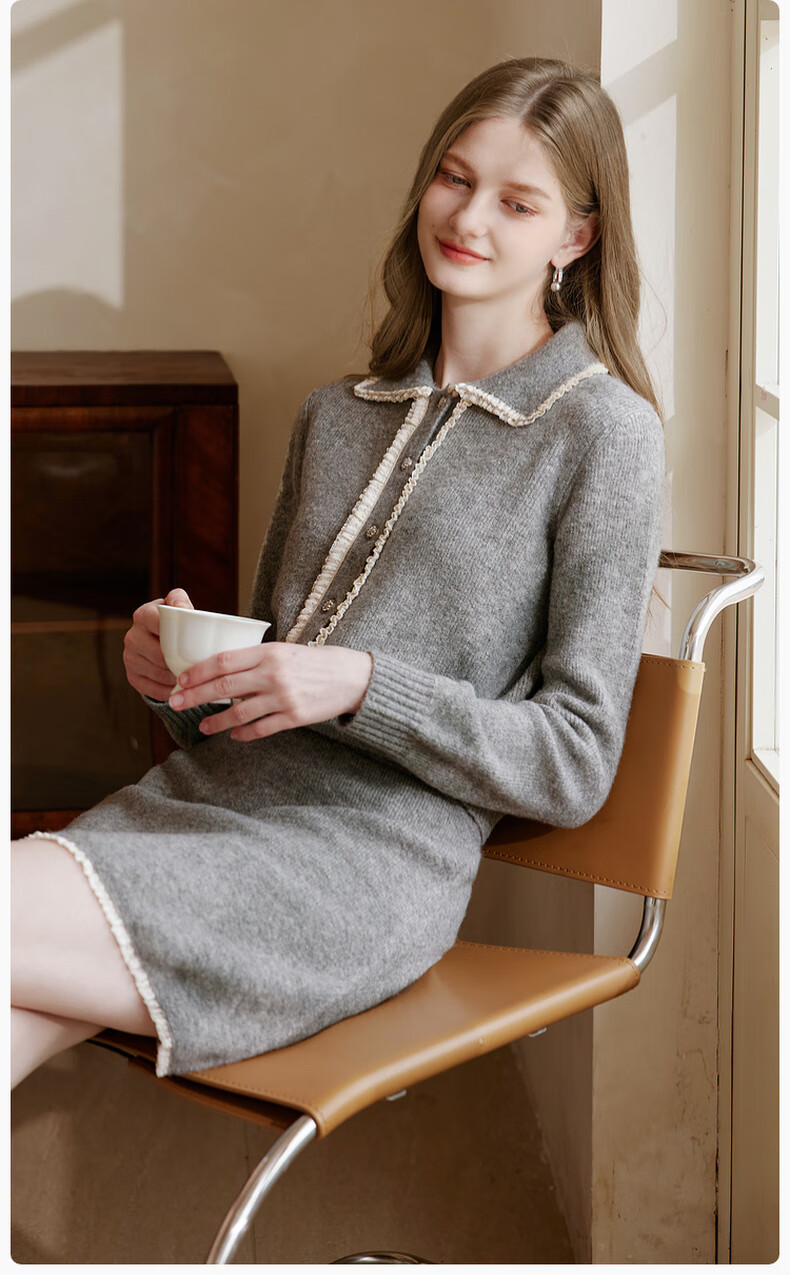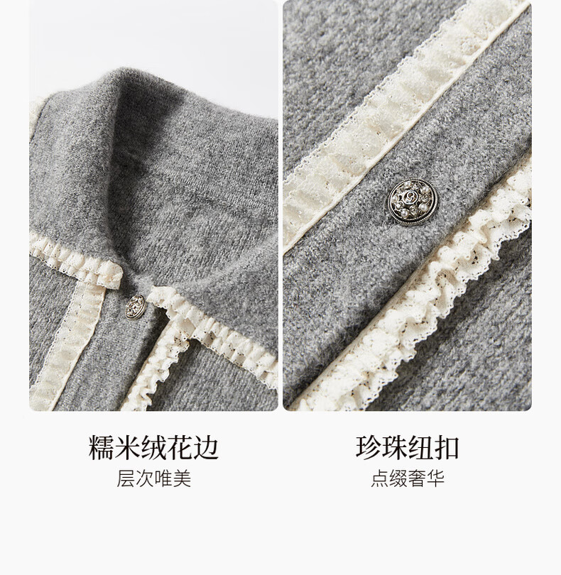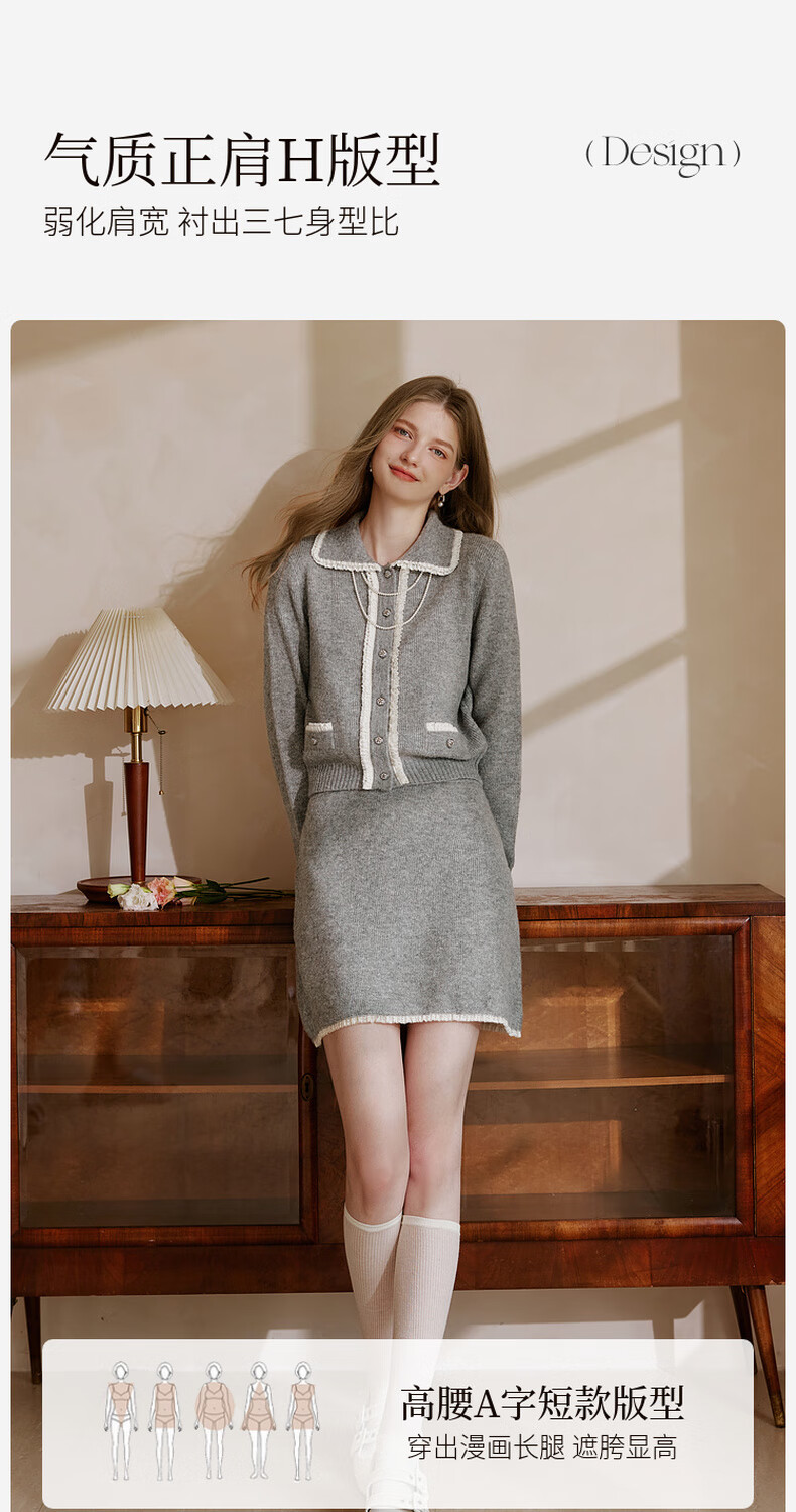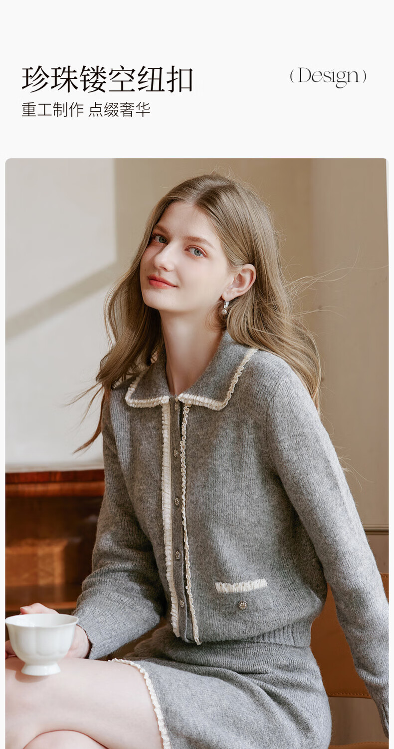 Xiangying Xiaoxiangfeng gray knitted suit skirt for women 2025 winter new style including wool cardigan miu series two-piece set light gray L