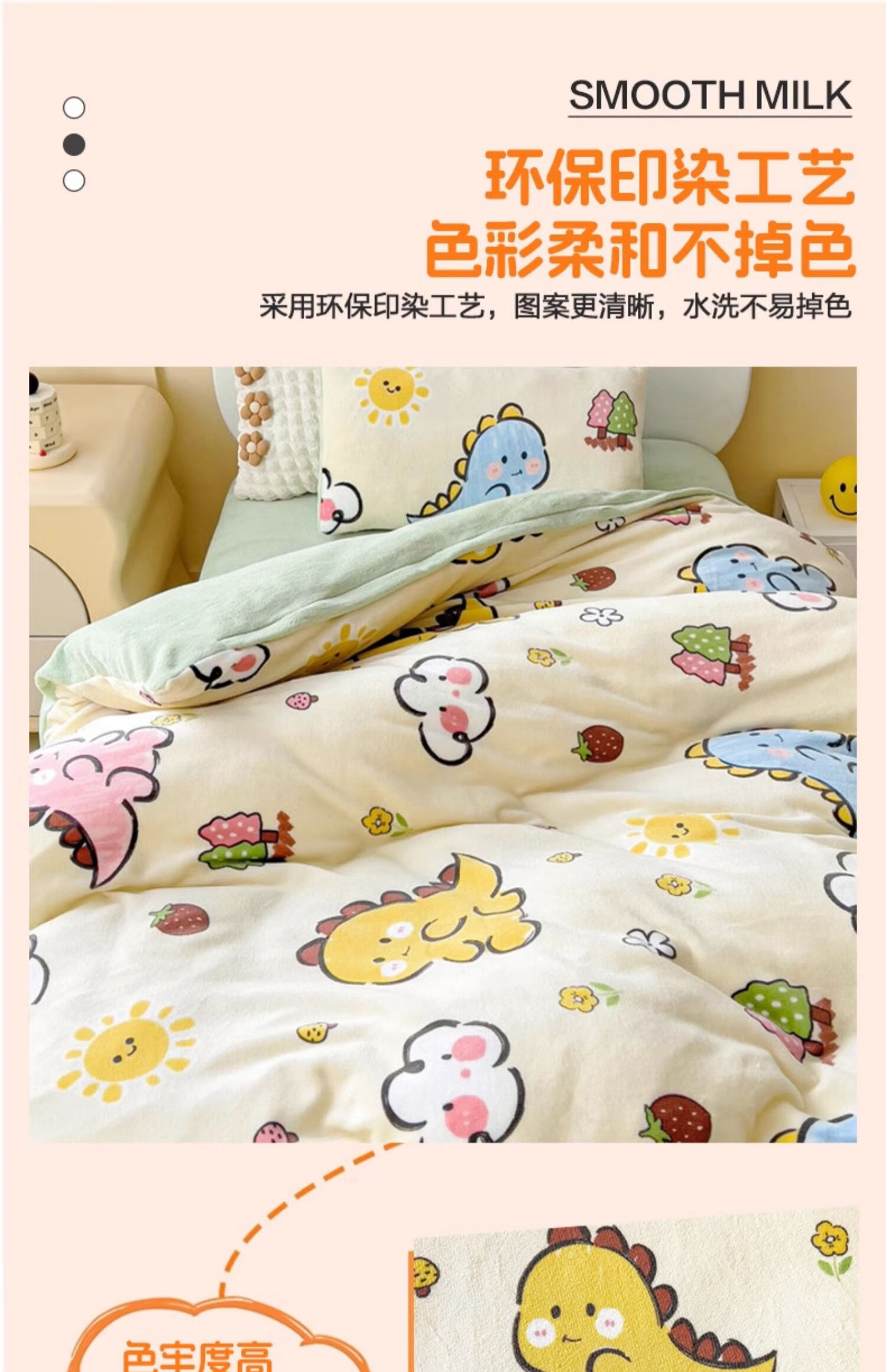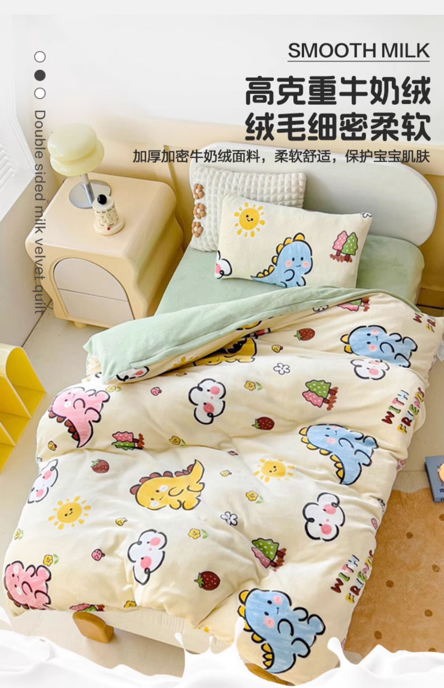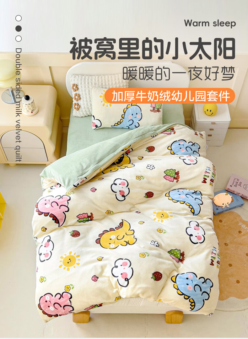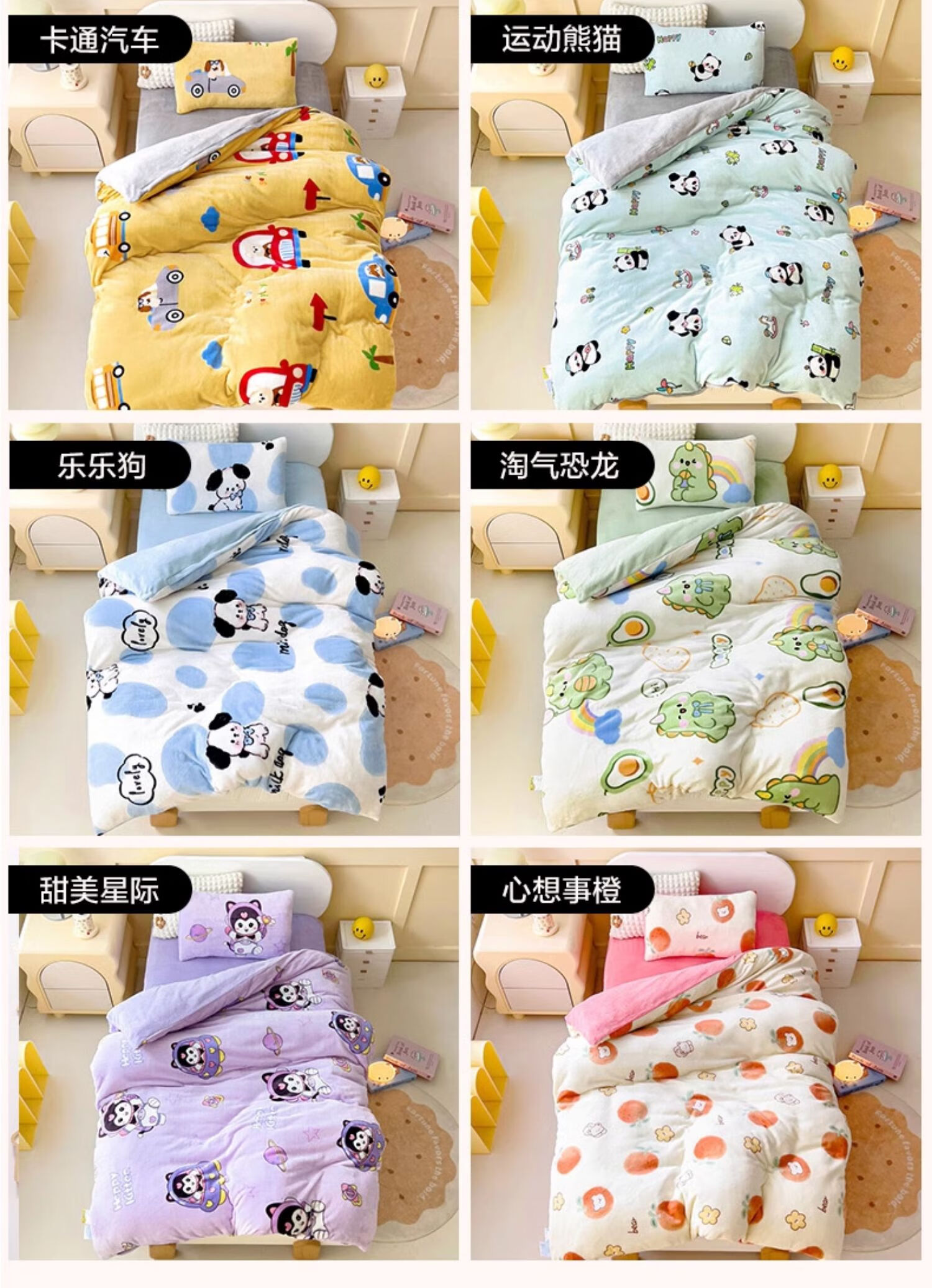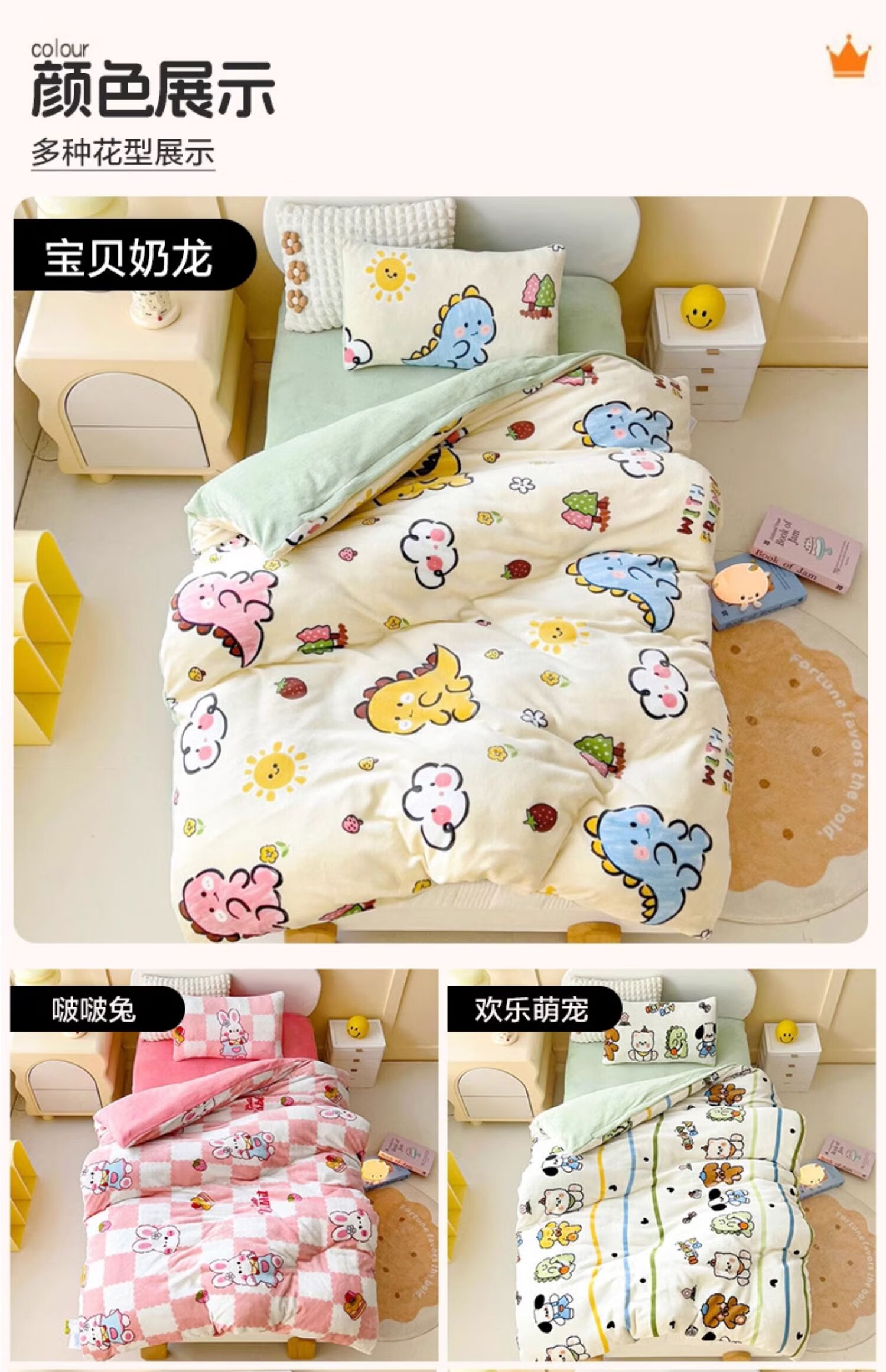 Hongdou Kindergarten Quilt Three-piece Set for Kindergarten Six-piece Set Thickened Milk Velvet Infant Quilt Cover Quilt Cover Sheet Double-sided Velvet Baby Milk Dragon (Type A Thickened Milk Velvet) Kindergarten Sheet Style Three-piece Set