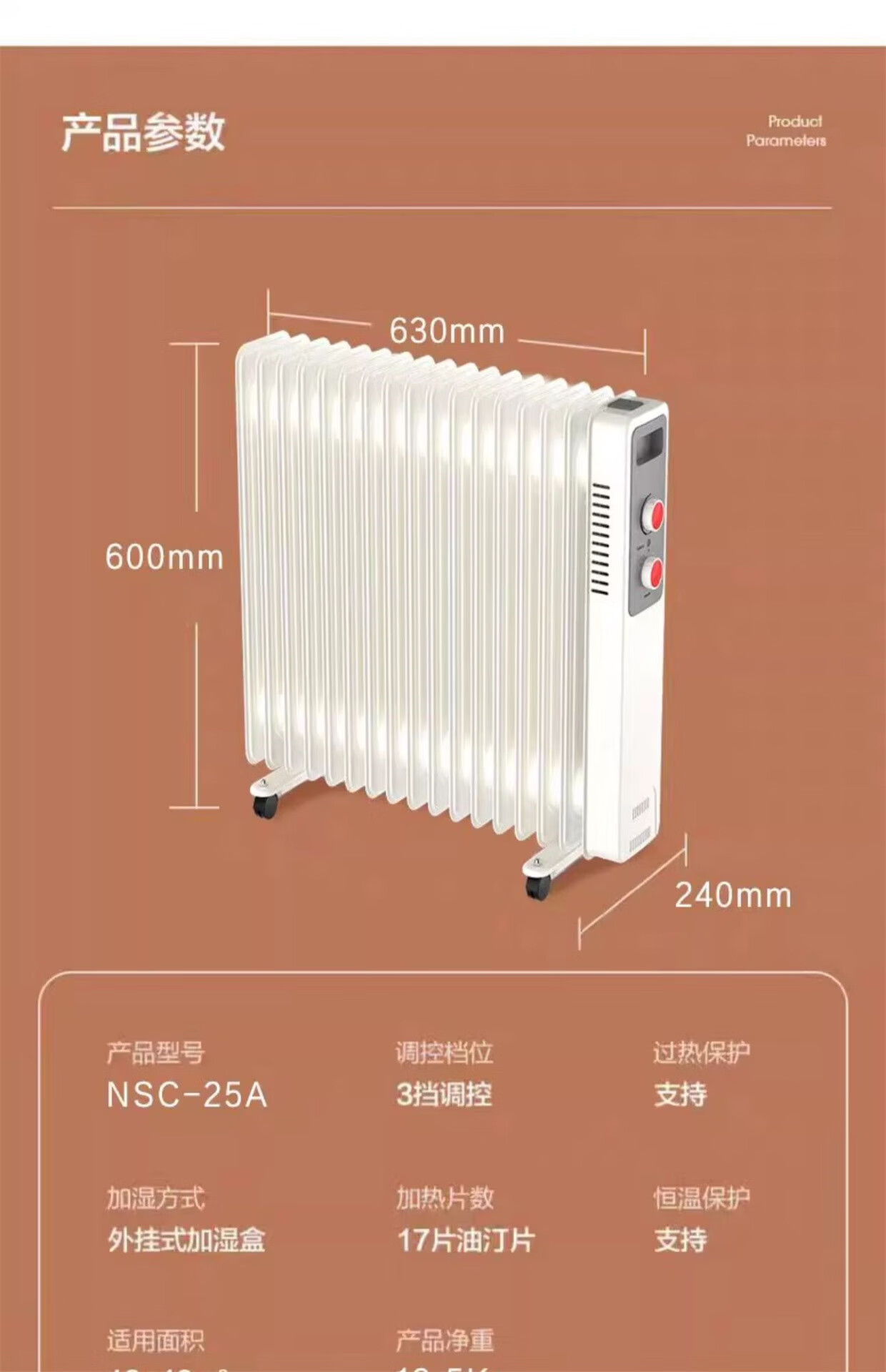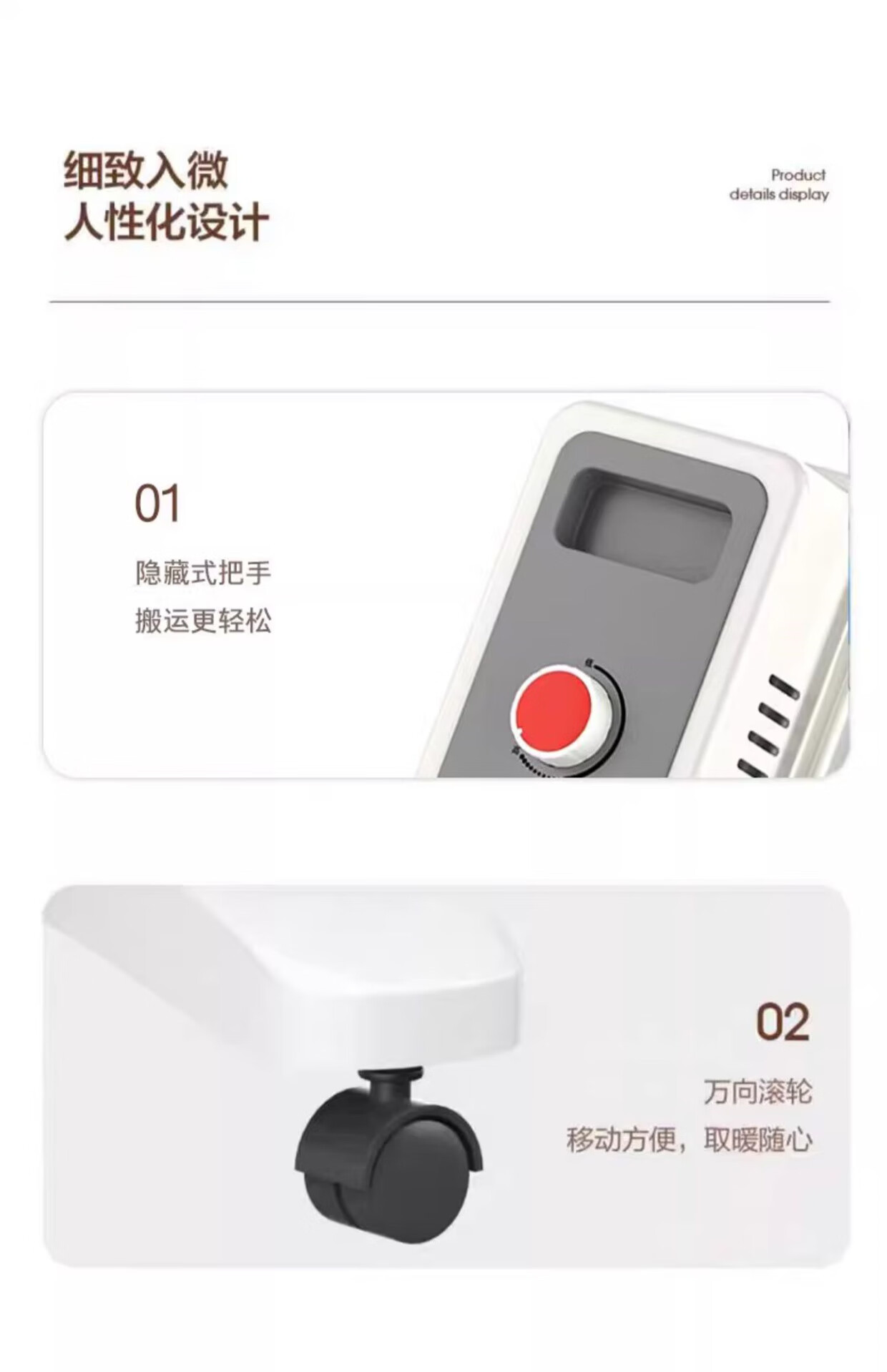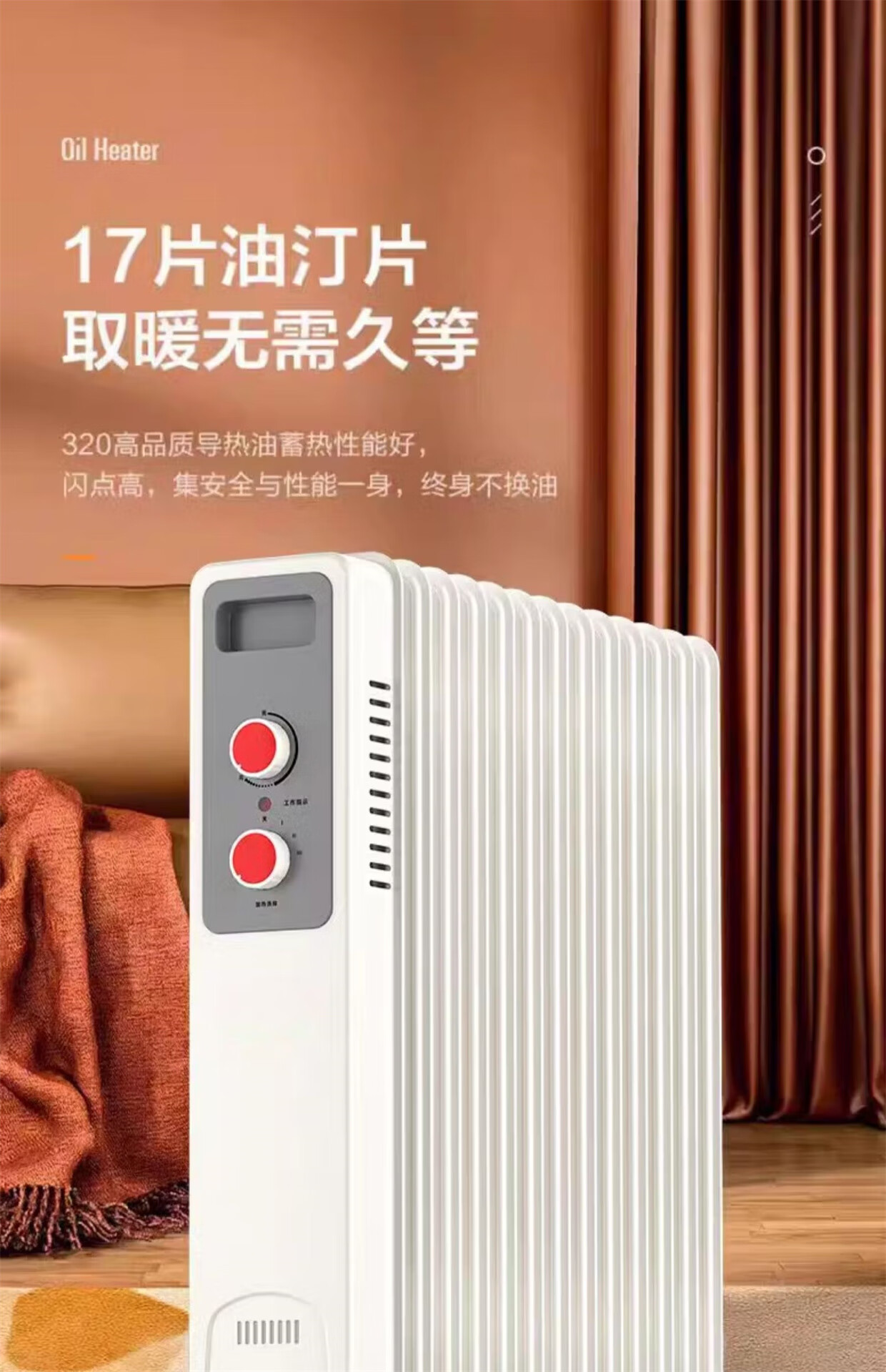 Household heater bedroom mother and baby electric heater silent energy-saving stove large area 17 pieces of oil tin white 9 pieces upgraded model widened and thickened