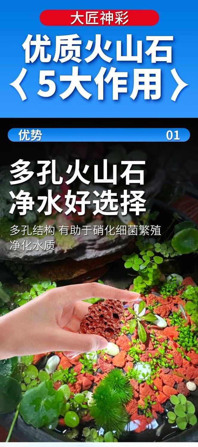 Volcanic stone fish tank special aquascape bottom sand ancient fish farming material large filter stone volcanic rock particles 6-9 mm medium particles porous structure + culture purified water 10Jin Jin equals 0.5kg + Dajiang Shencai brand + damage compensation