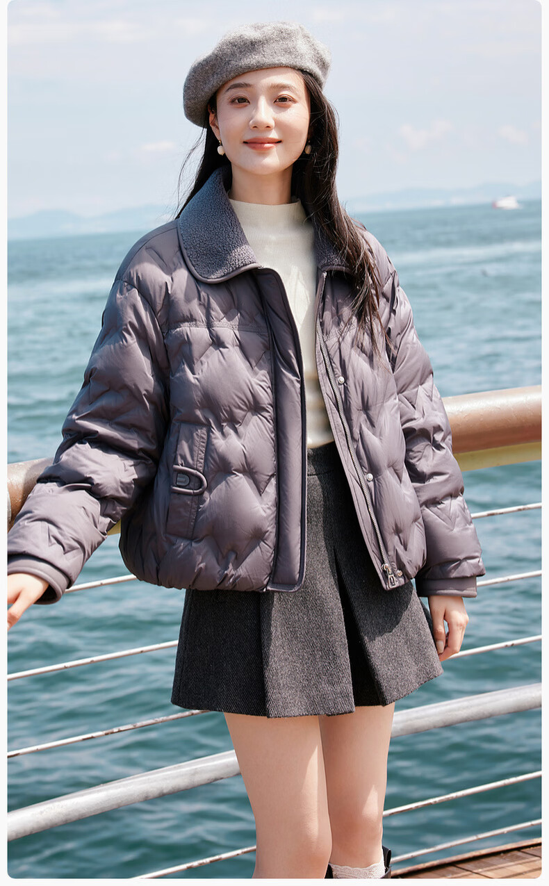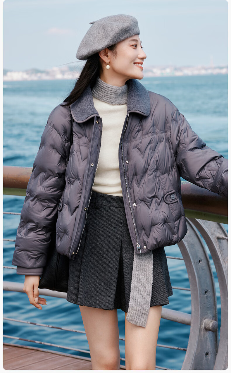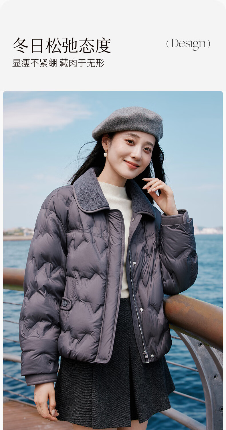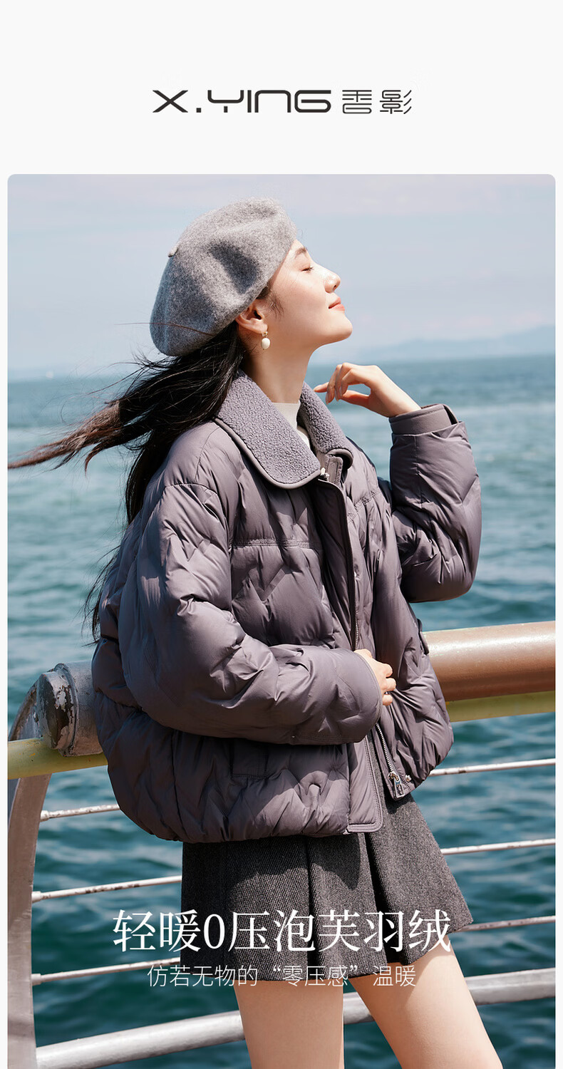 Xiangying Lightweight Down Jacket Women's Short 2025 Winter New Style Spliced Lapel 90 White Duck Down Dark Gray Jacket Dark Gray M 160/84A/95-110Jin Jin is equal to 0.5 kg