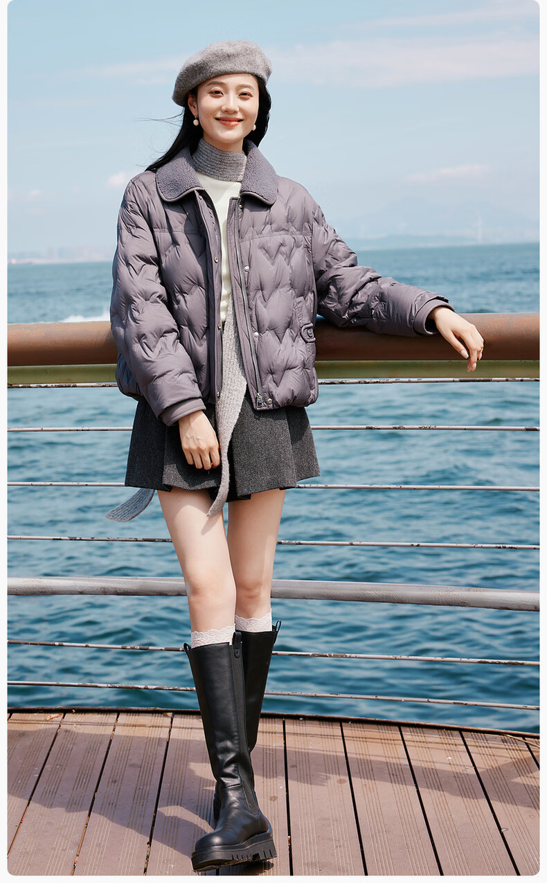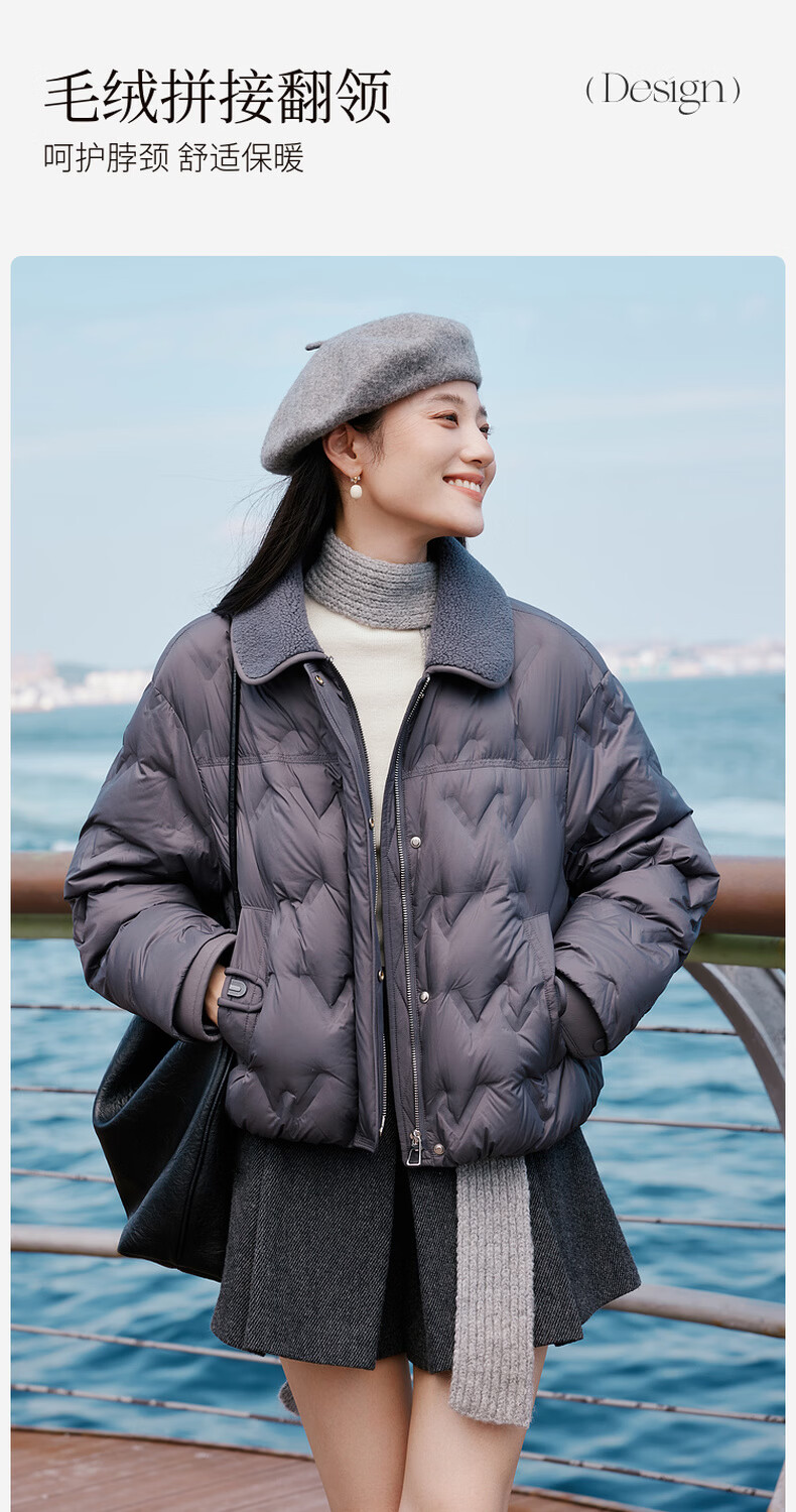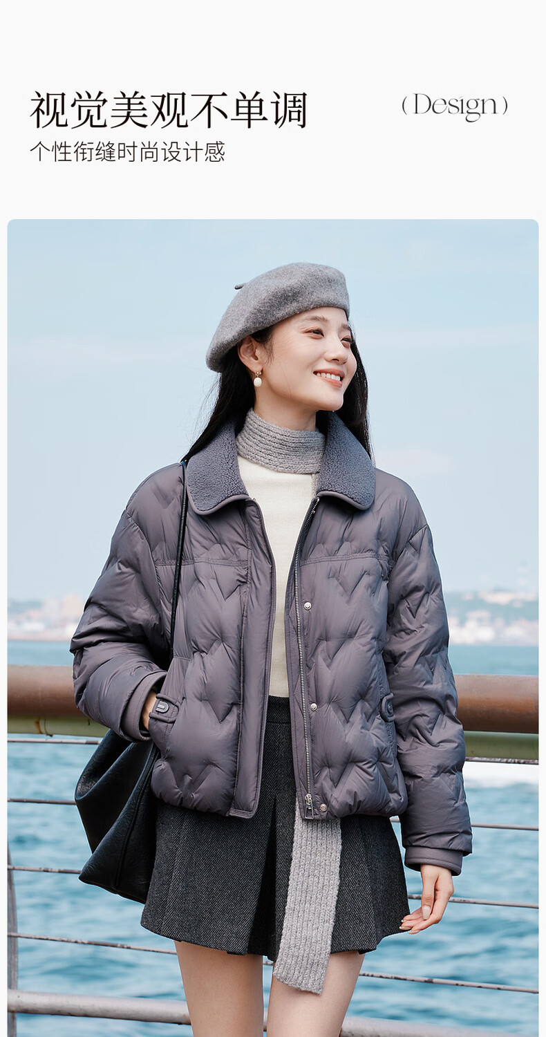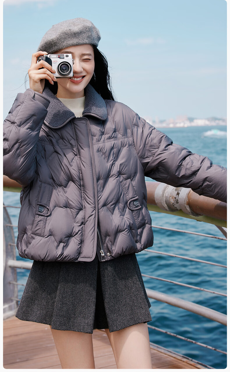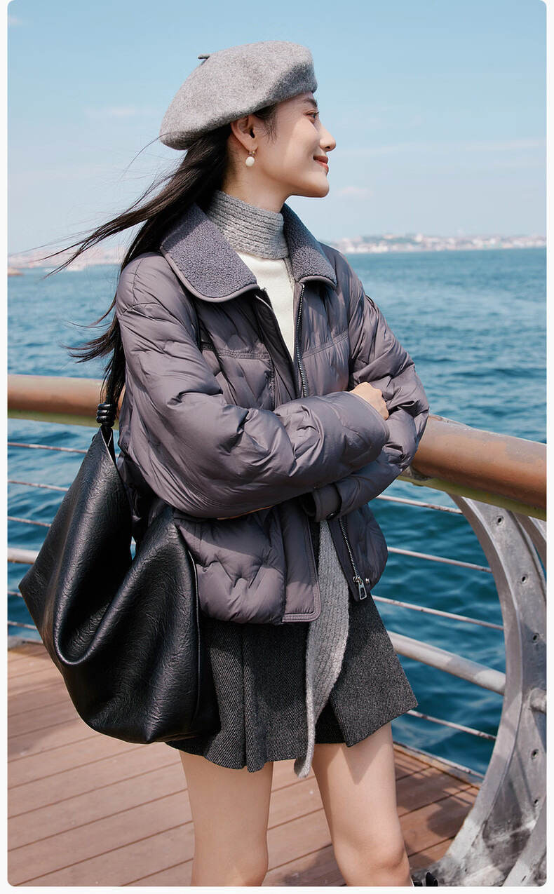 Xiangying Lightweight Down Jacket Women's Short 2025 Winter New Style Spliced Lapel 90 White Duck Down Dark Gray Jacket Dark Gray M 160/84A/95-110Jin Jin is equal to 0.5 kg