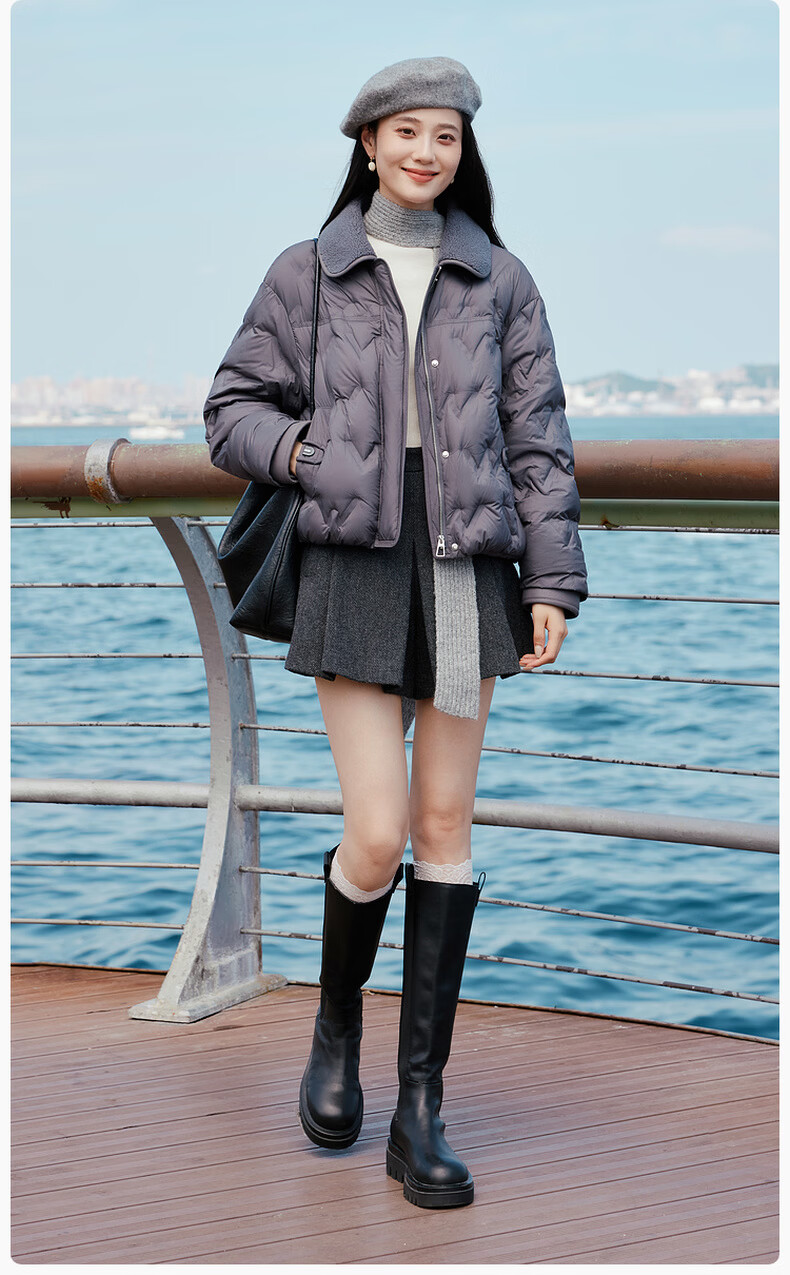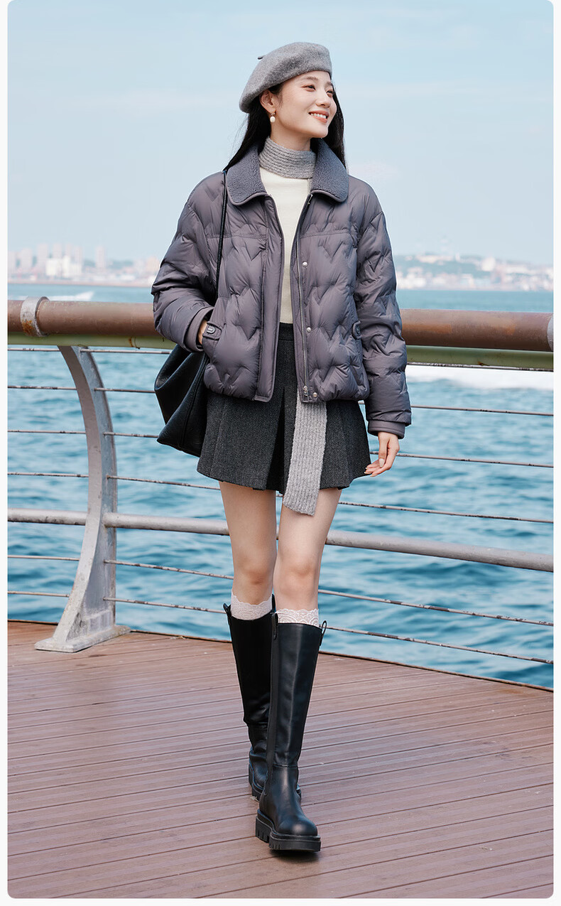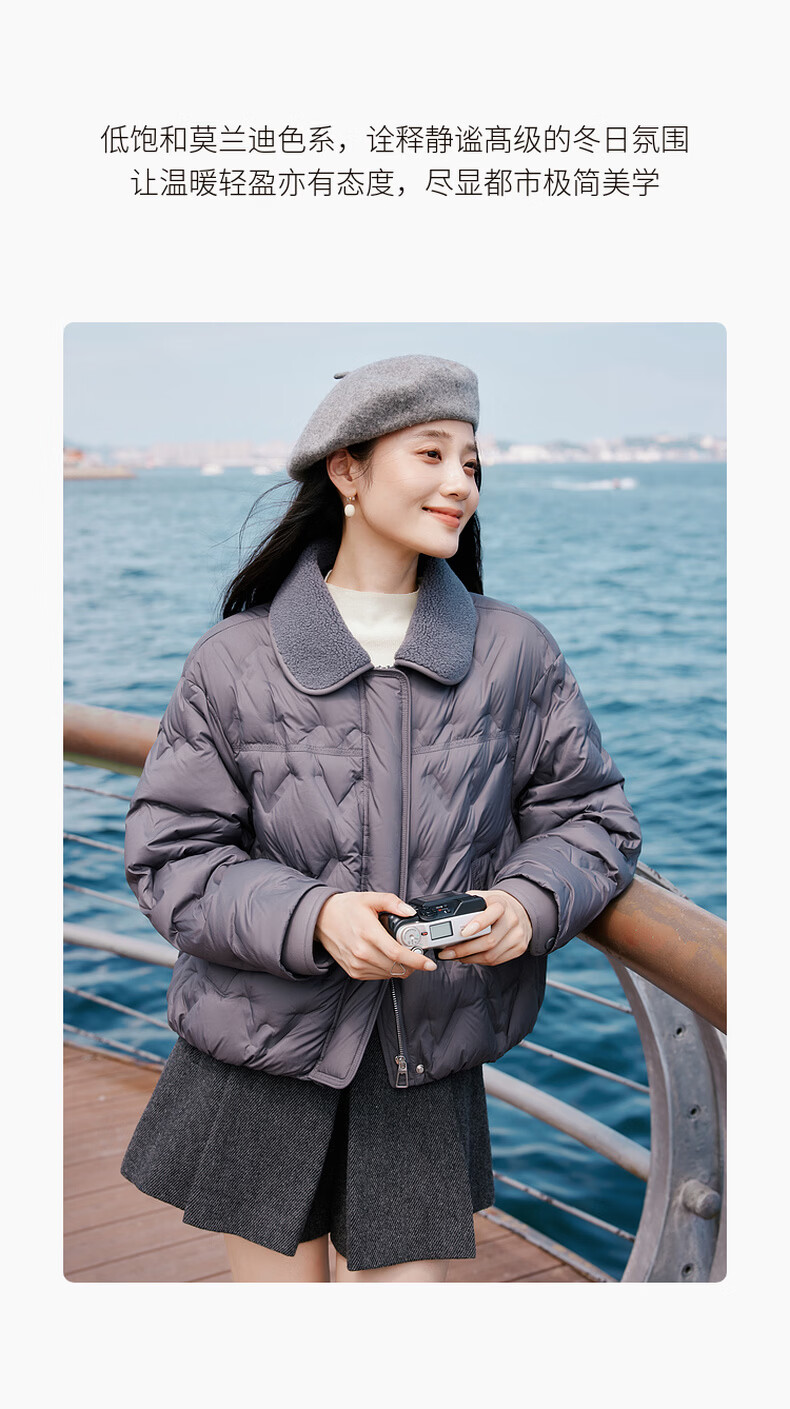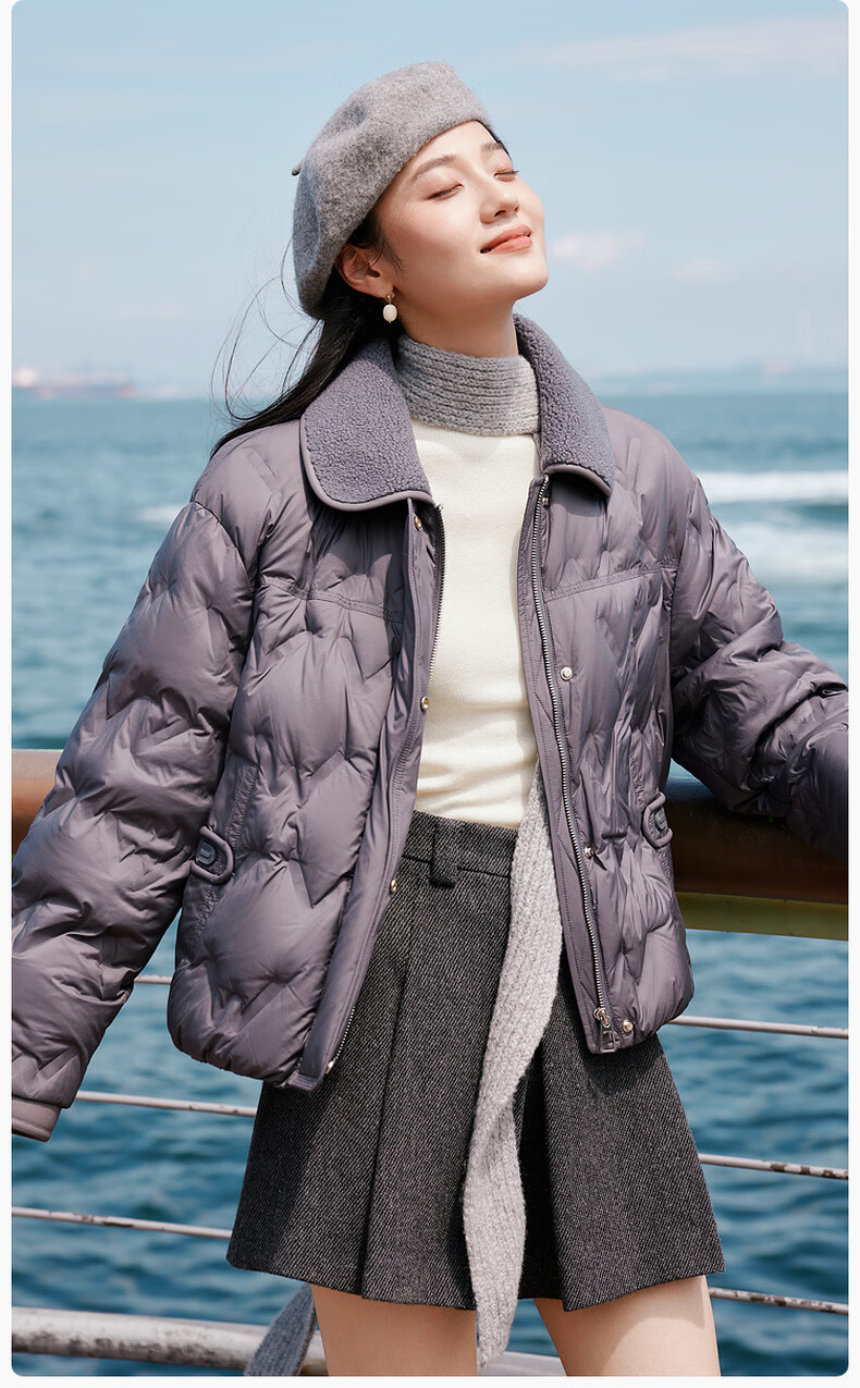 Xiangying Lightweight Down Jacket Women's Short 2025 Winter New Style Spliced Lapel 90 White Duck Down Dark Gray Jacket Dark Gray M 160/84A/95-110Jin Jin is equal to 0.5 kg