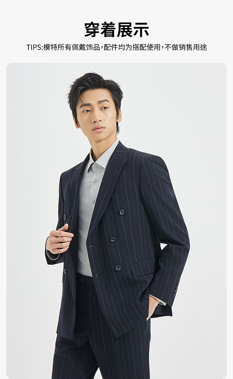 Lilang Shopping Mall Same Style Wool Suit Suit Men's Double-breasted Suit Wedding Dress Nine-Point Pants Autumn 2025 New Navy (25QXF151SA) 170A
