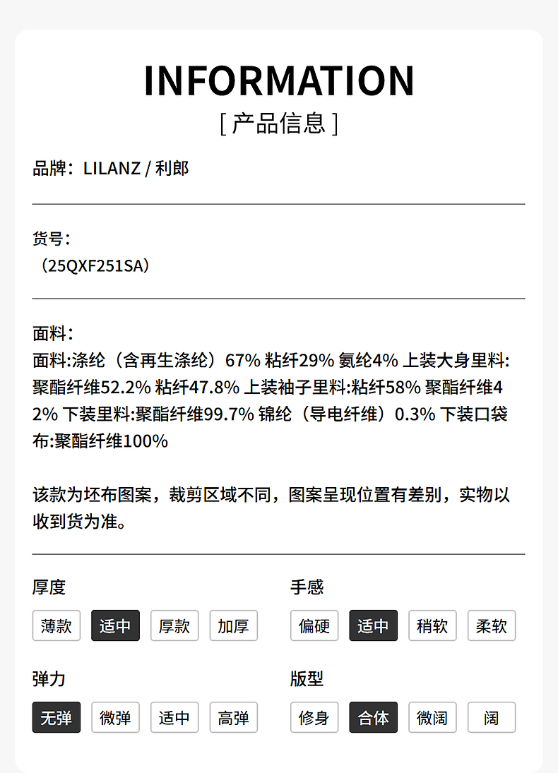 China (cm) 160-165/84-86 165-170 / 88-90 167-172 / 92-96 168-173 / 98-102 170-176 / 106-110