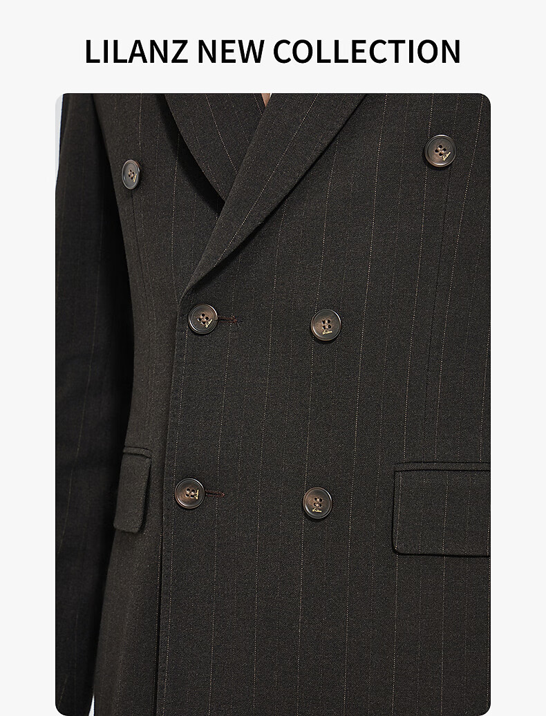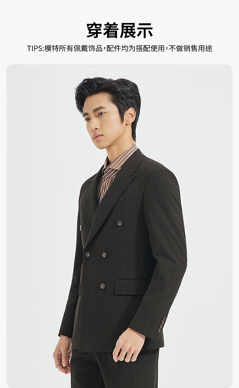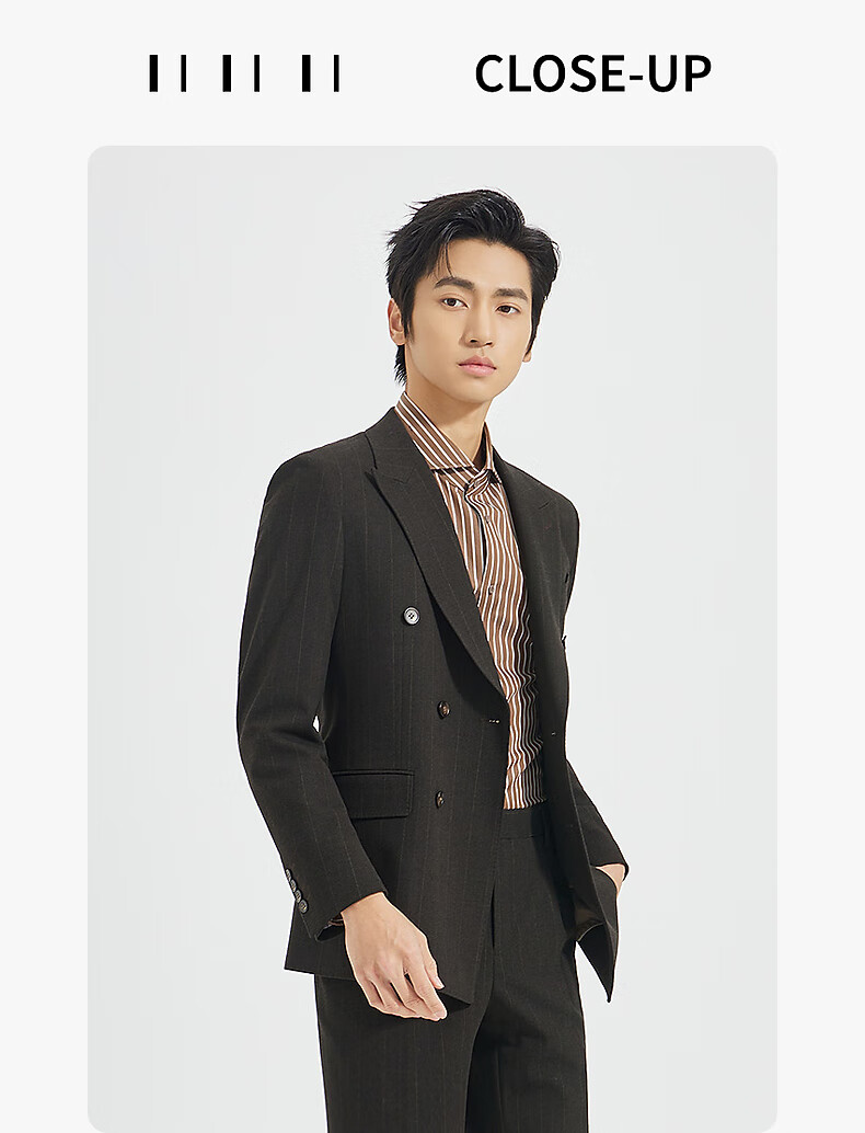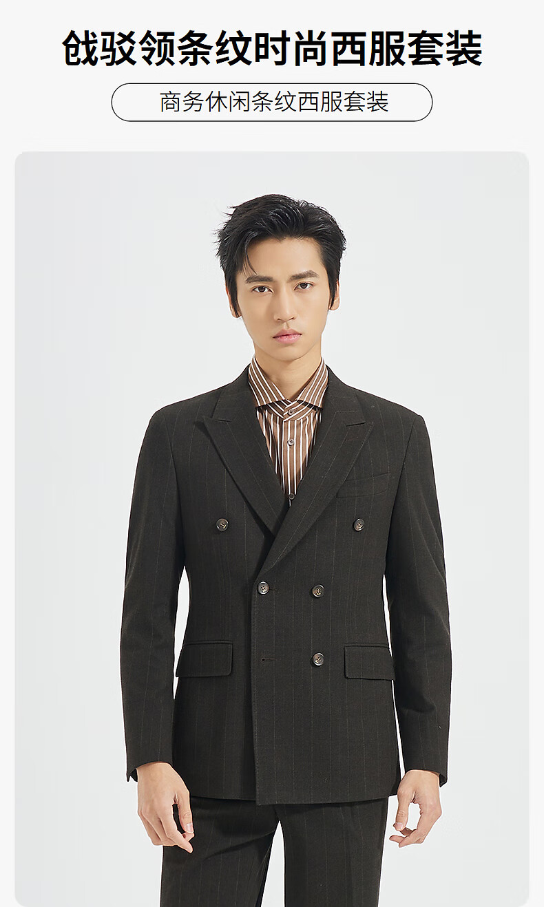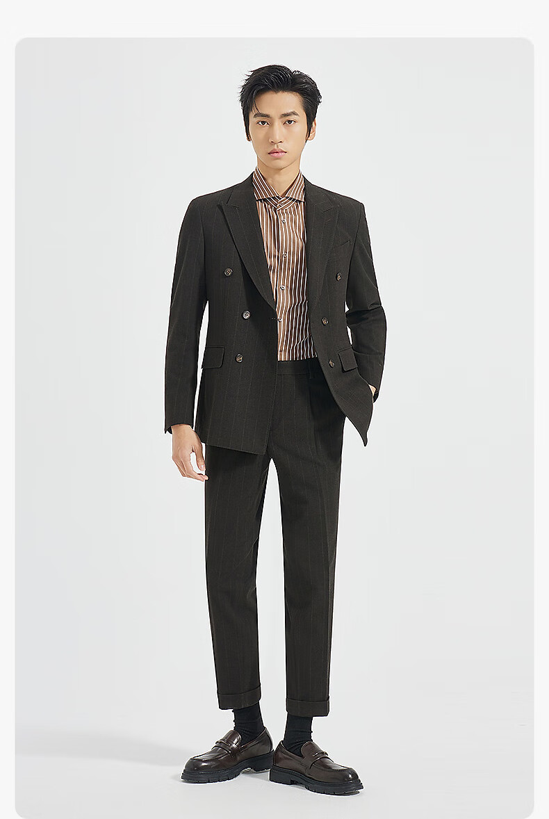 Lilang Shopping Mall Same Style SMART Suit Men's Double-Breasted Suit Nine-Point Pants Suit Striped 2025 Autumn Dark Brown Gray (25QXF251SA) 175A
