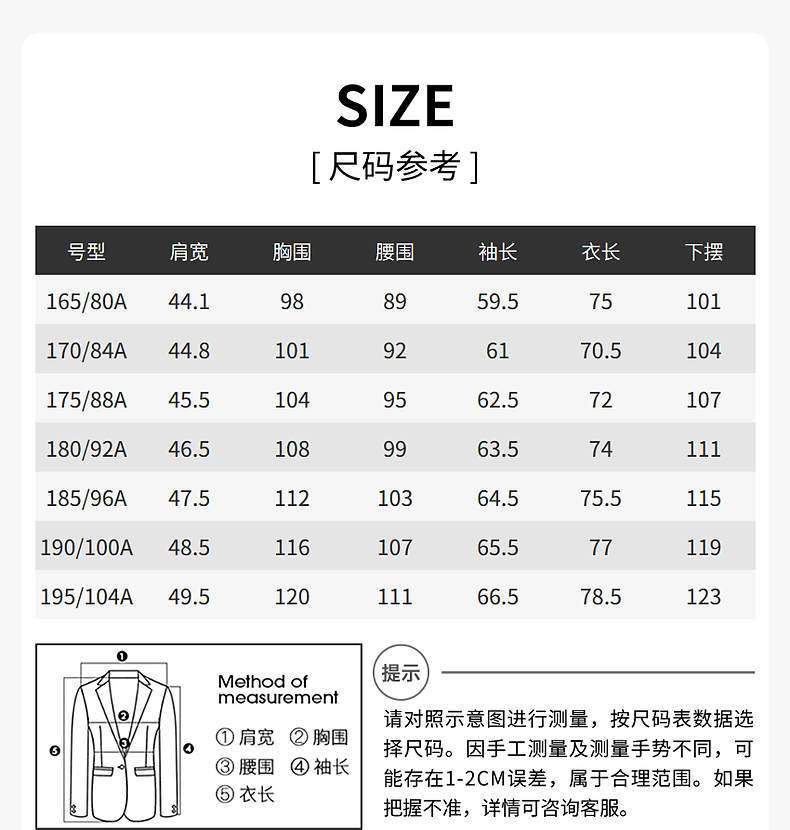 China (cm) 160-165/84-86 165-170 / 88-90 167-172 / 92-96 168-173 / 98-102 170-176 / 106-110