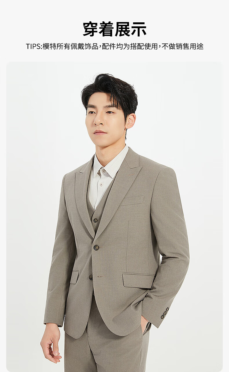 Lilang Shopping Mall Same Style Suit Suit Men's Three-piece Suit Business Formal Autumn 2025 New Wedding Suit Gray Khaki (25QXF171SA) 170A