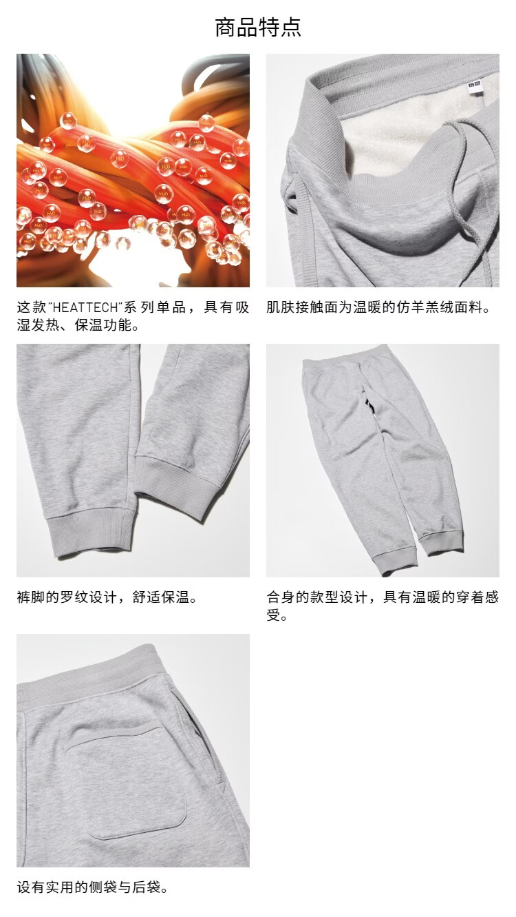 Uniqlo men's HEATTECH imitation sherpa sports trousers casual regular style 25 autumn and winter new style 479789 04 smoke gray L