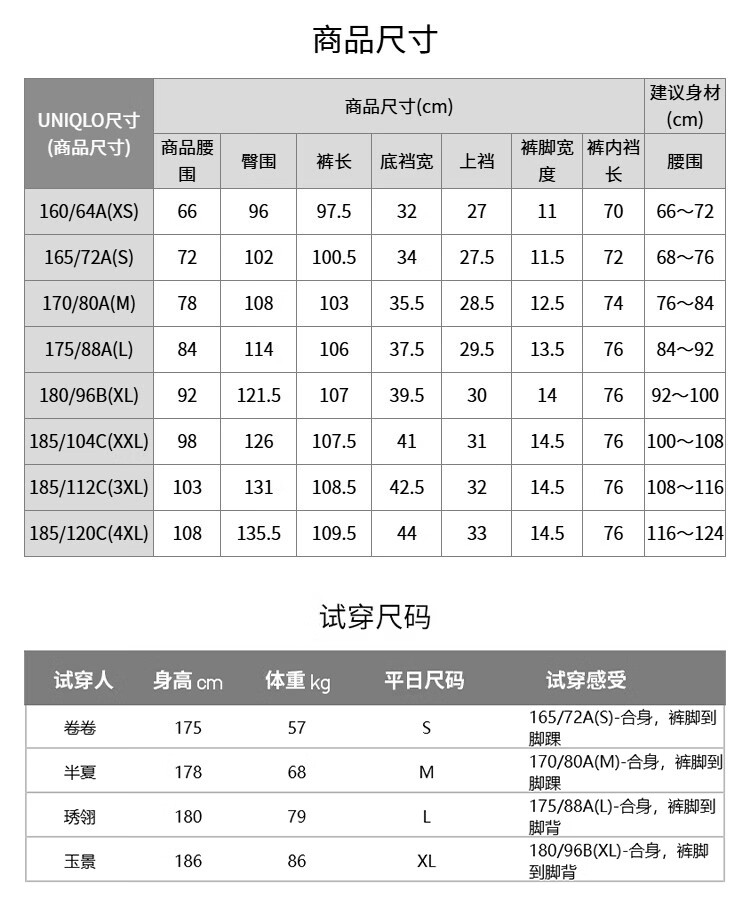 Outseam (cm) 99 cm 101.5 cm 104 cm 106.5 cm 109 cm