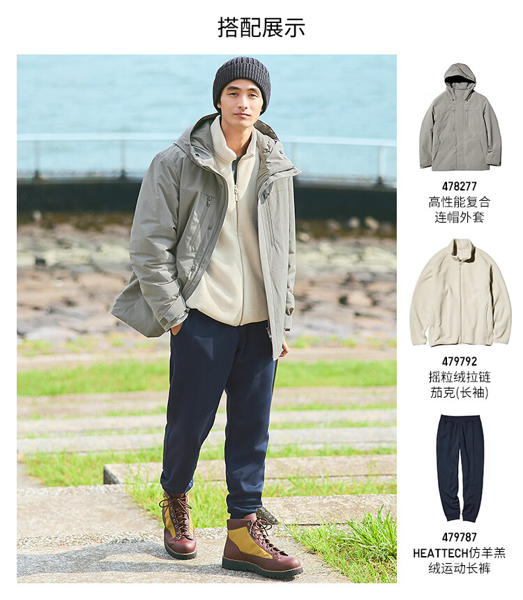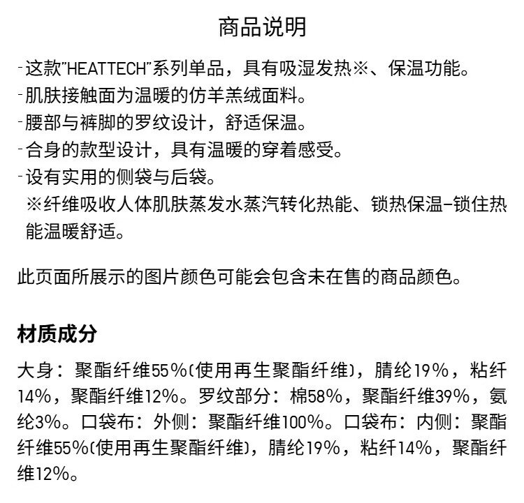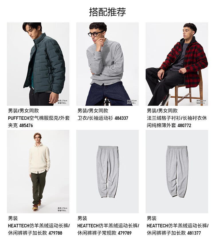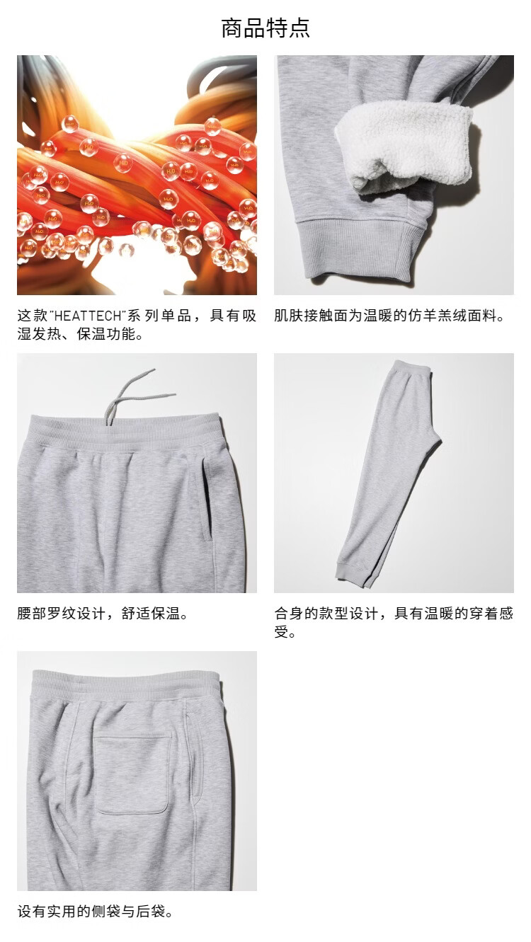 Uniqlo men's HEATTECH imitation sherpa sports trousers casual regular style 25 autumn and winter new style 479787 09 Black L