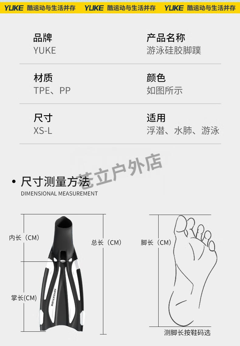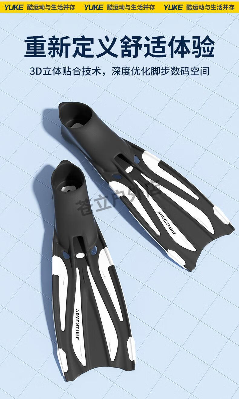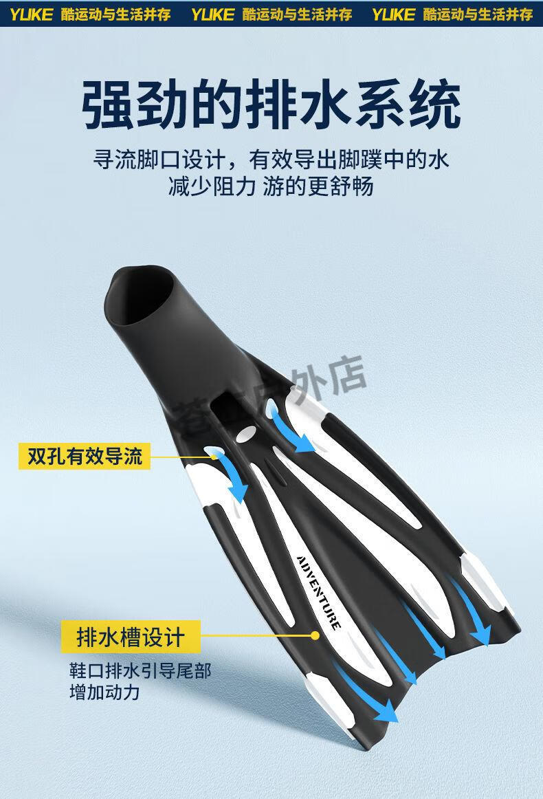Yuke diving fins free diving long fins fins snorkeling Sambo adult swimming training mask mirror set equipment black and white fins + earplugs and nose clips one size fits all 36-37