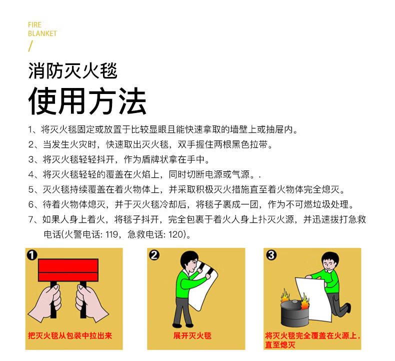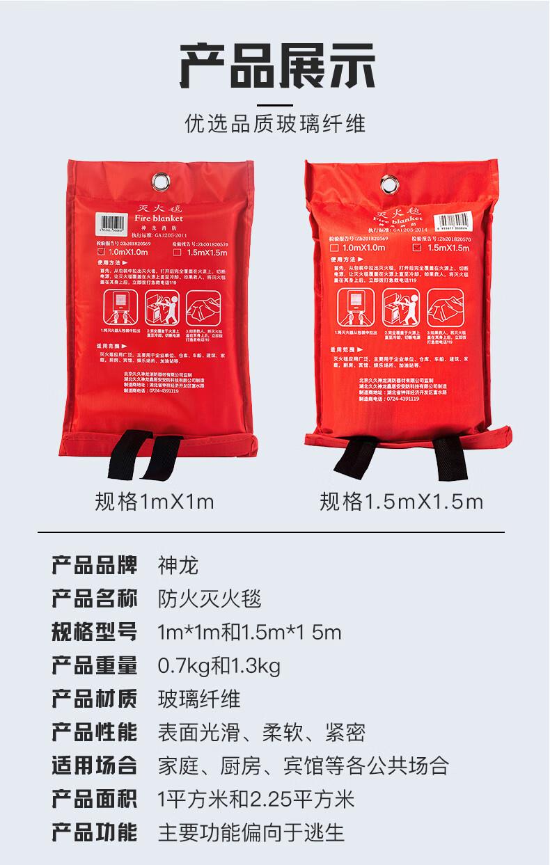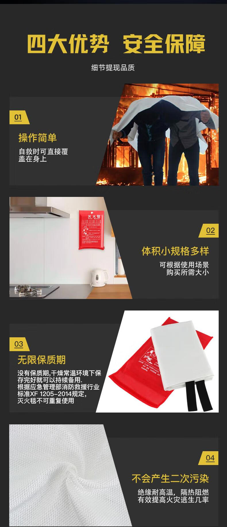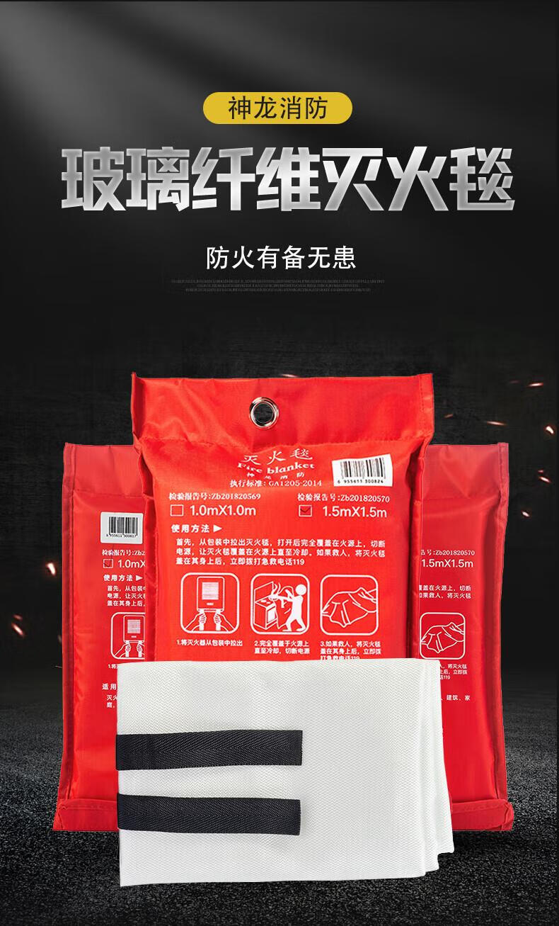 Fiberglass fire extinguishing blanket vehicle home hotel fire safety emergency blanket 1.5 meters 1.5 meters fire-fighting stainless steel four-fold stretcher with bag