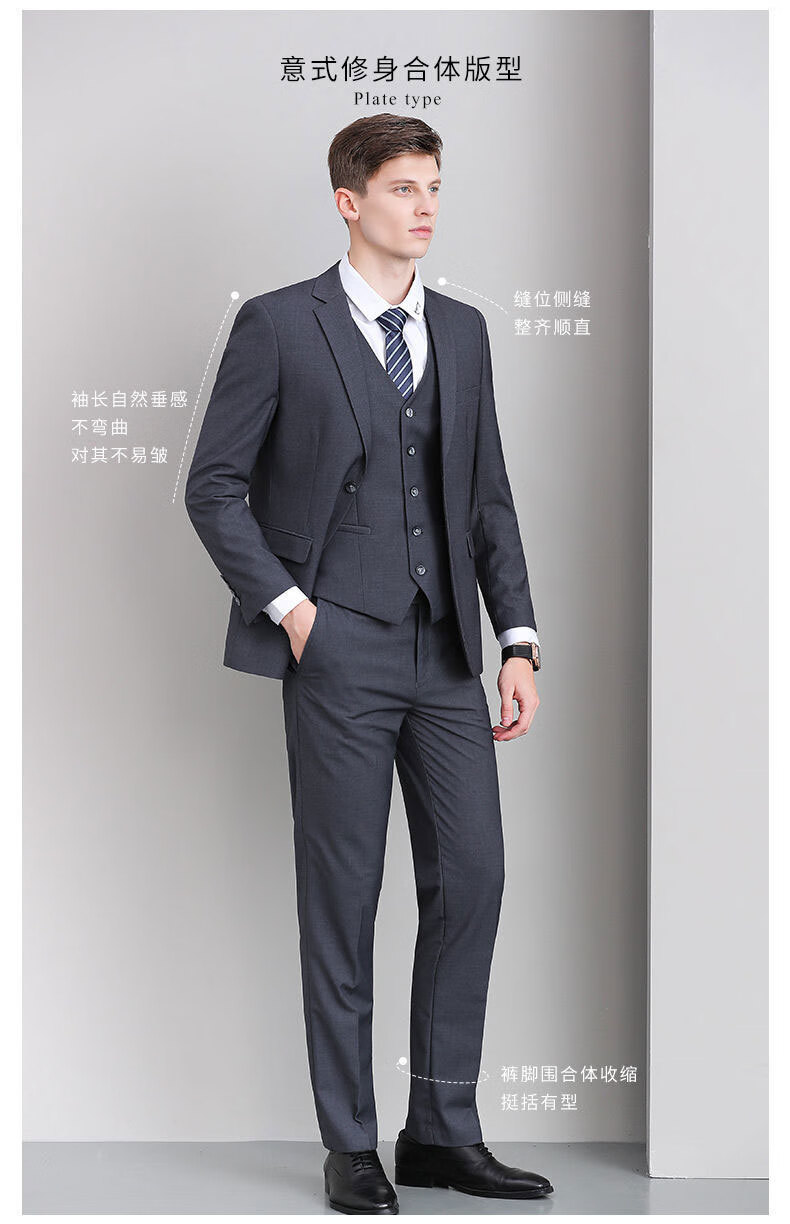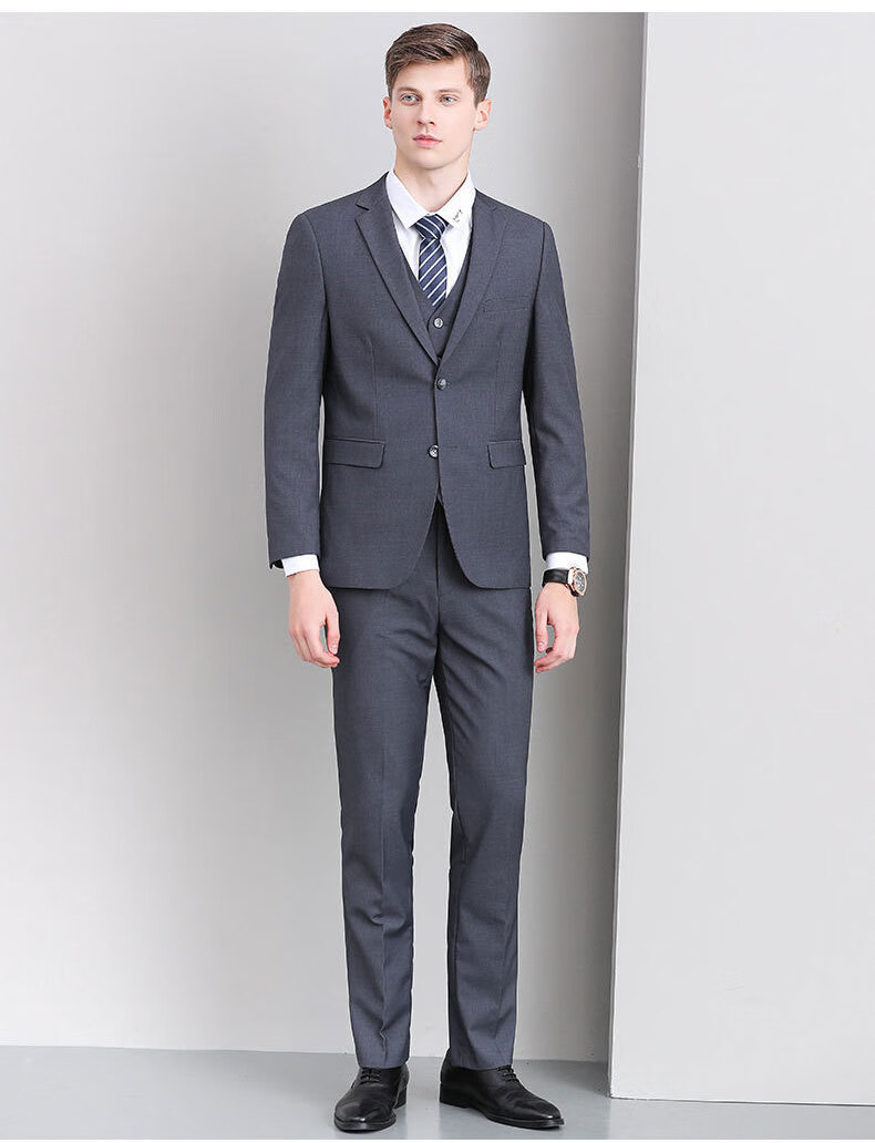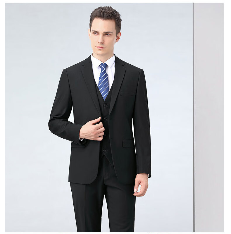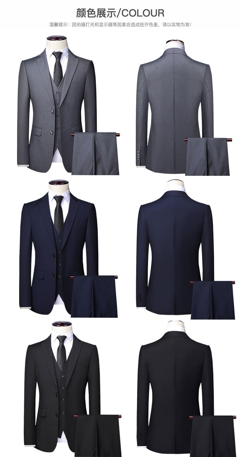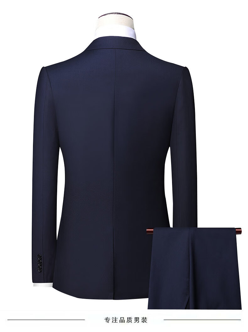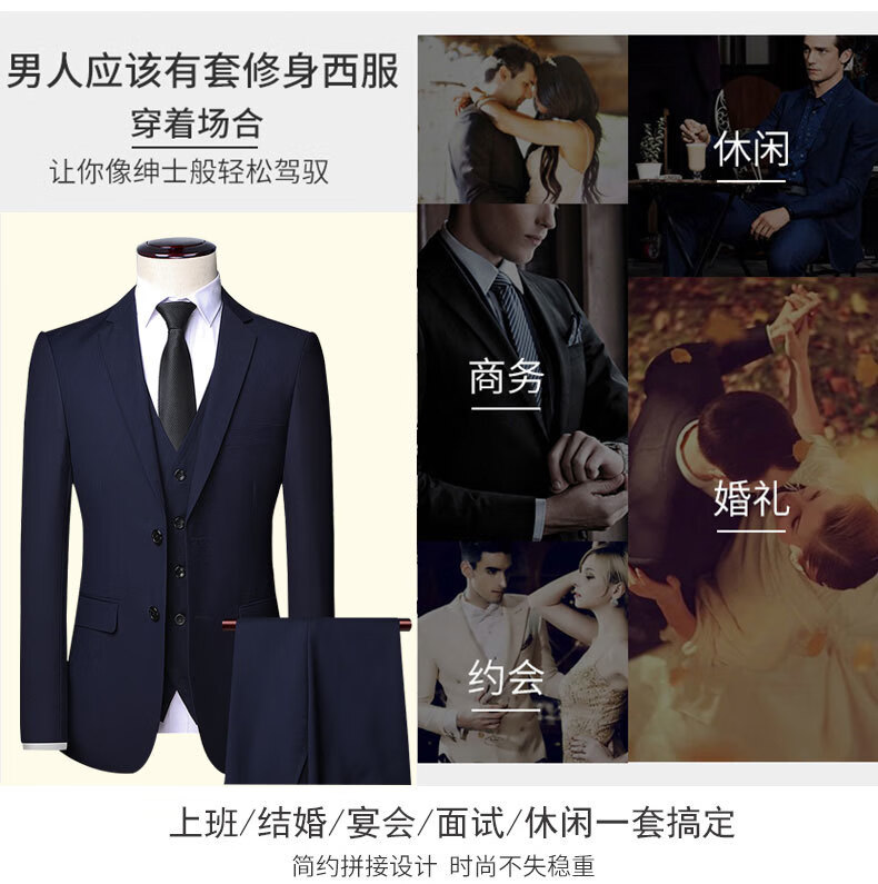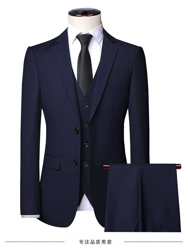 Pierre Cardin high-end no-iron men's wool suit three-piece business casual professional solid color formal fitted suit for men, navy blue clothes + pants XL 180 size/52 official authentic