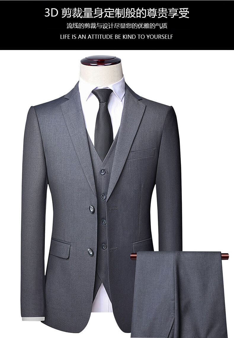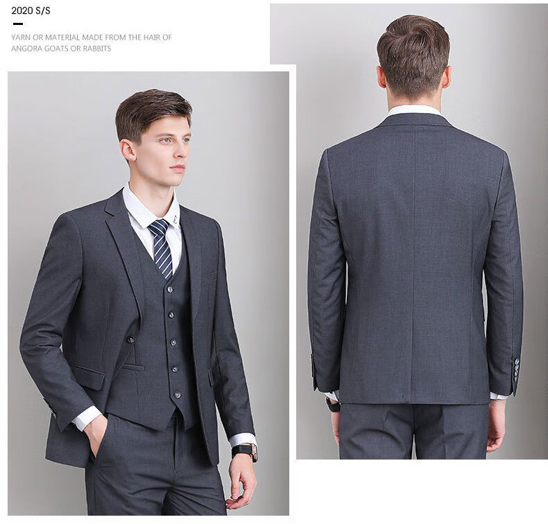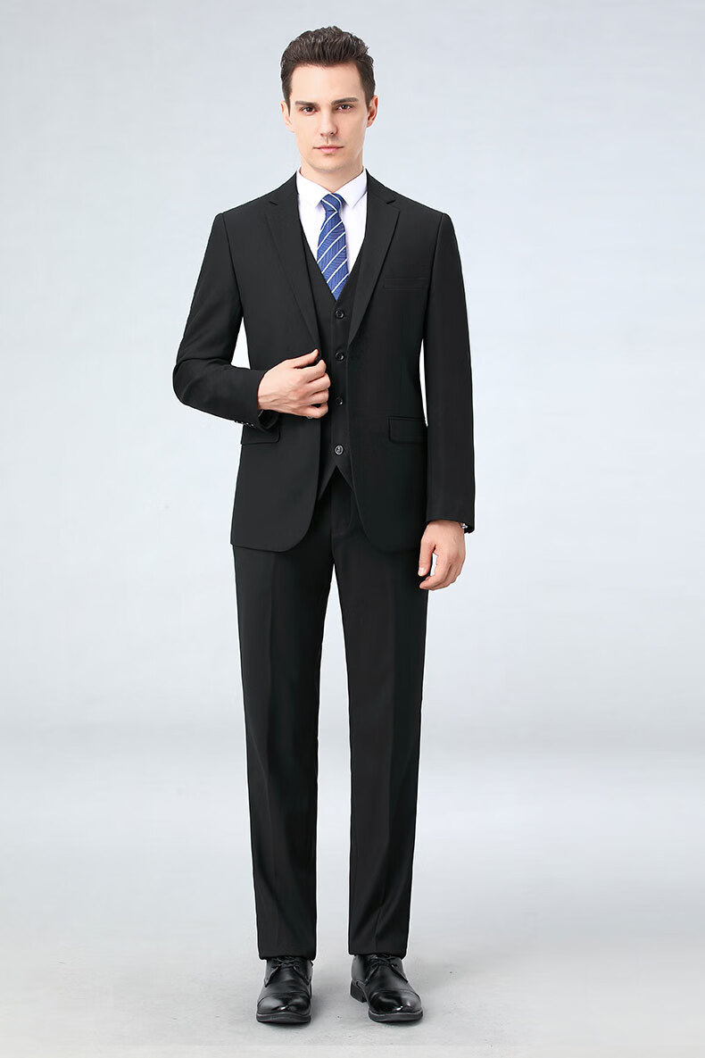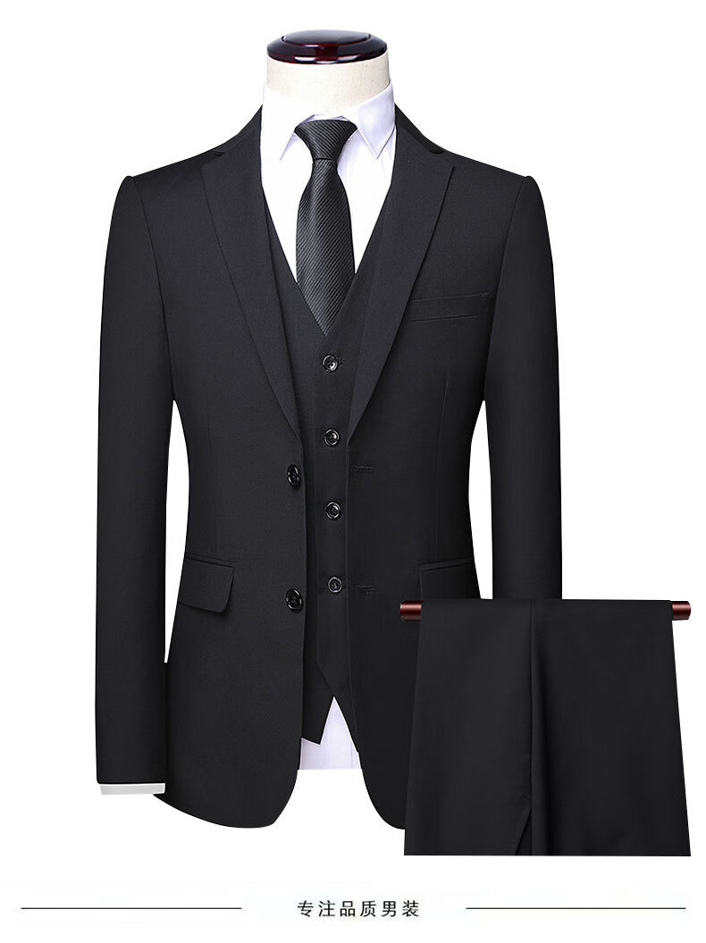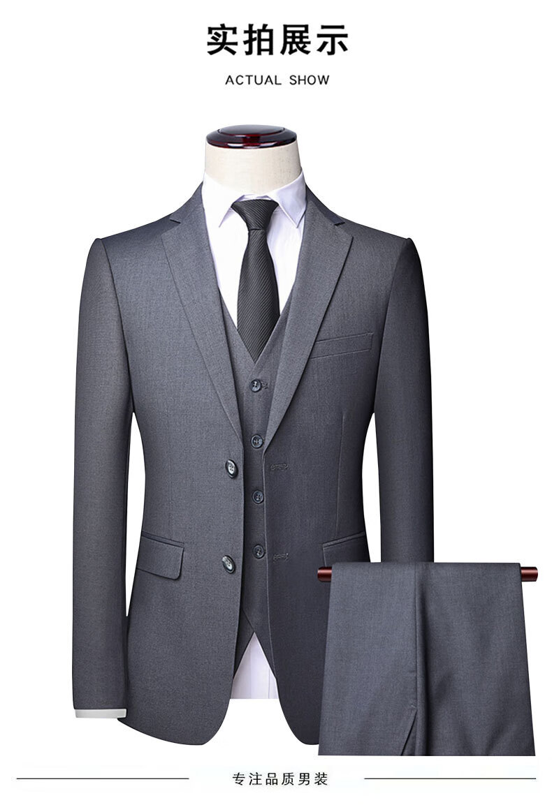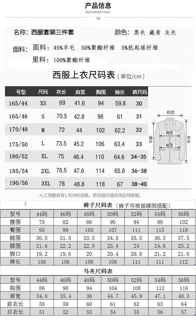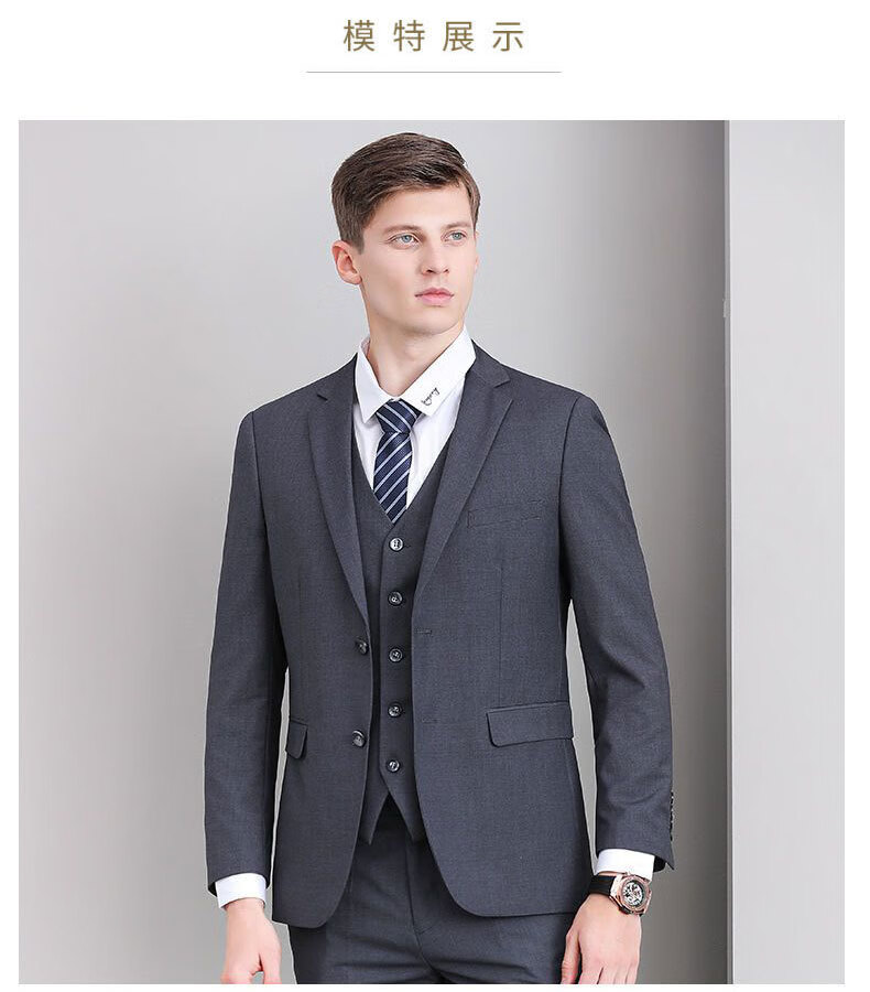 Pierre Cardin high-end no-iron men's wool suit three-piece business casual professional solid color formal fitted suit for men, navy blue clothes + pants XL 180 size/52 official authentic
