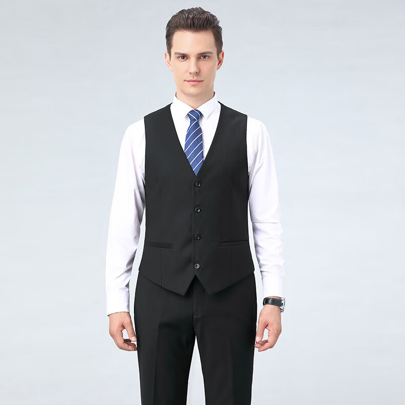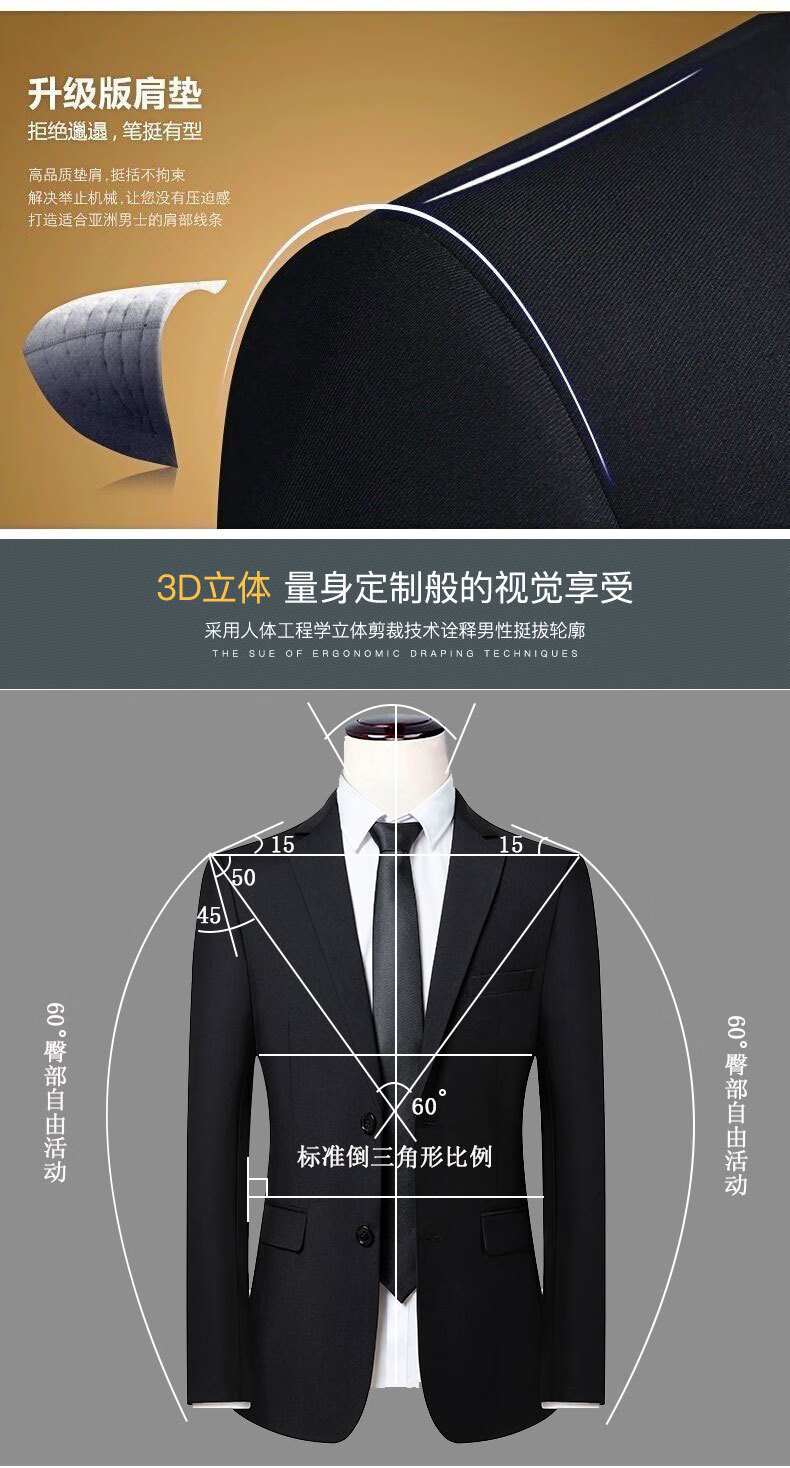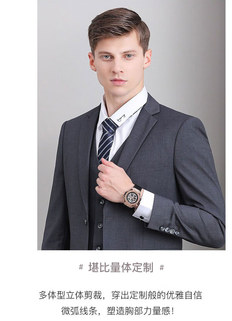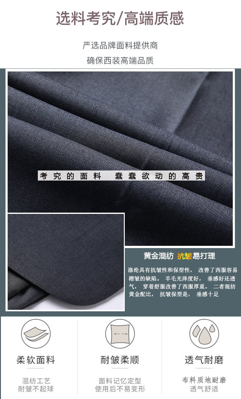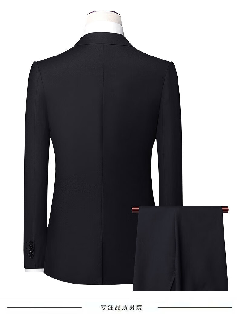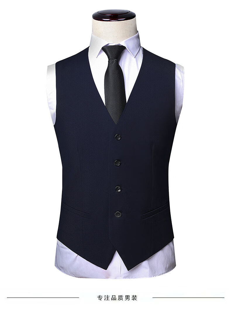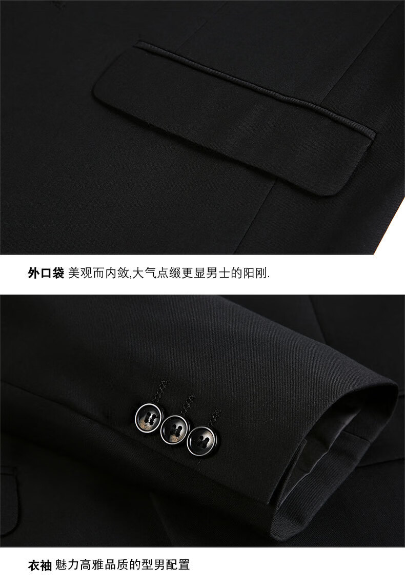 Pierre Cardin high-end no-iron men's wool suit three-piece business casual professional solid color formal fitted suit for men, navy blue clothes + pants XL 180 size/52 official authentic