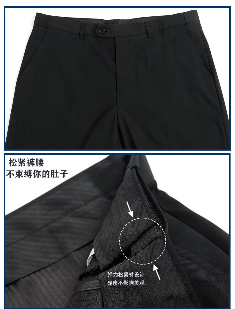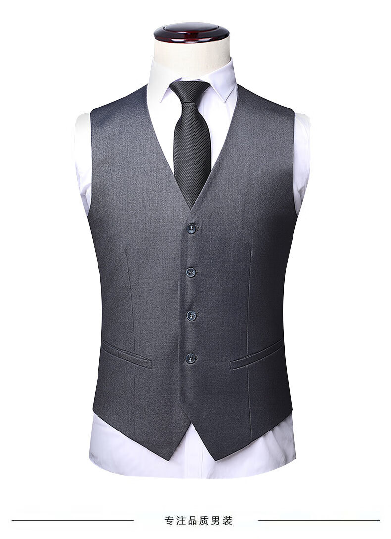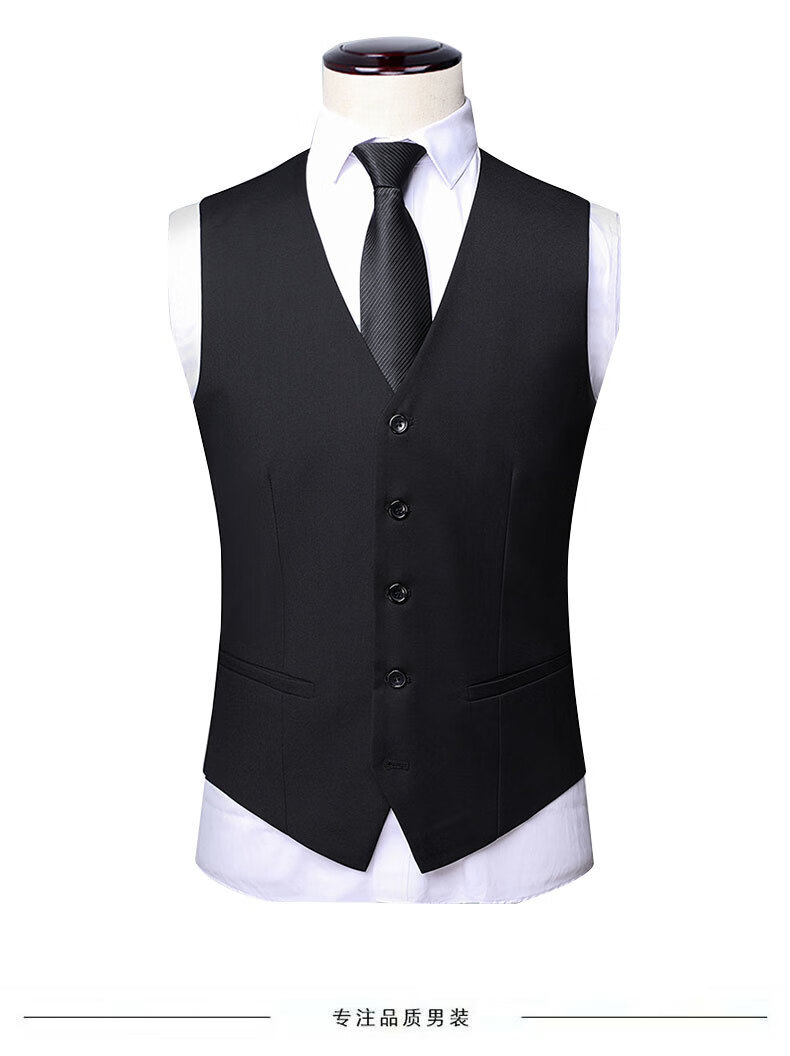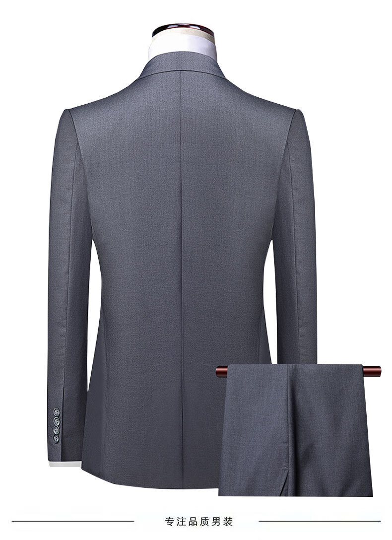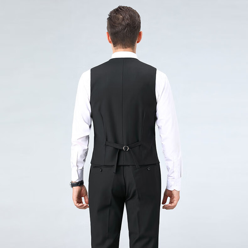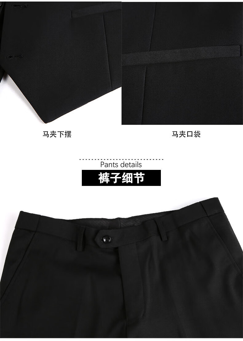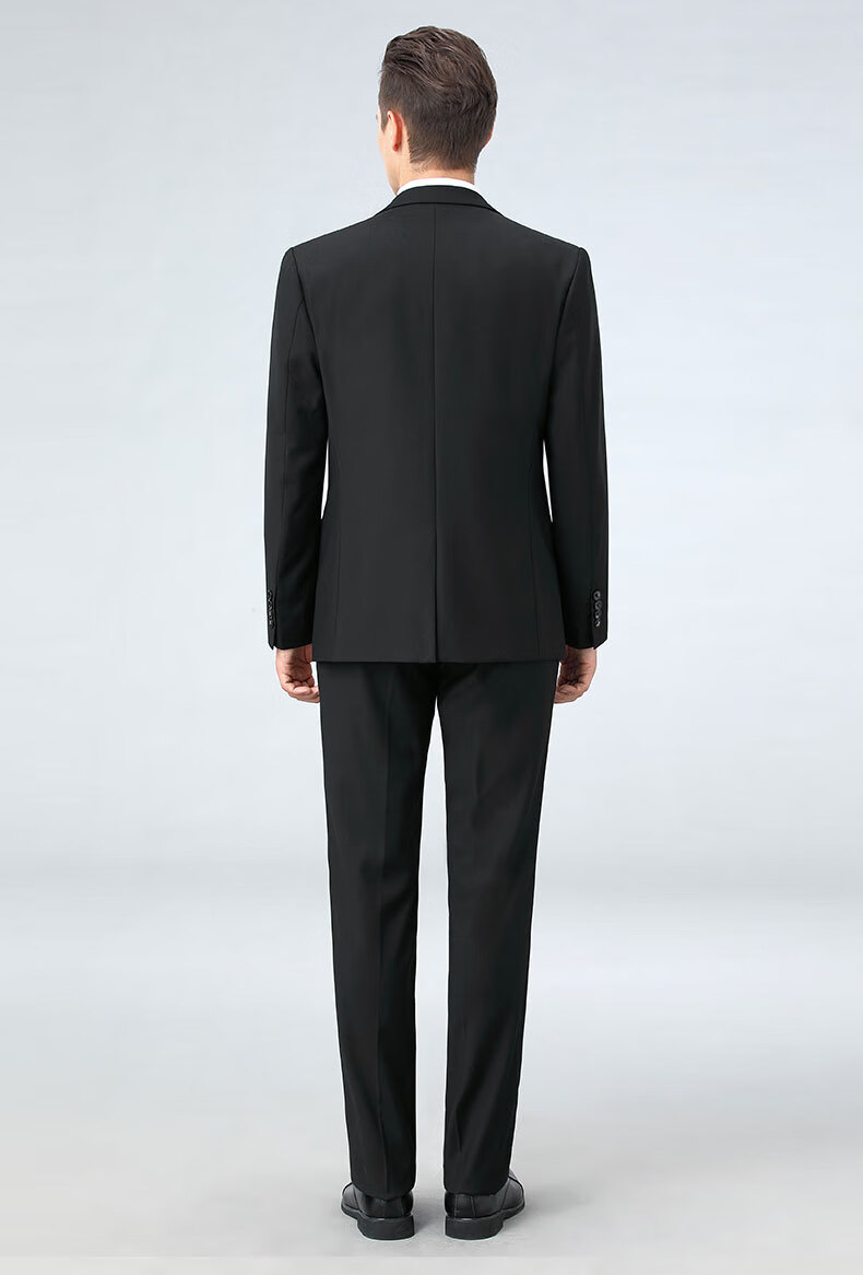 Pierre Cardin high-end no-iron men's wool suit three-piece business casual professional solid color formal fitted suit for men, navy blue clothes + pants XL 180 size/52 official authentic