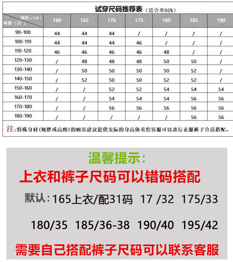China (cm) 165 / 88-90 170 / 96-98 175 / 108-110 180 / 118-122 185 / 126-130