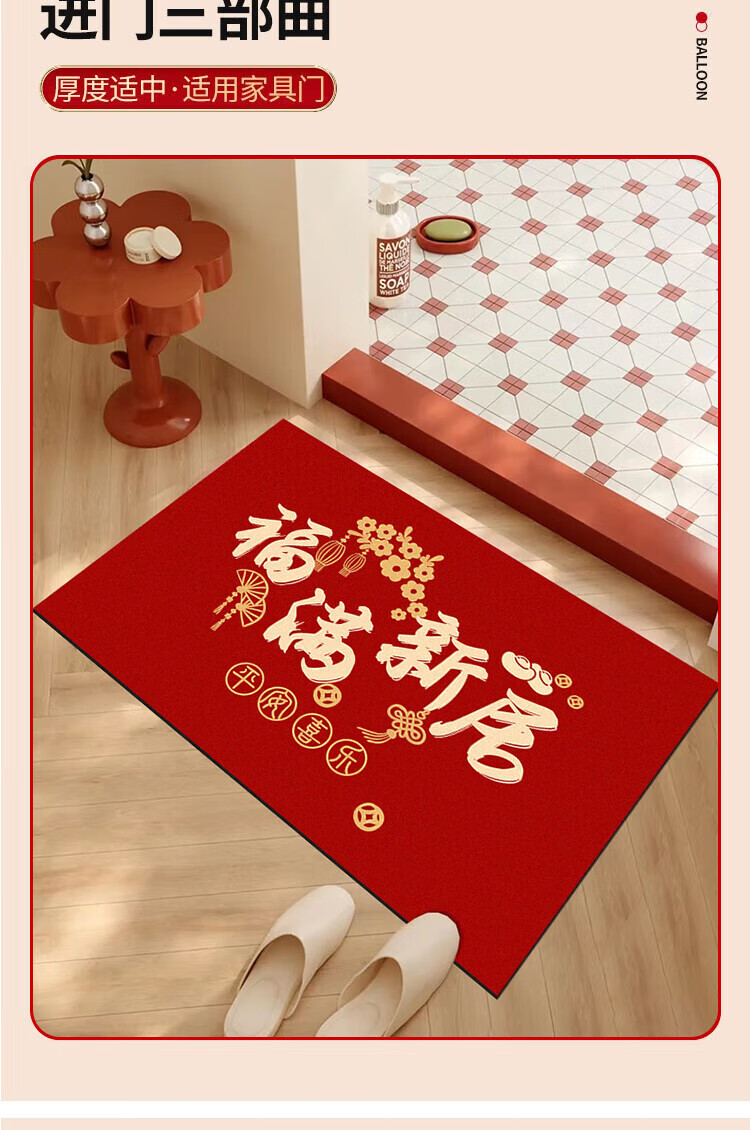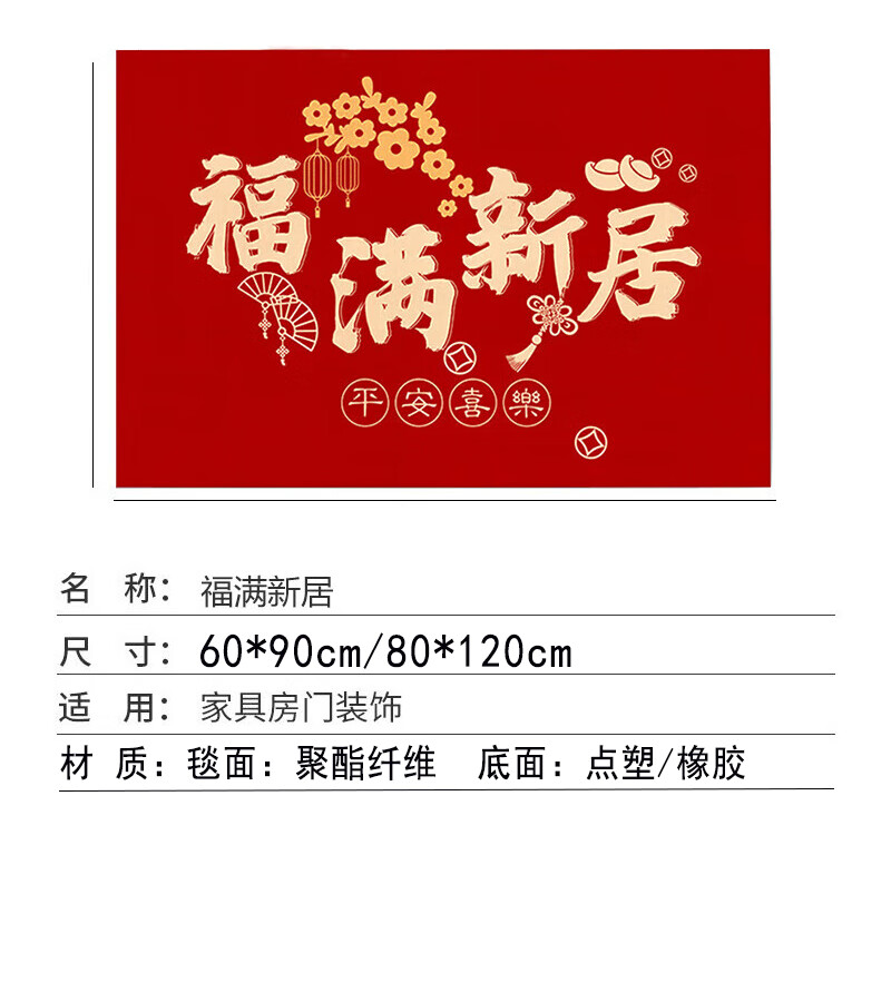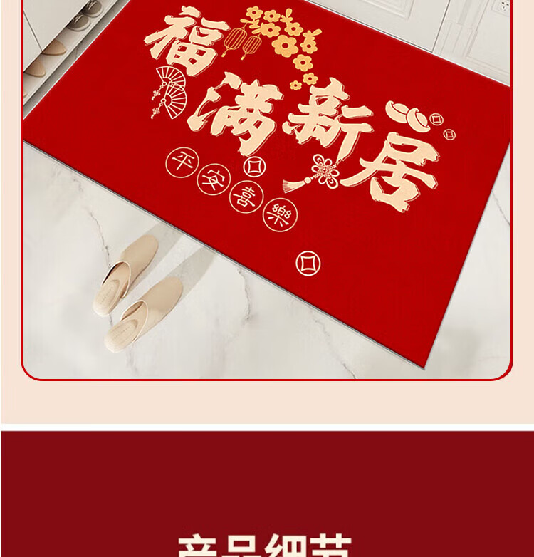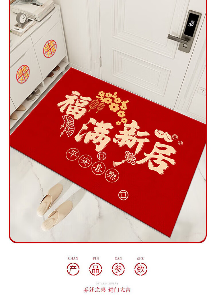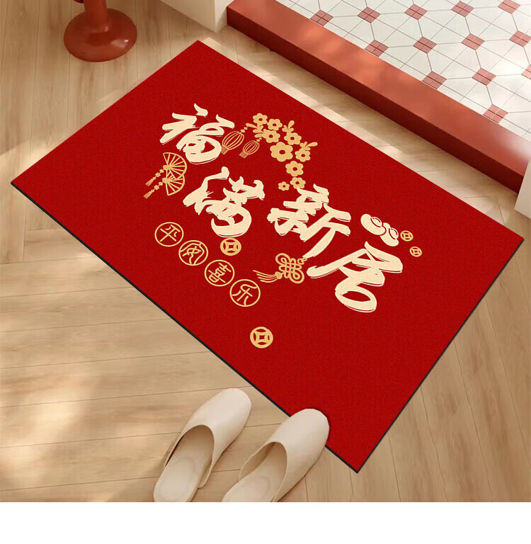 Fan Shengyu's joy of moving into the house, door mats, door mats, moving to a new house, moving to a new home, door carpet, red floor mats, Fuman New Home 8mm crystal velvet 80*120CM