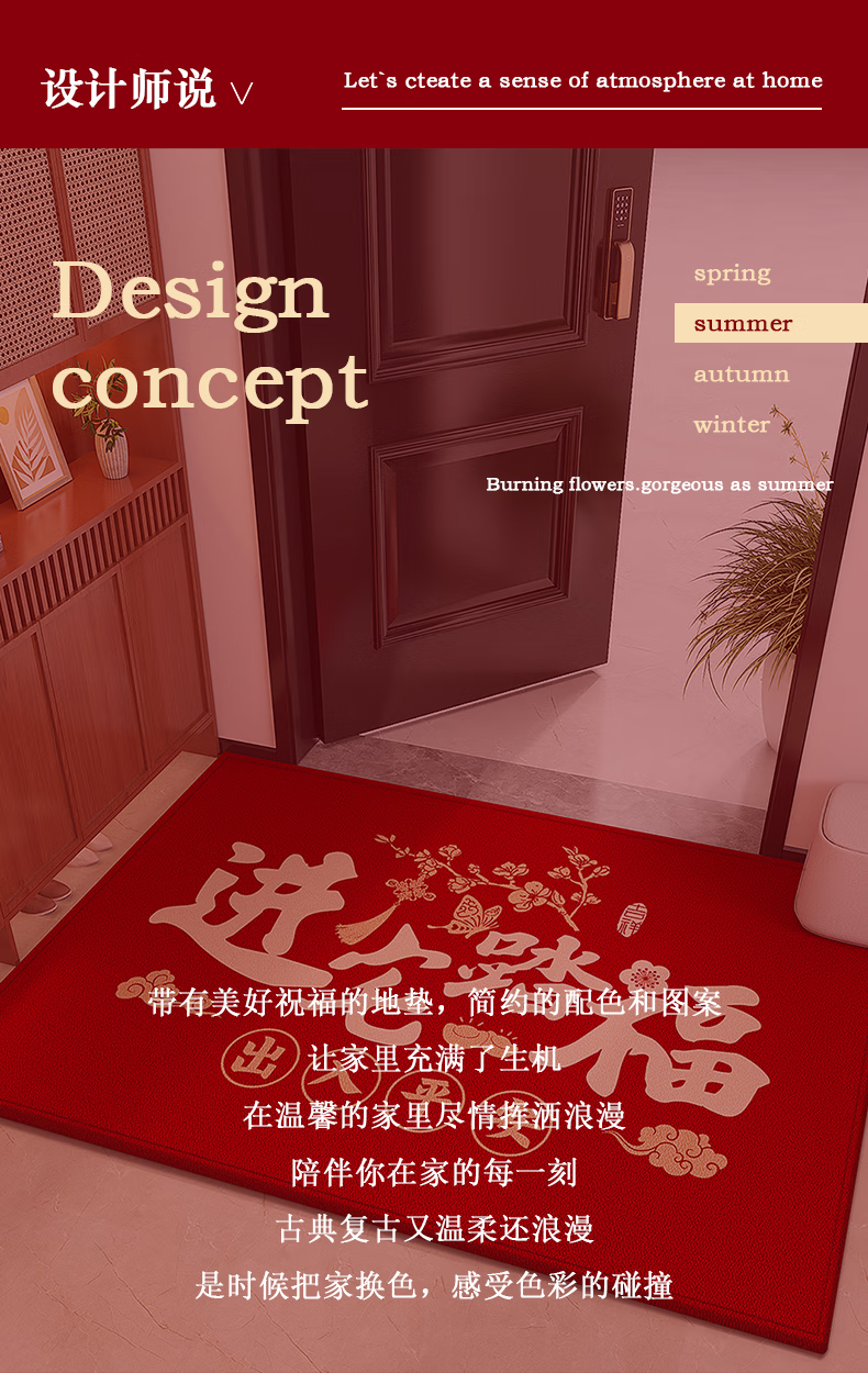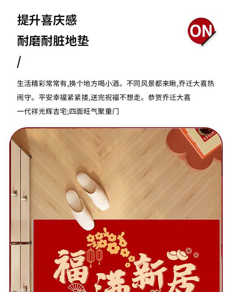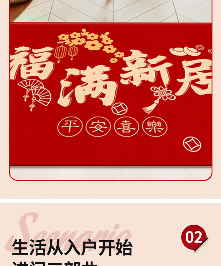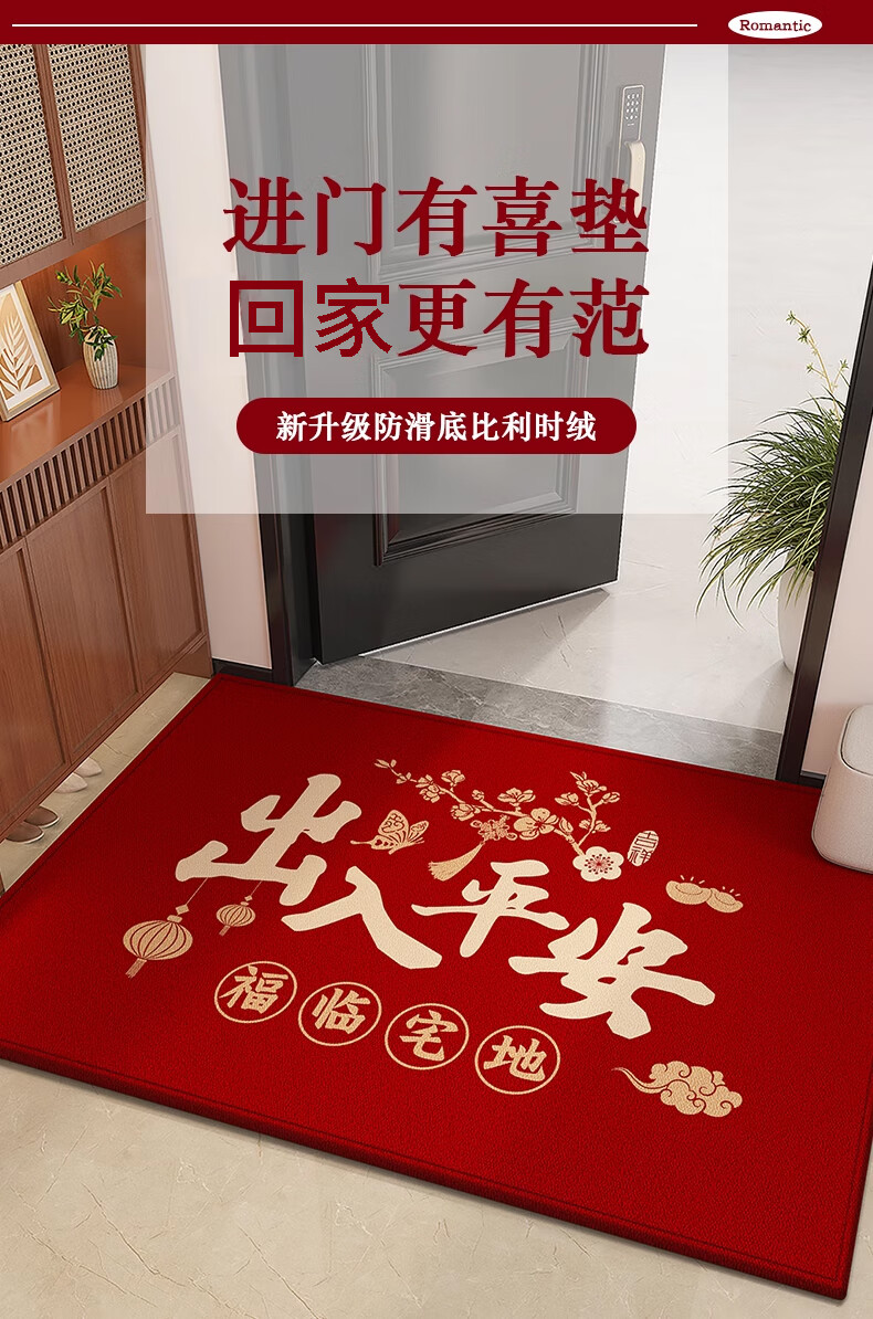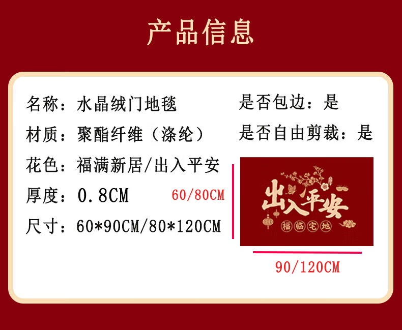 Fan Shengyu's joy of moving into the house, door mats, door mats, moving to a new house, moving to a new home, door carpet, red floor mats, Fuman New Home 8mm crystal velvet 80*120CM