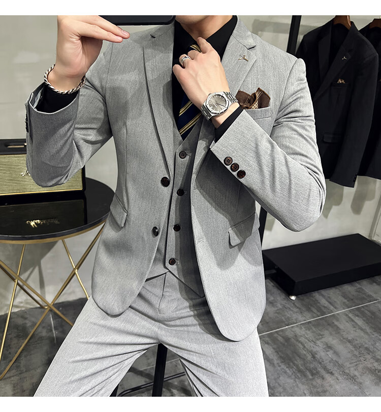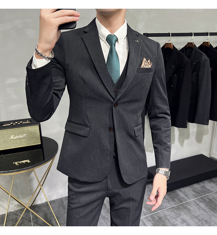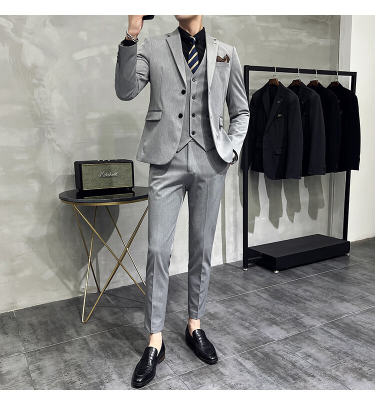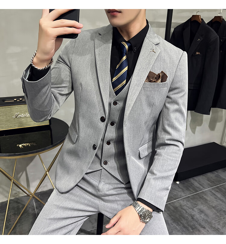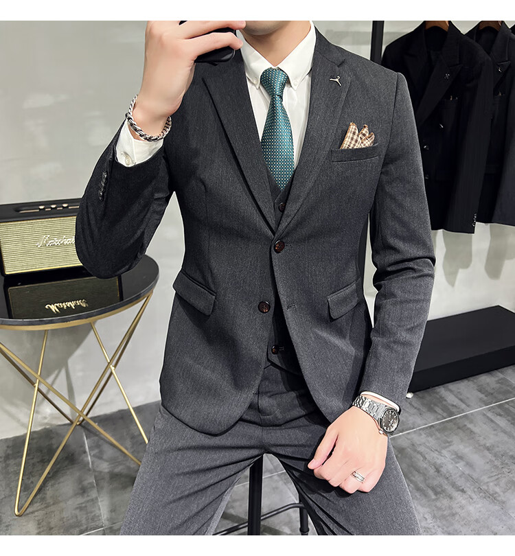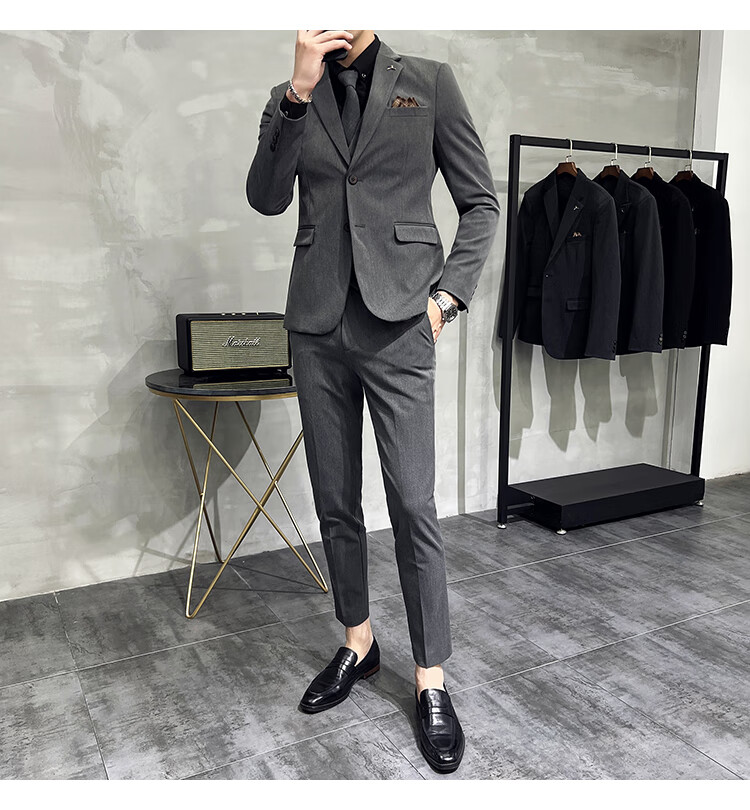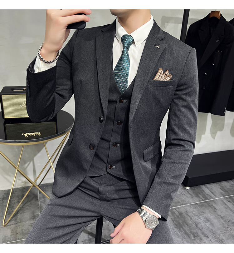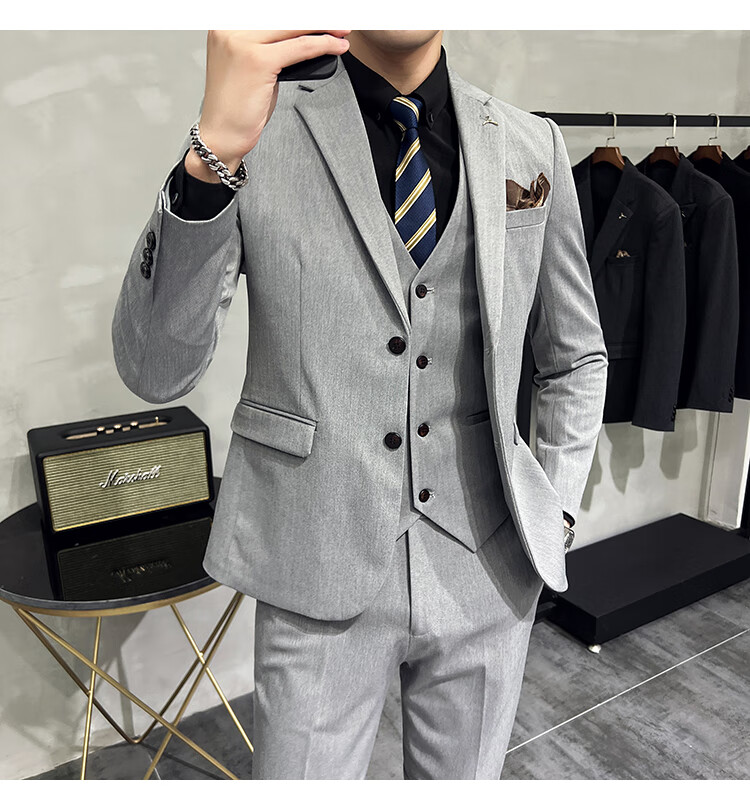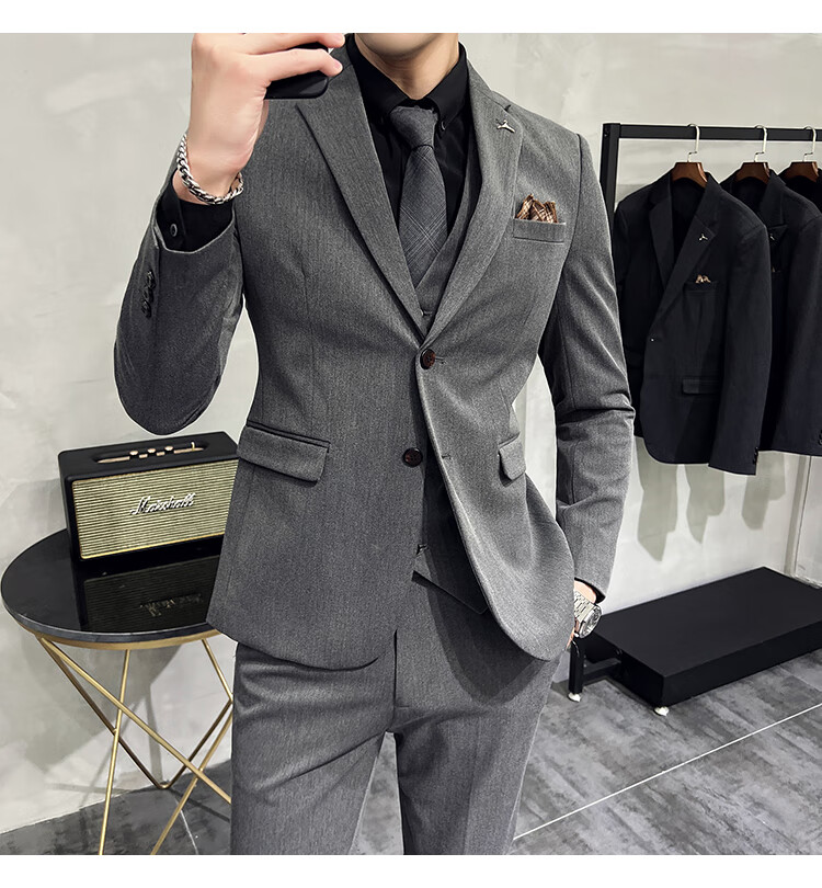 Pierre Cardin business casual single-breasted suit suit groom Korean style men's slim double slit small suit lapel collar formal suit black suit + trousers + vest free black tie XL