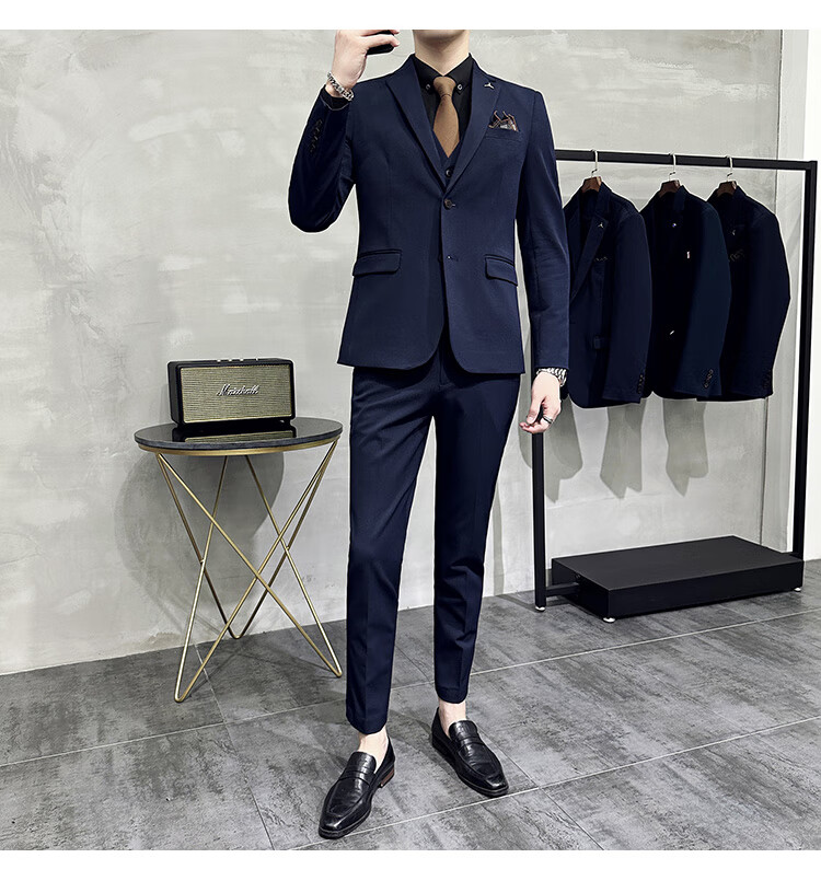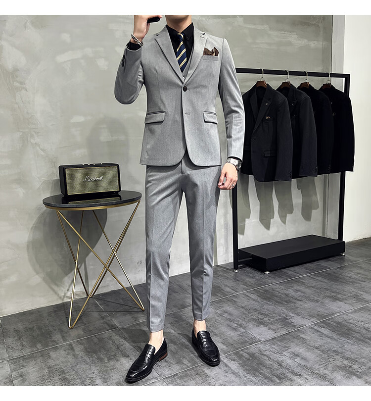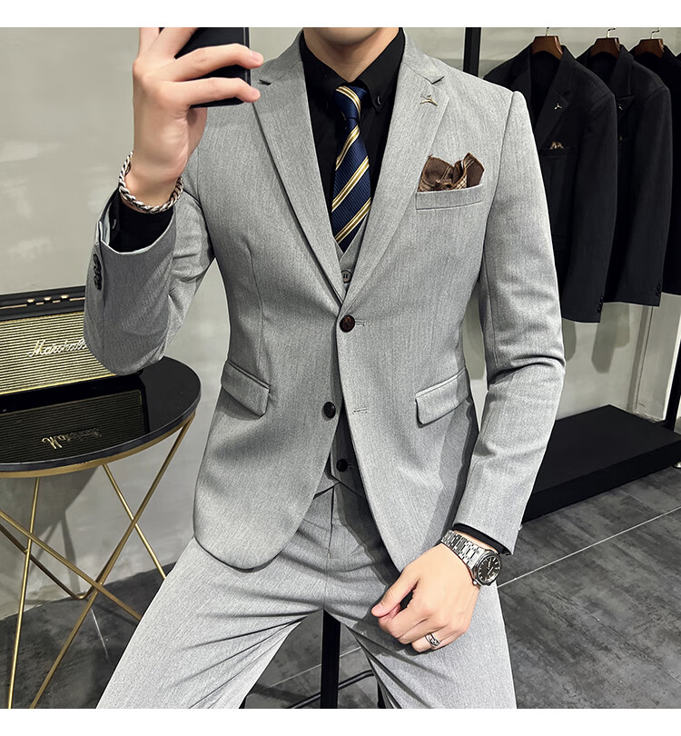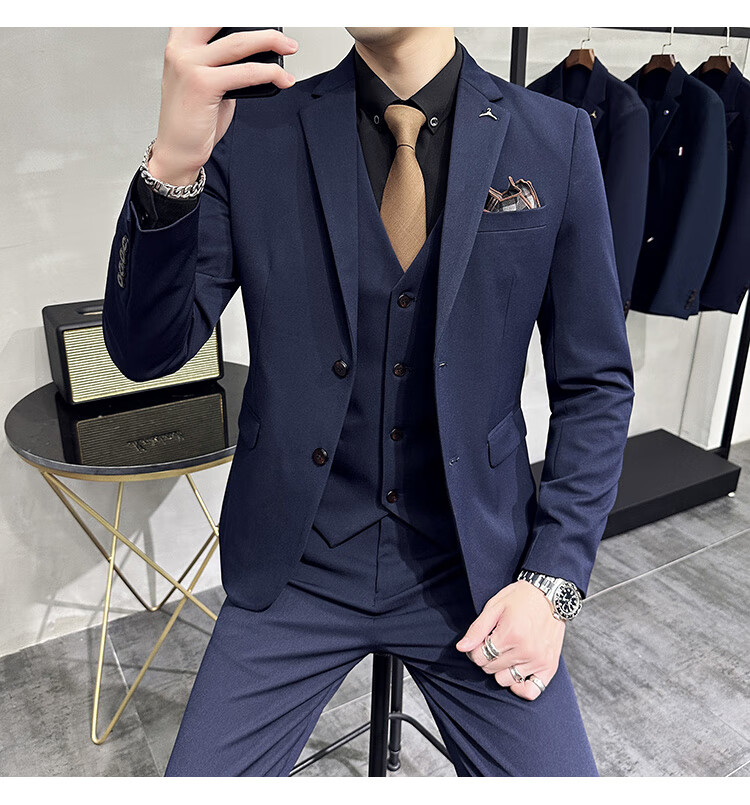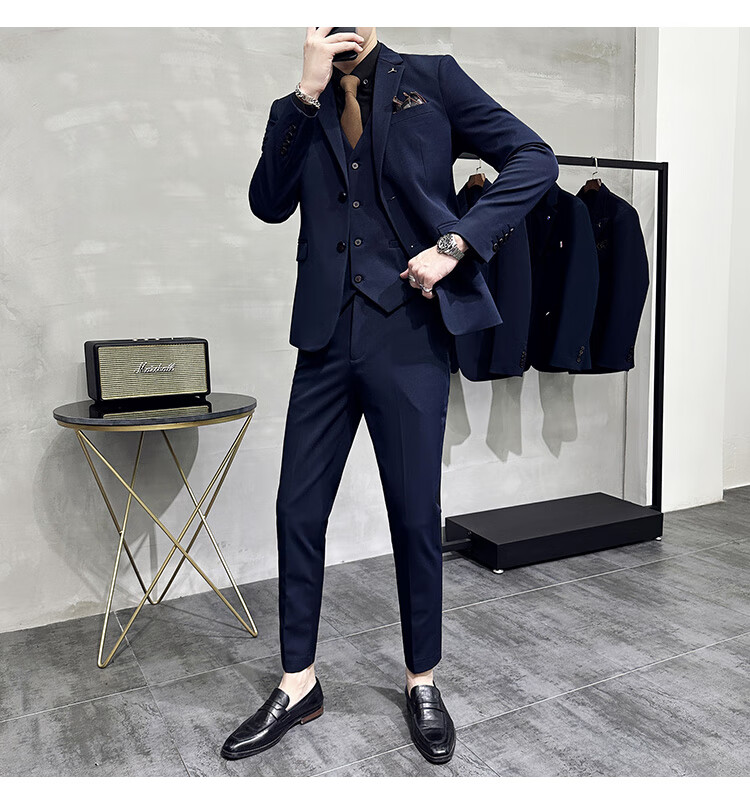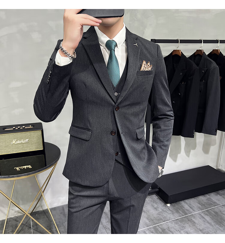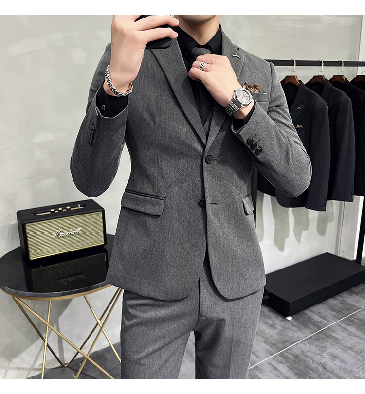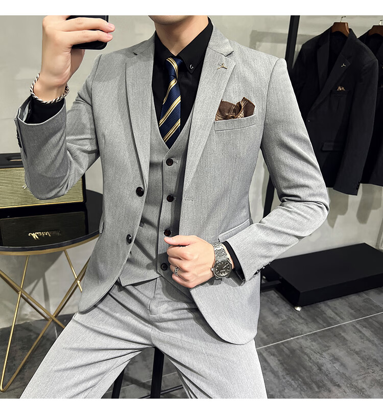Pierre Cardin business casual single-breasted suit suit groom Korean style men's slim double slit small suit lapel collar formal suit black suit + trousers + vest free black tie XL