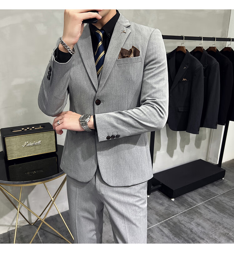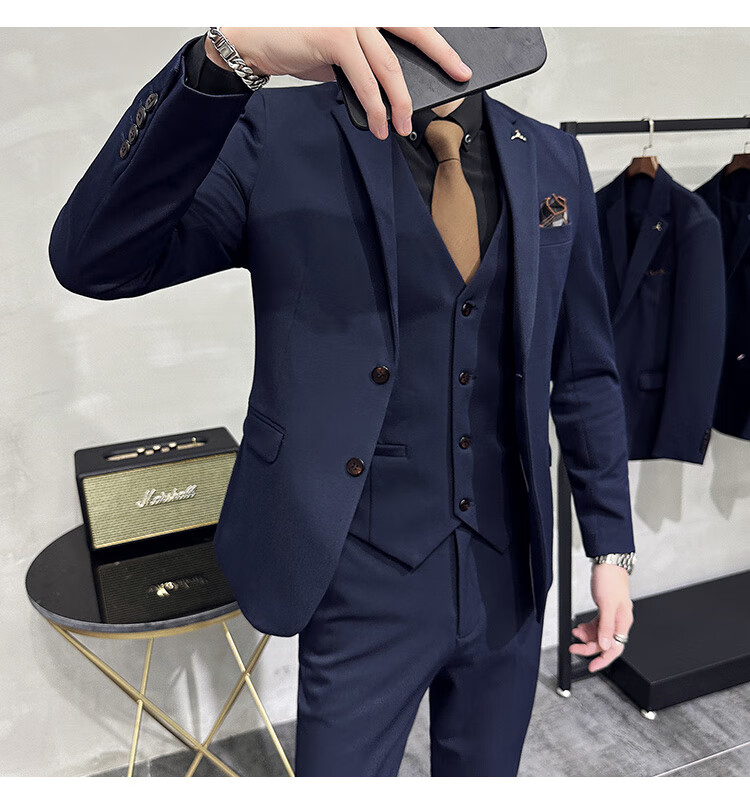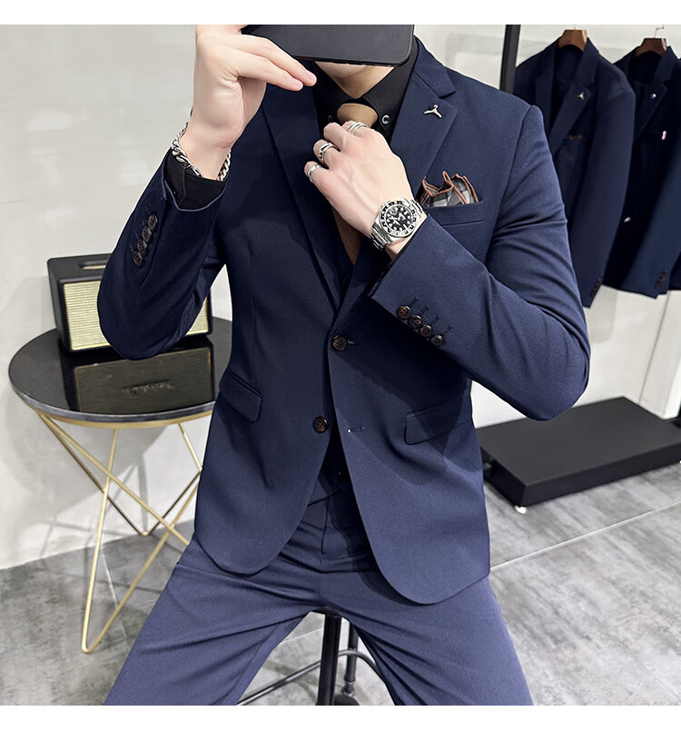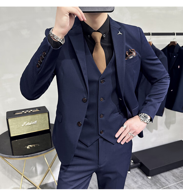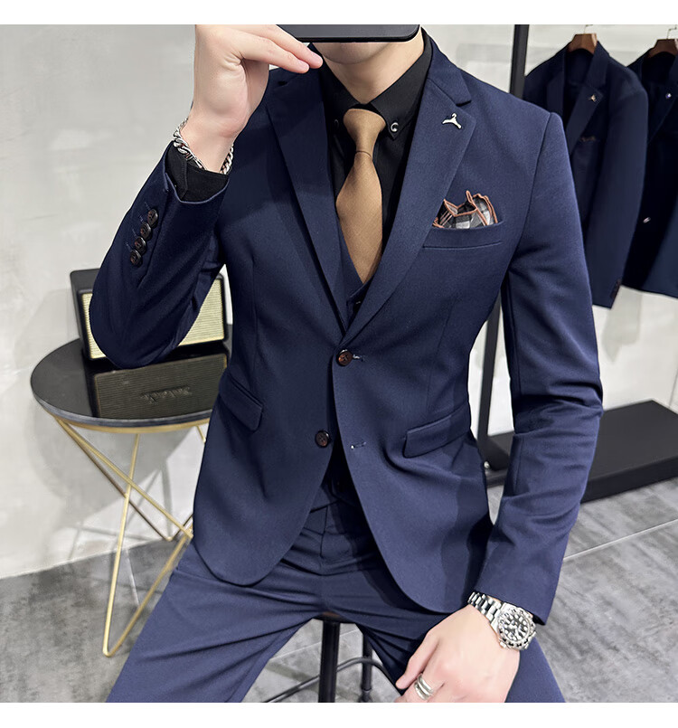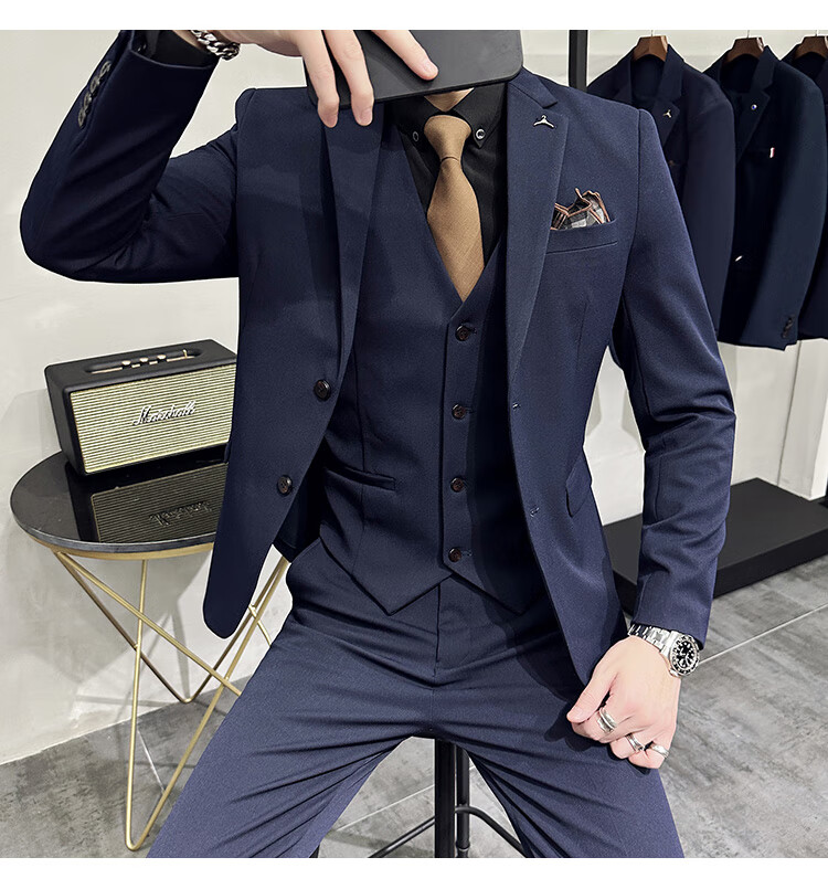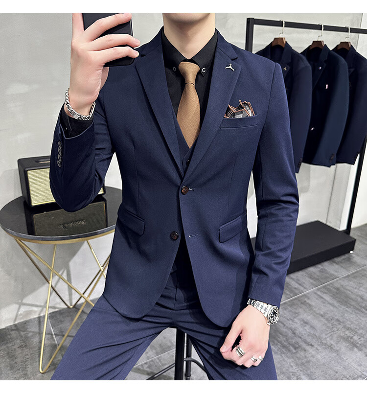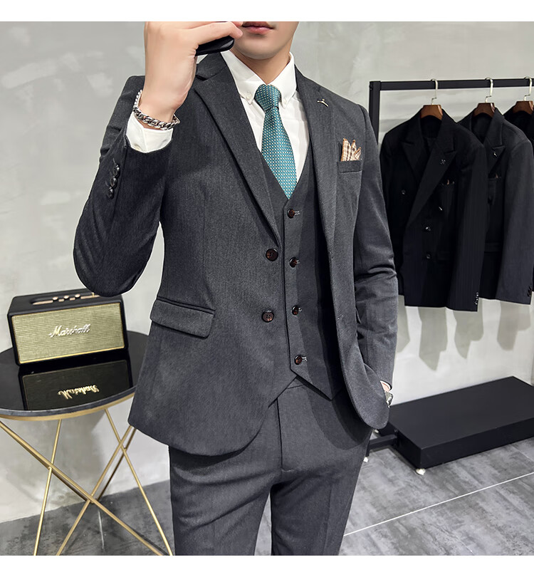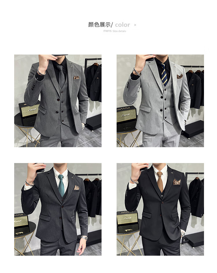 Pierre Cardin business casual single-breasted suit suit groom Korean style men's slim double slit small suit lapel collar formal suit black suit + trousers + vest free black tie XL