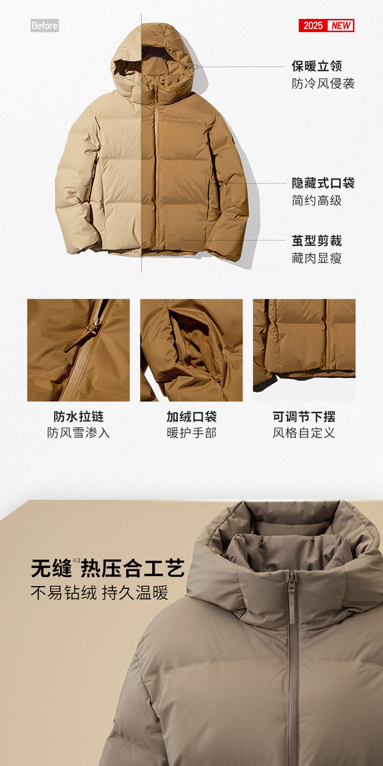 UNIQLO Women's Seamless Down Hooded Jacket/Coat Jacket 478577 01 Milky White L/160/88A