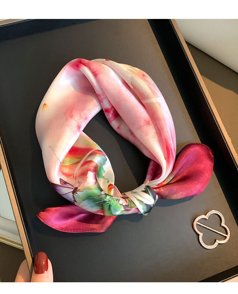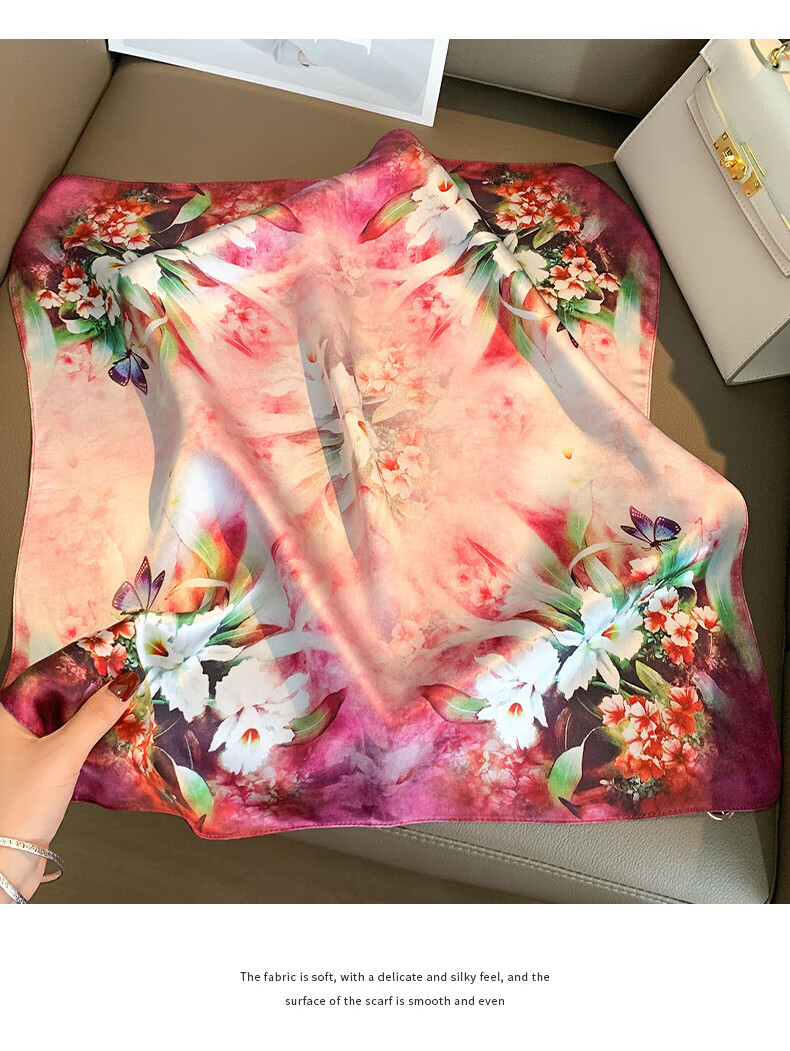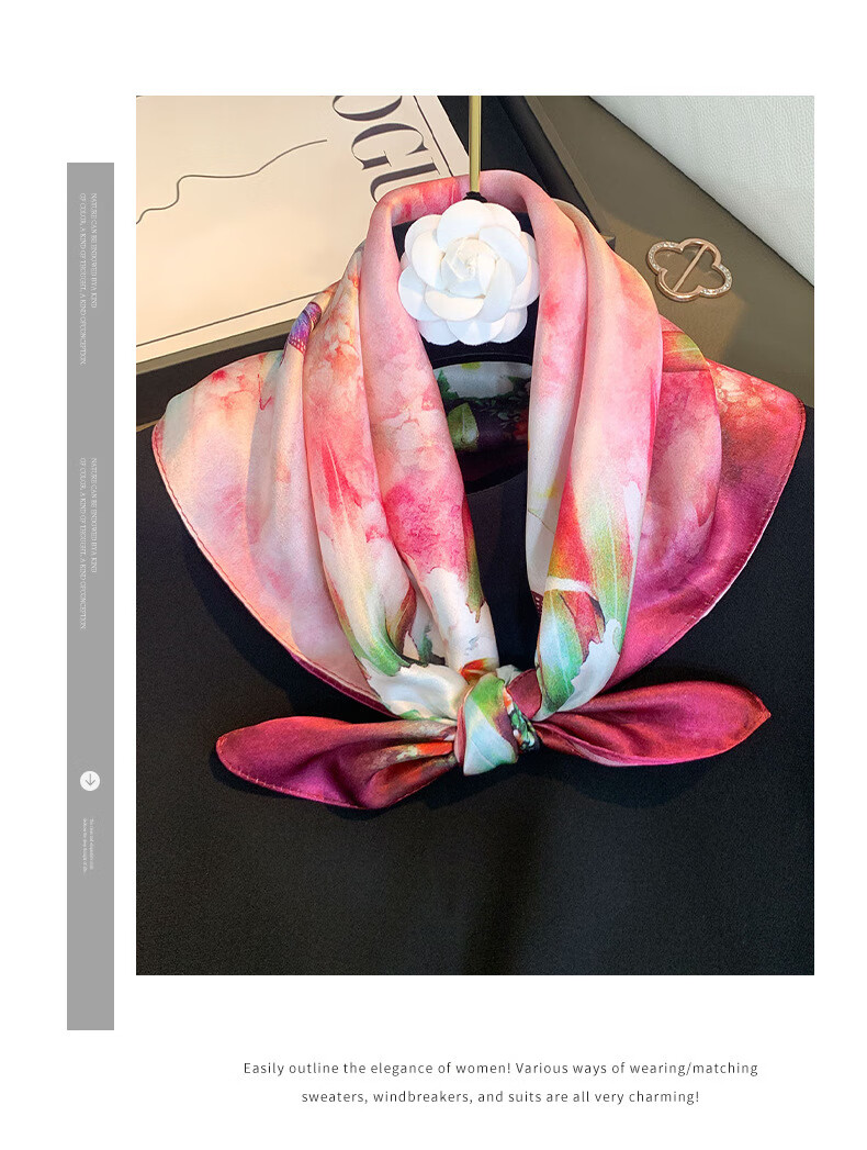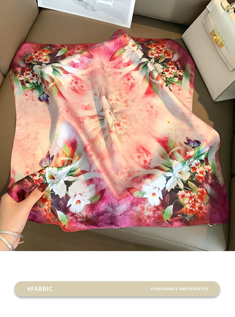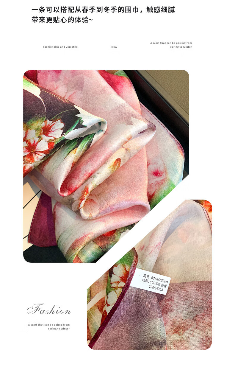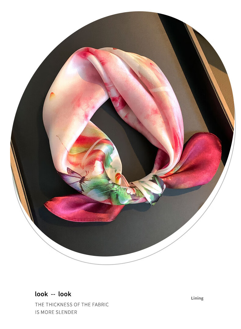 Raodie Hangzhou Silk 100 Mulberry Silk Square Scarf Scarf Feel Pink Flower Women's Tube Top Headband Main Picture Color 53*53cm