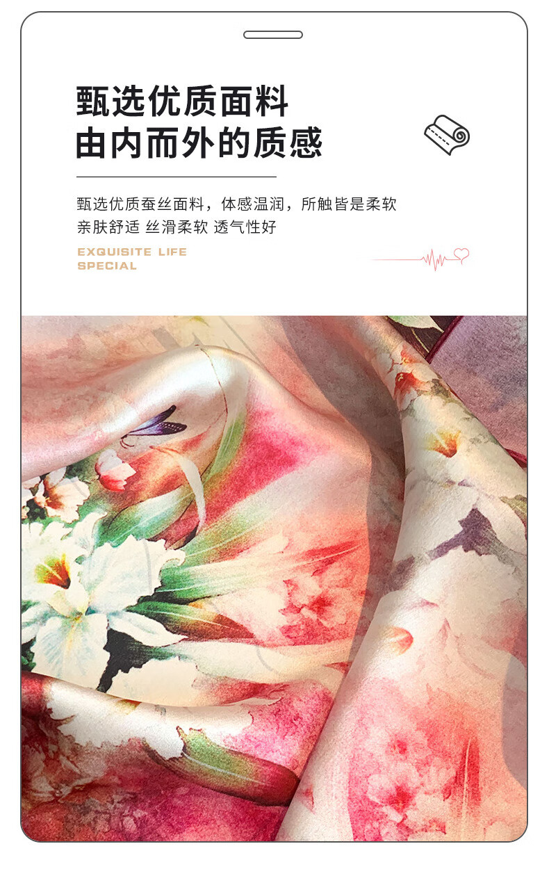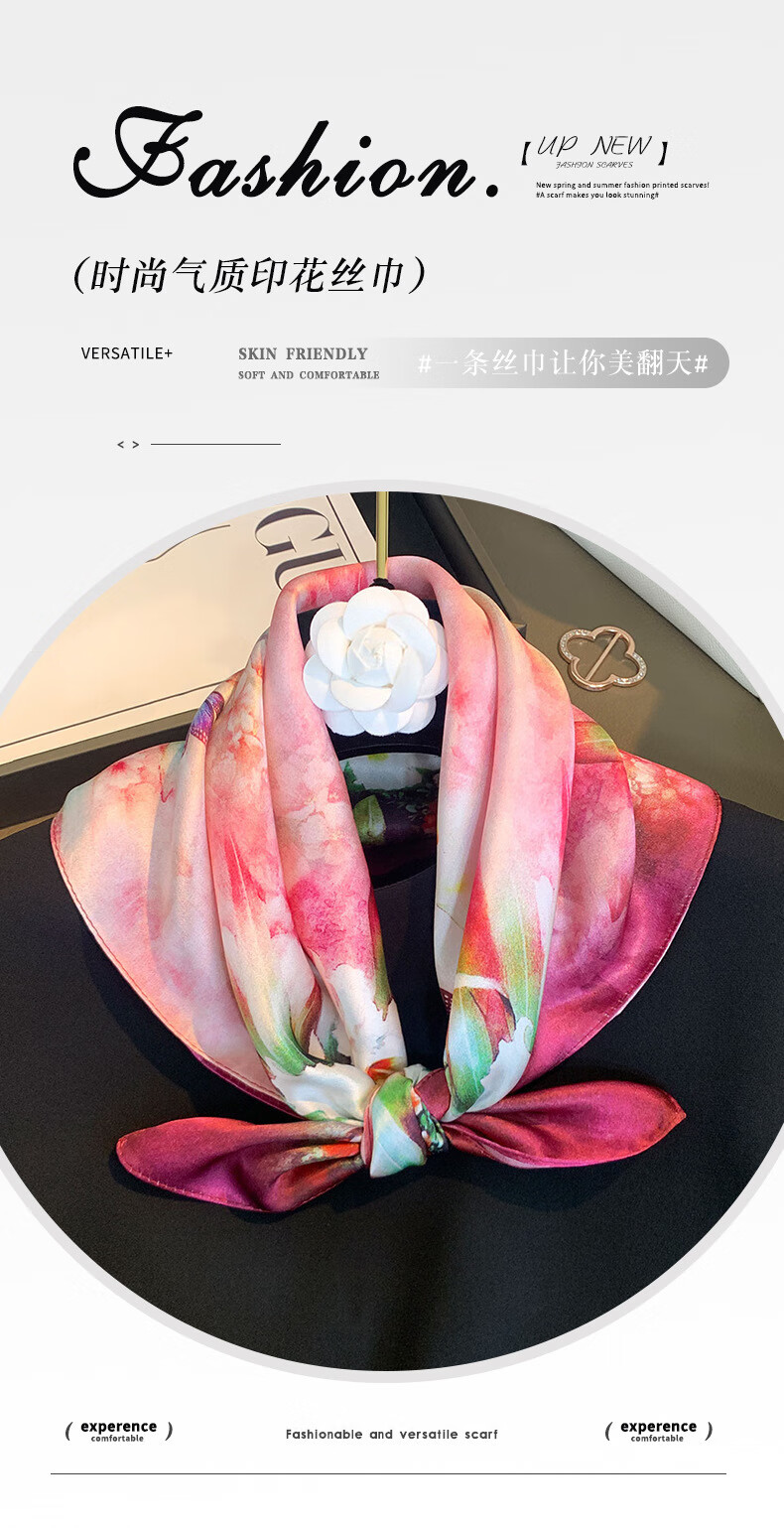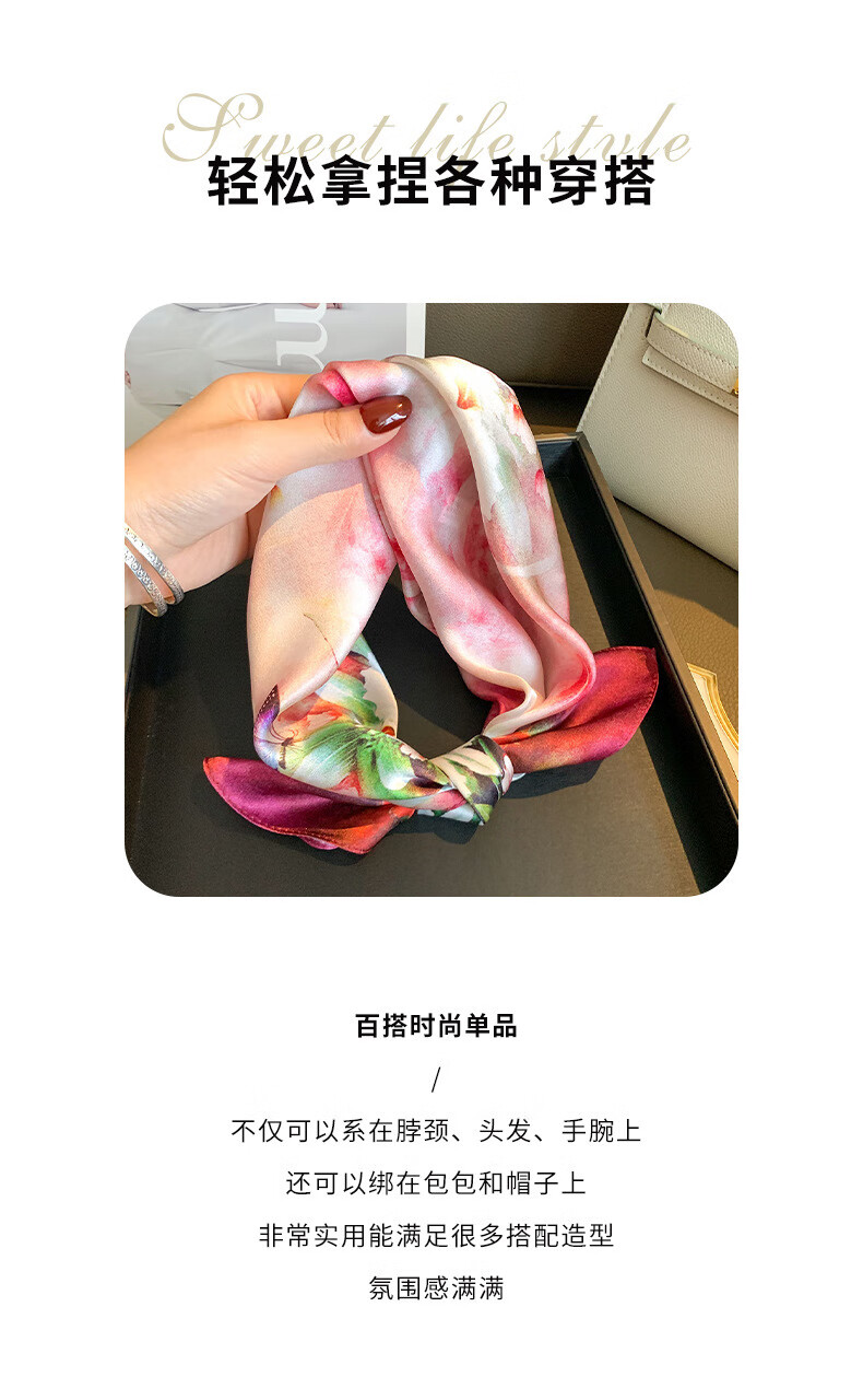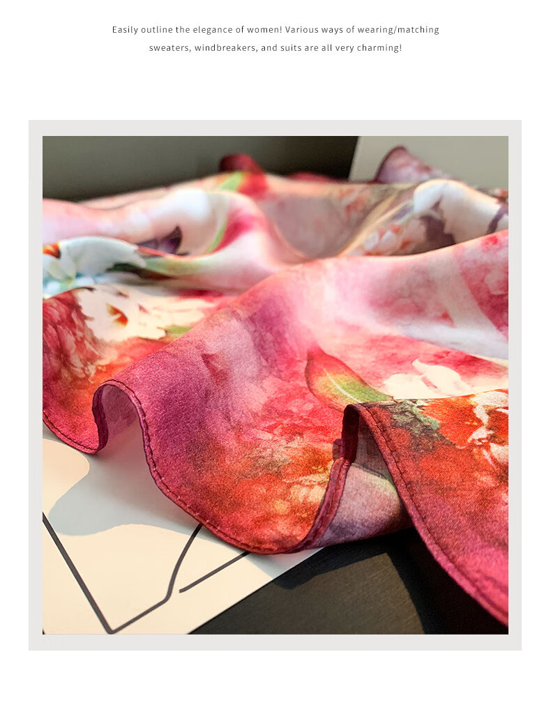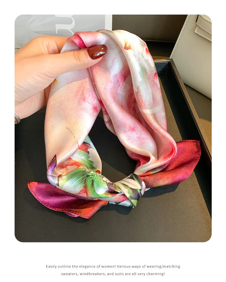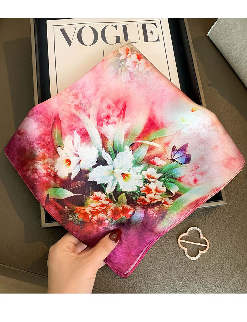 Raodie Hangzhou Silk 100 Mulberry Silk Square Scarf Scarf Feel Pink Flower Women's Tube Top Headband Main Picture Color 53*53cm