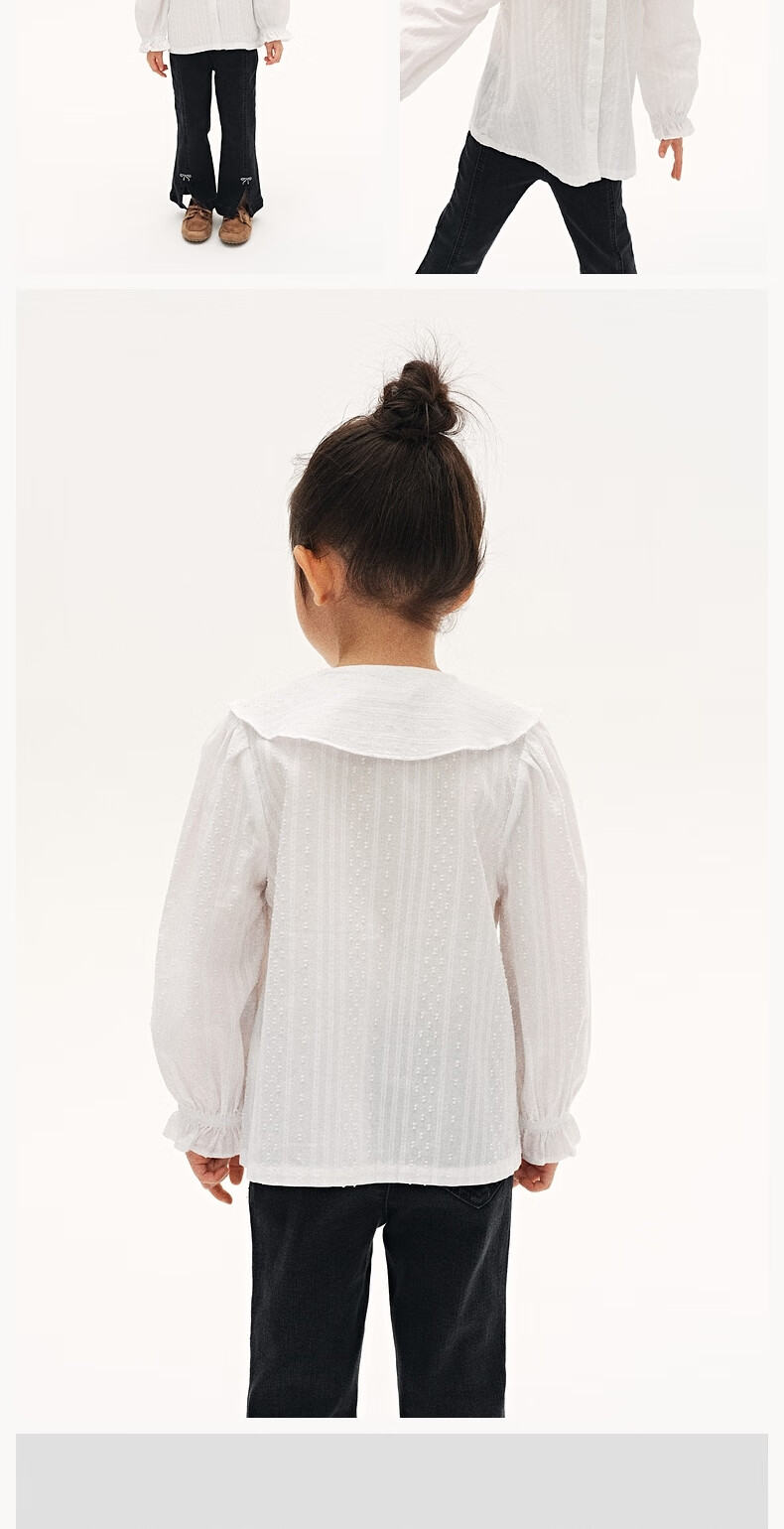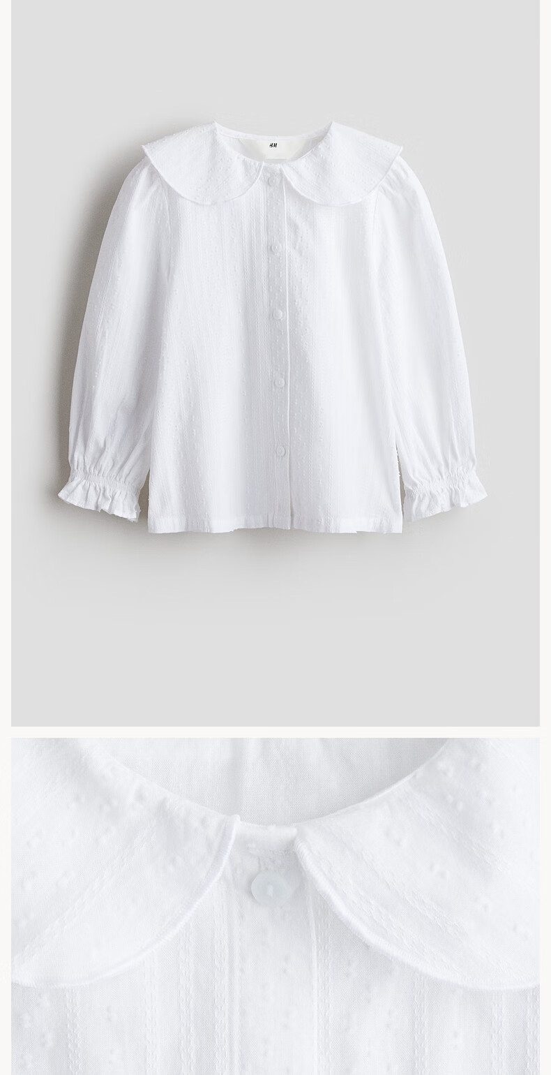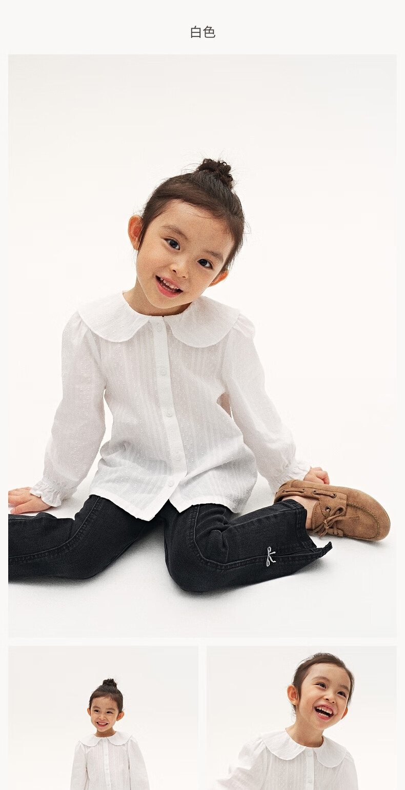 H&M children's clothing children's girls' shirt spring long-sleeved dress performance clothing textured cotton top 1306127 white 120 120/60 (4-6Y)