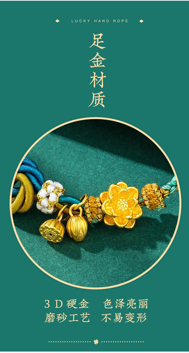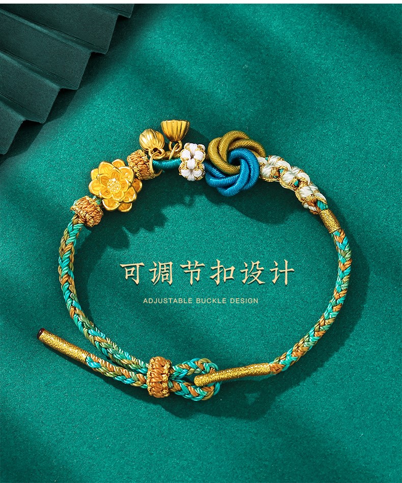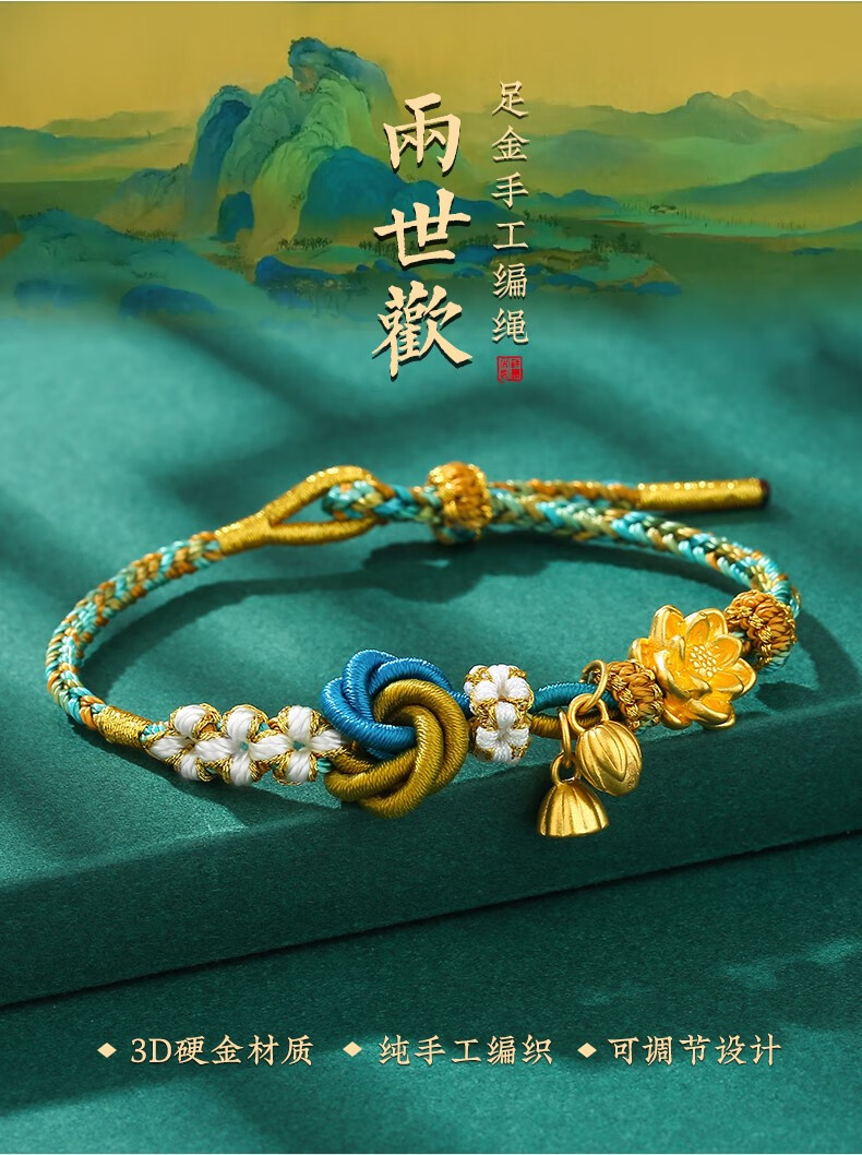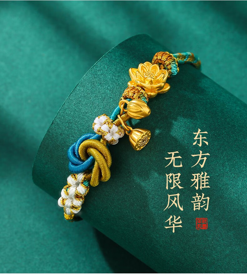 NIOBAHIOR Old Phoenix 999 Pure Gold Bracelet Lotus Two Worlds Happy Bracelet Hand-woven Thousand Miles of Rivers and Mountains 3D Hard Gold Gift Lotus + Lotus Pendant + Lotus Seed