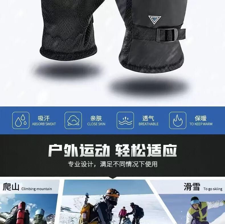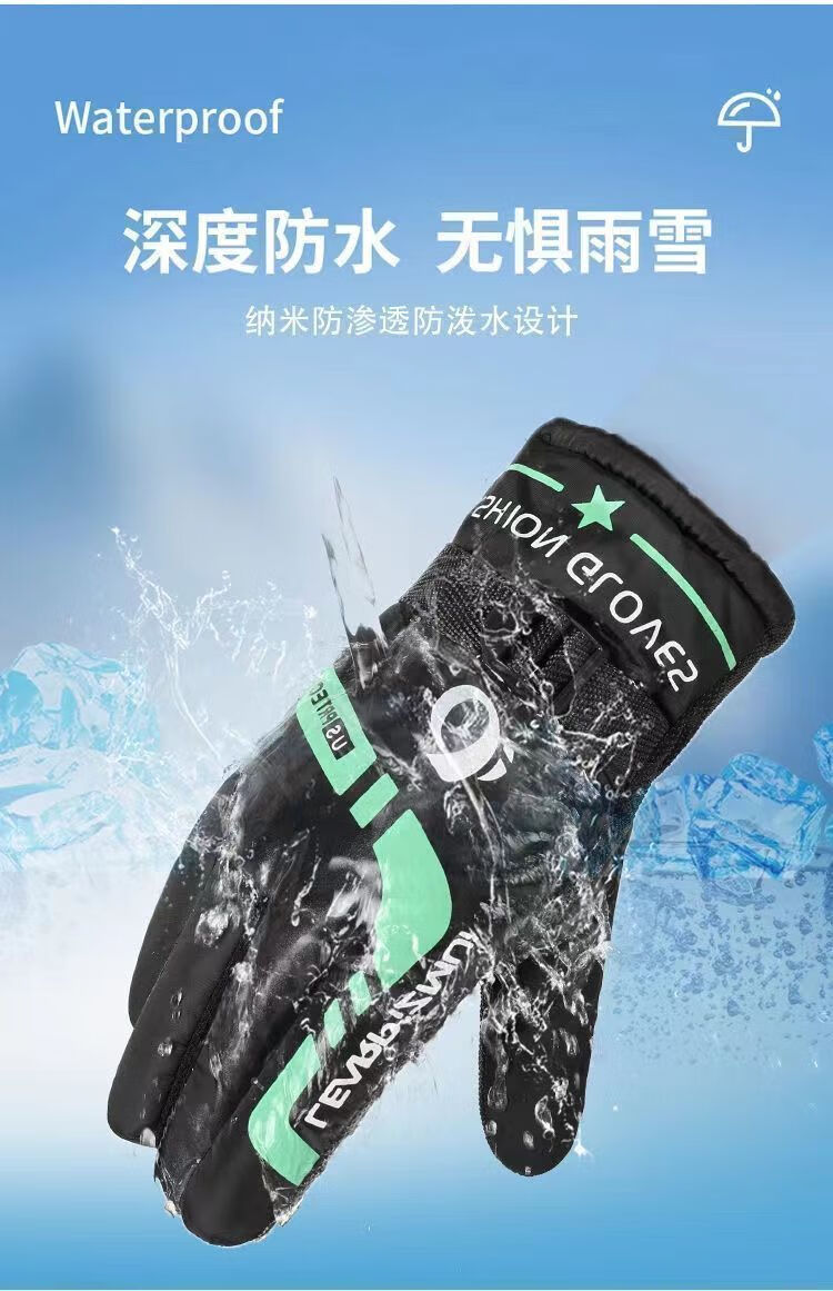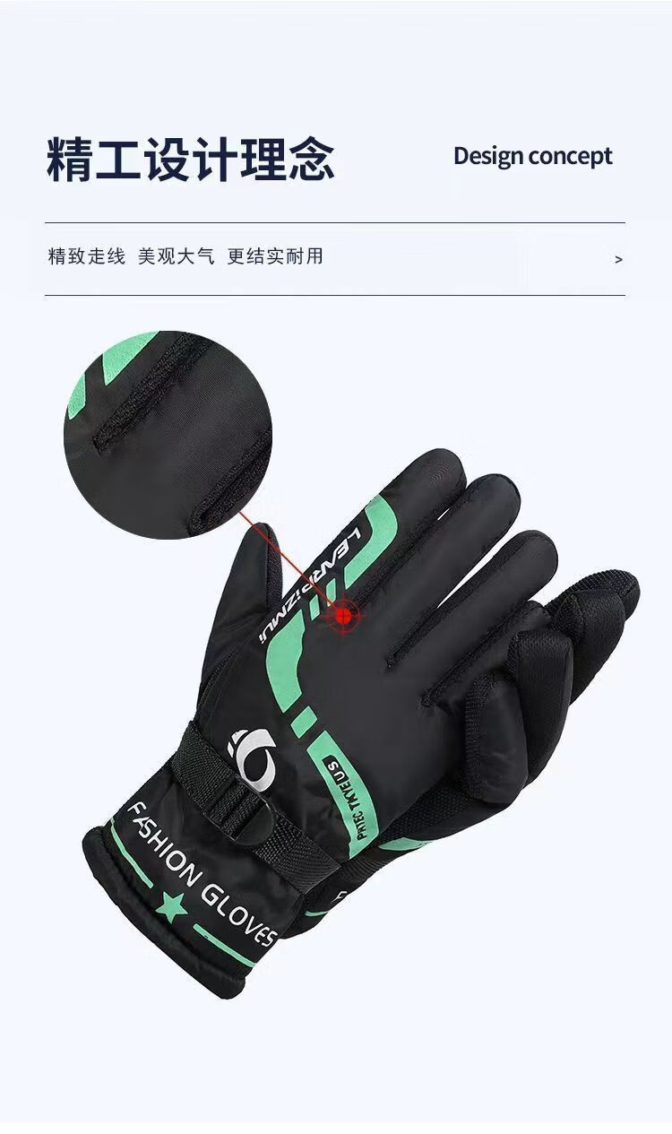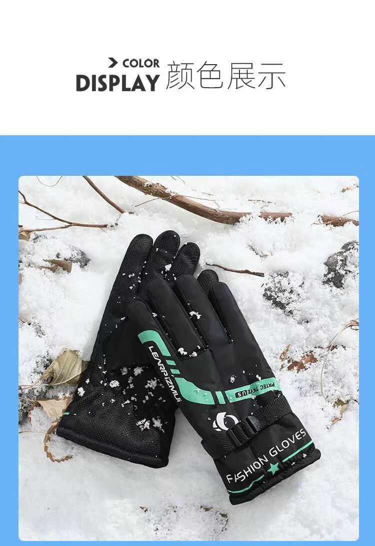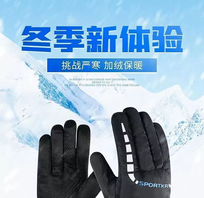 Pioneer Winter Warm Gloves for Men and Women, Windproof, Velvet and Thickened, Electric Vehicles and Motorcycles, Winter Riding to Prevent Cold, Black and Red Velvet, Anti-Slip Pair