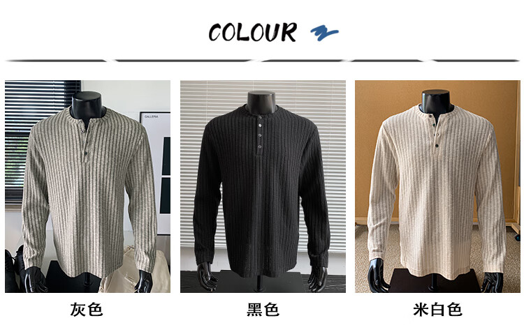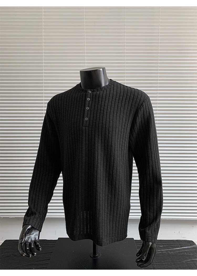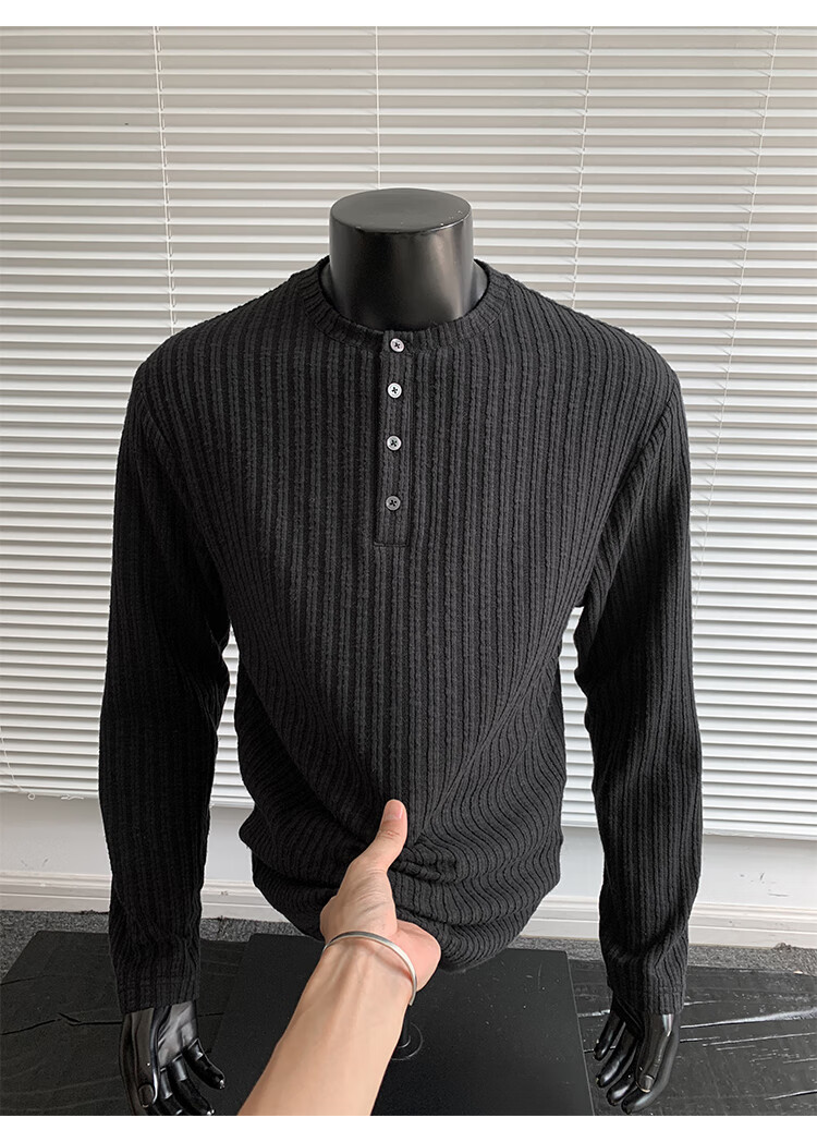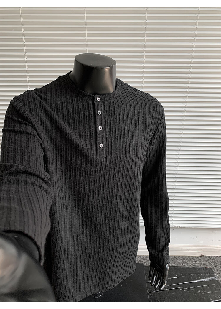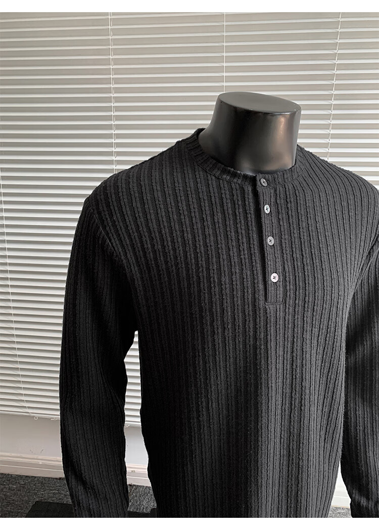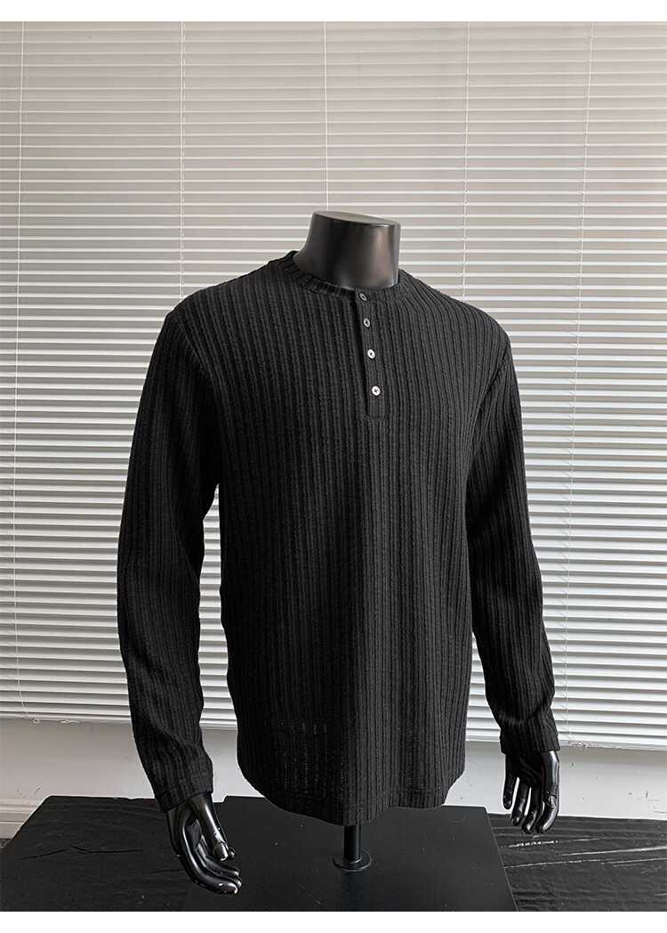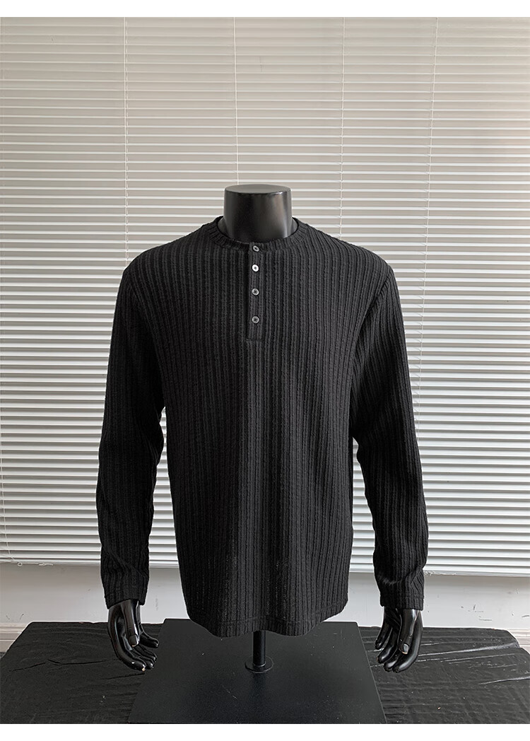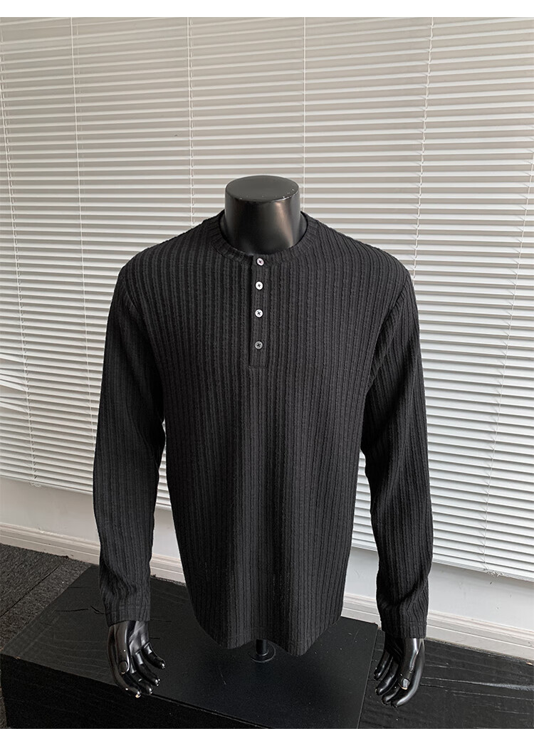 JEEP SPIRIT Henry collar long-sleeved T-shirt men's spring and autumn American round neck sweater high-end versatile striped men's bottoming shirt black M recommended weight 95-110Jin Jin equals 0.5 kg