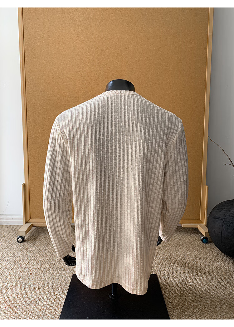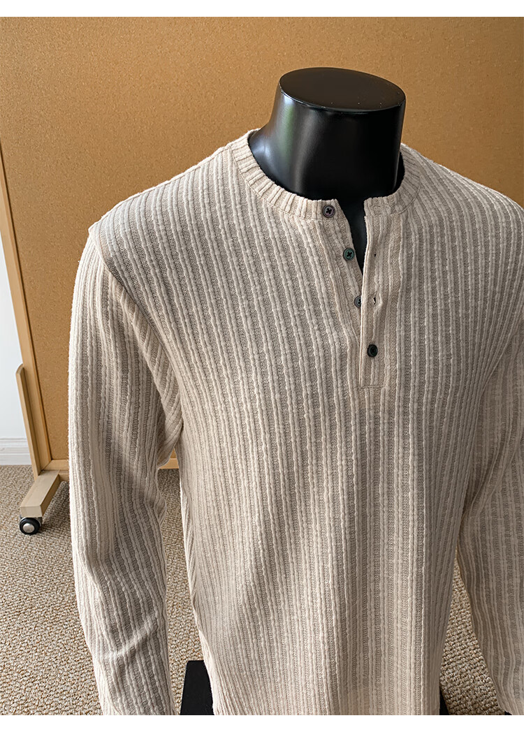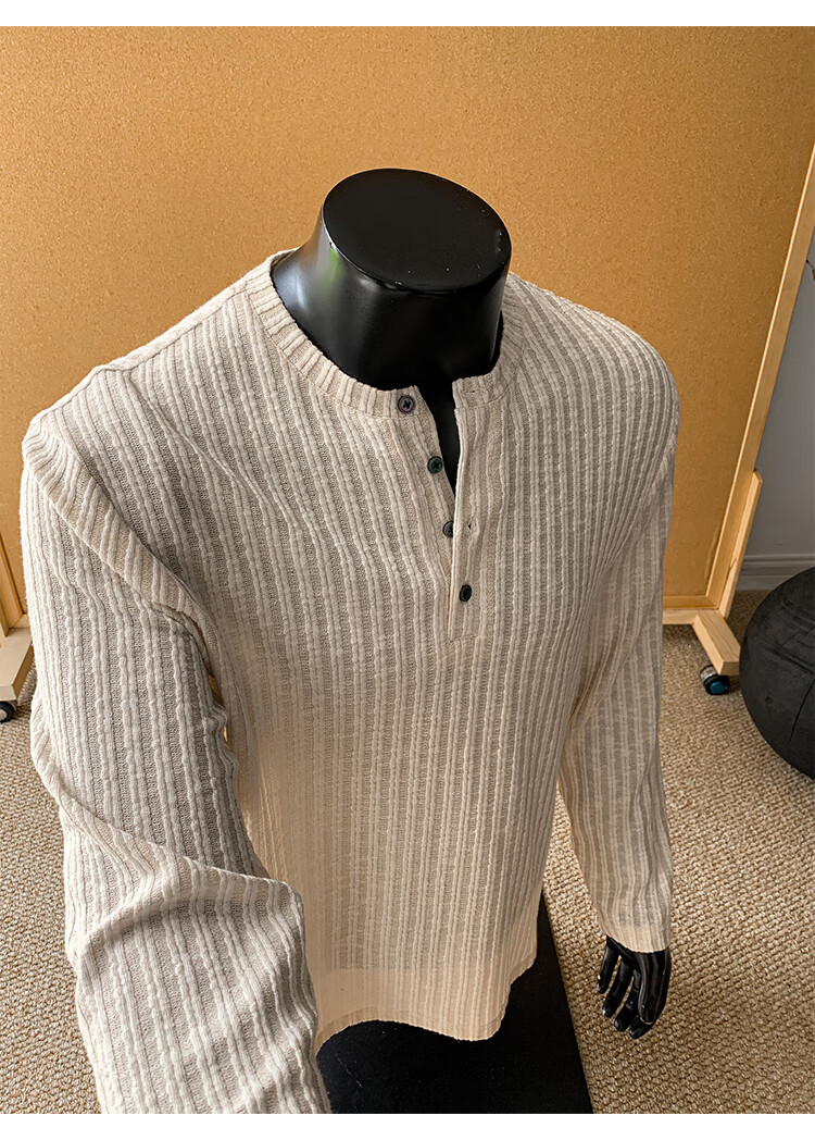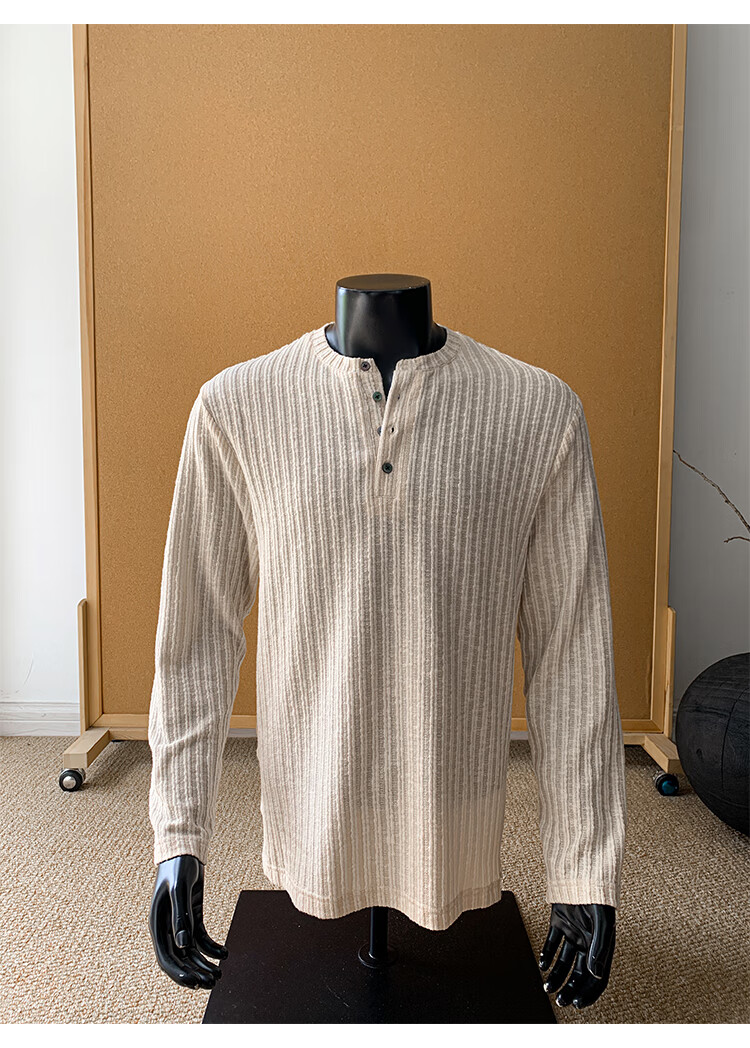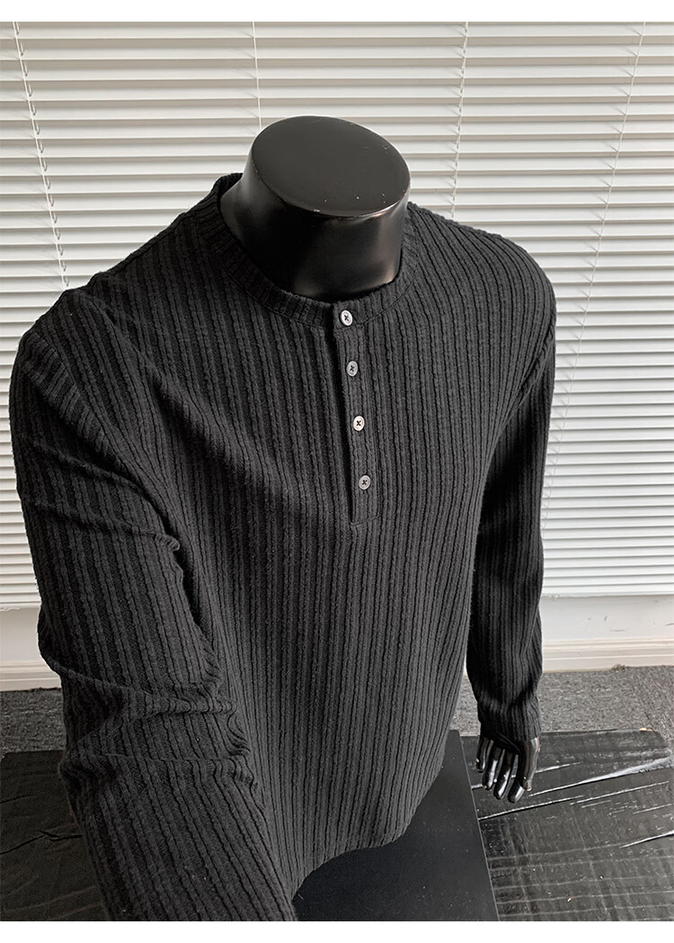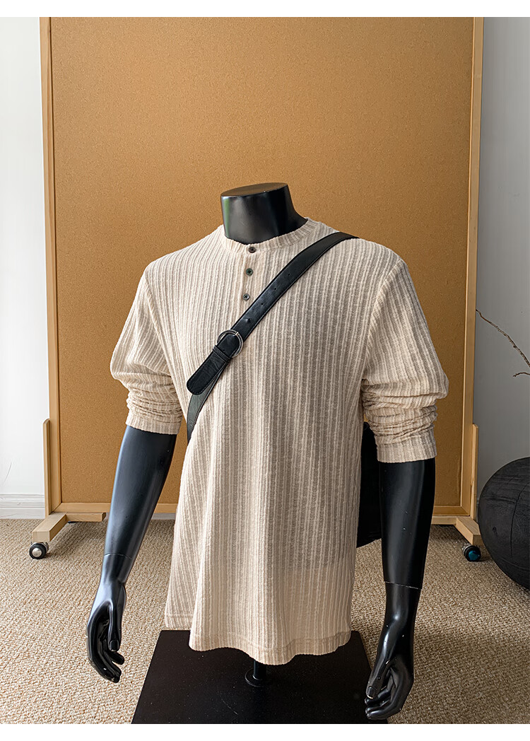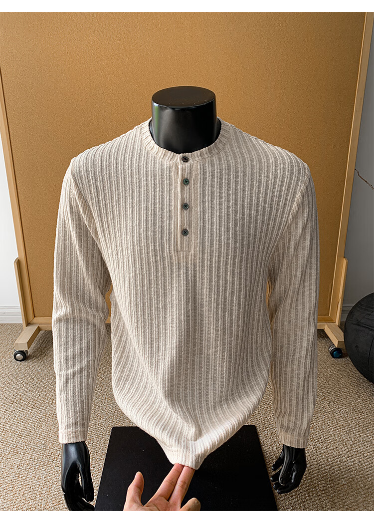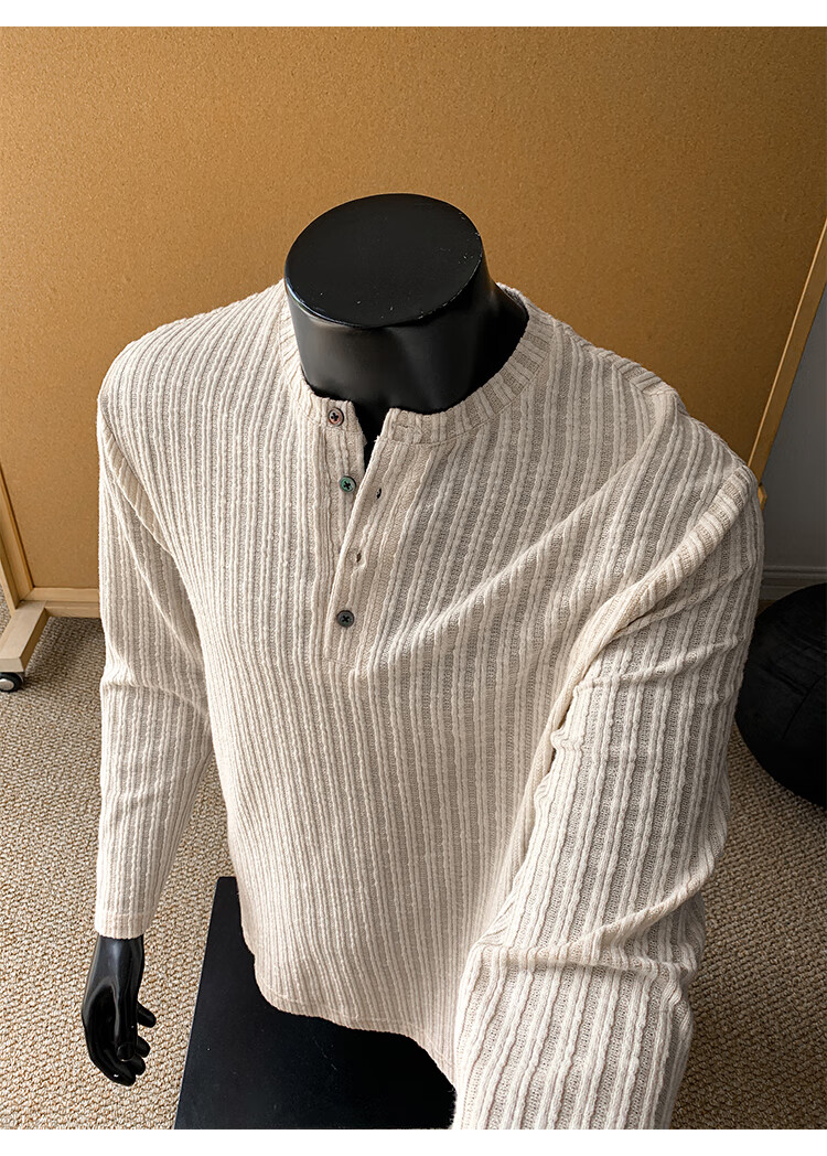 JEEP SPIRIT Henry collar long-sleeved T-shirt men's spring and autumn American round neck sweater high-end versatile striped men's bottoming shirt black M recommended weight 95-110Jin Jin equals 0.5 kg