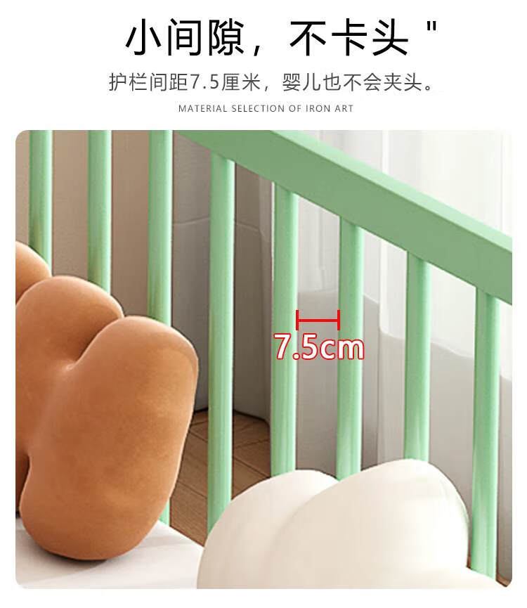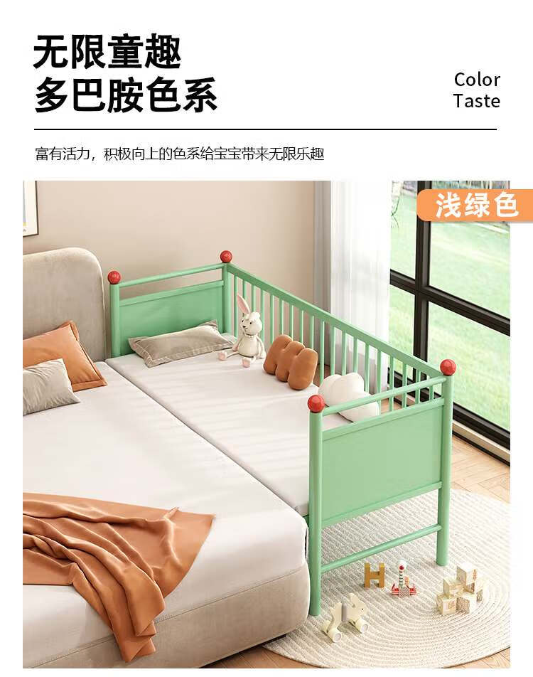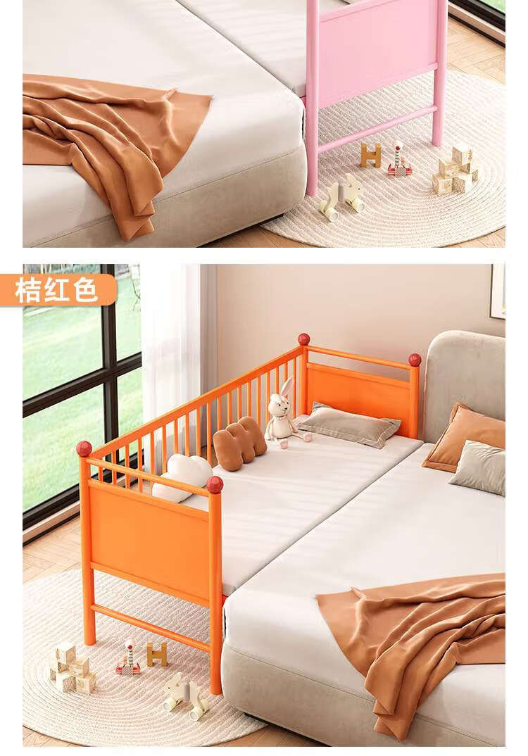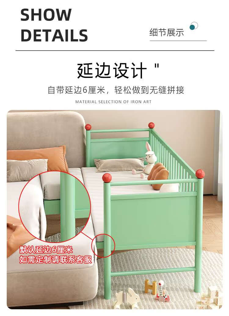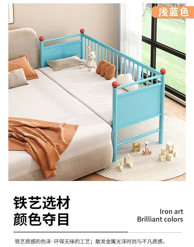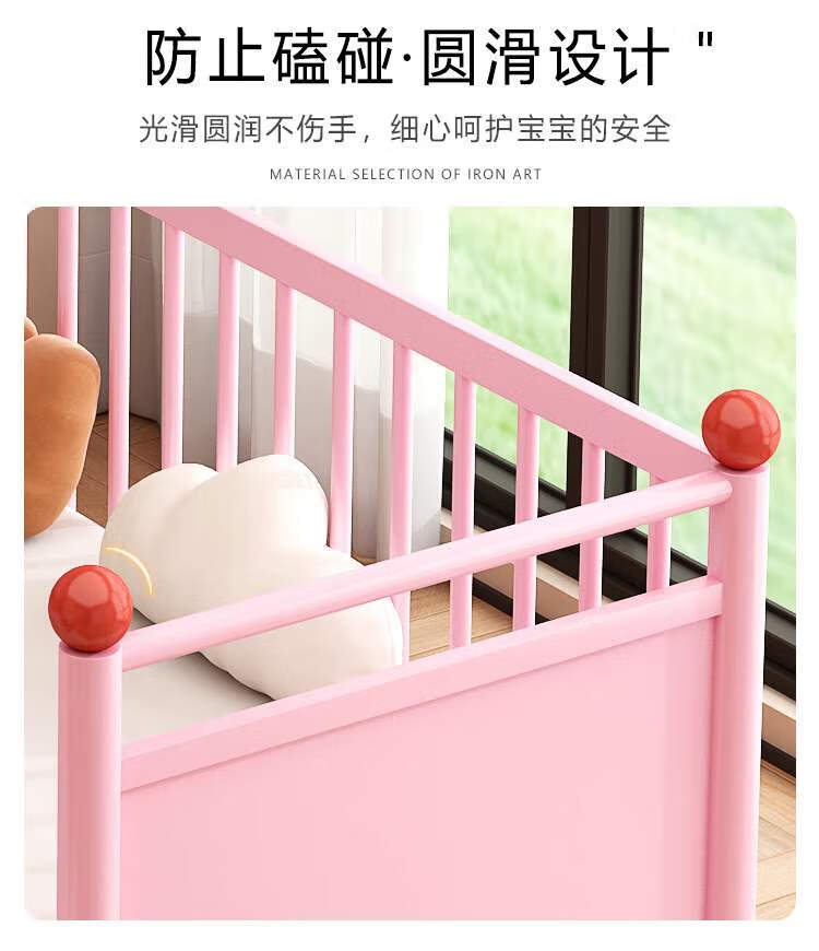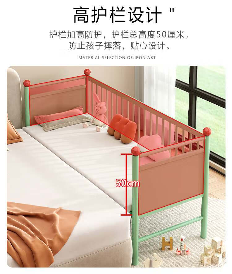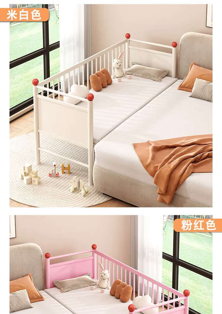 Jusi Iron Art Children's Spliced Bed with Guardrail Bed Baby Crib Extra Wide Large Bedside Artifact Baby Single Bed Children's Bed Pink Size Contact Customer Service for Customization