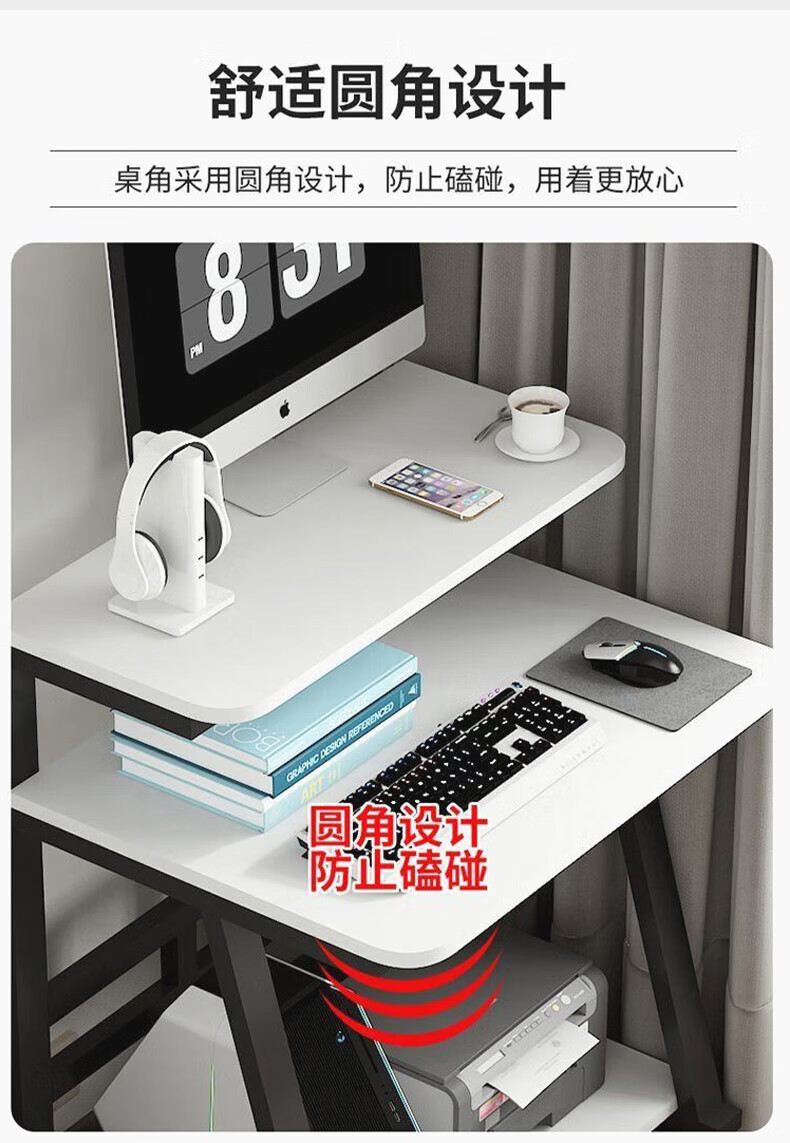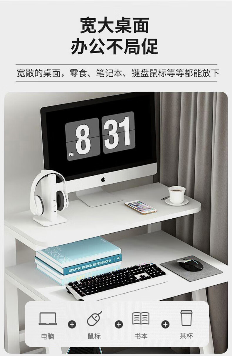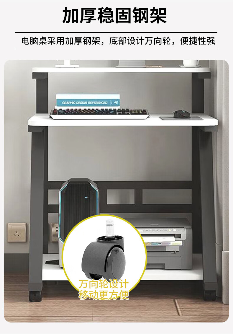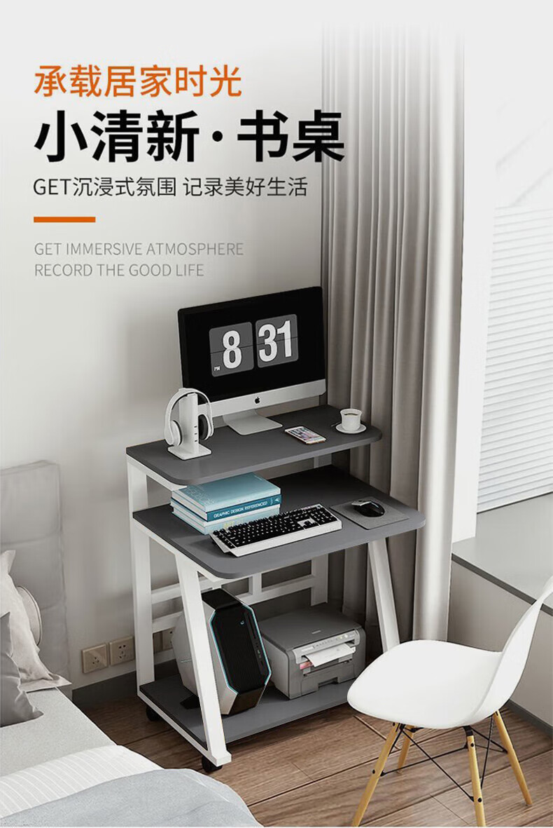 Computer table desktop desk home bedroom study table student study table small apartment workbench corner desk Blackstone double-layer study table 80*50+ free universal wheel