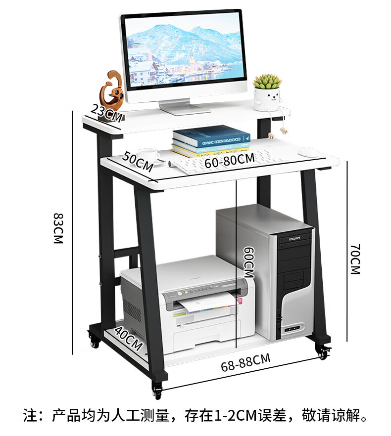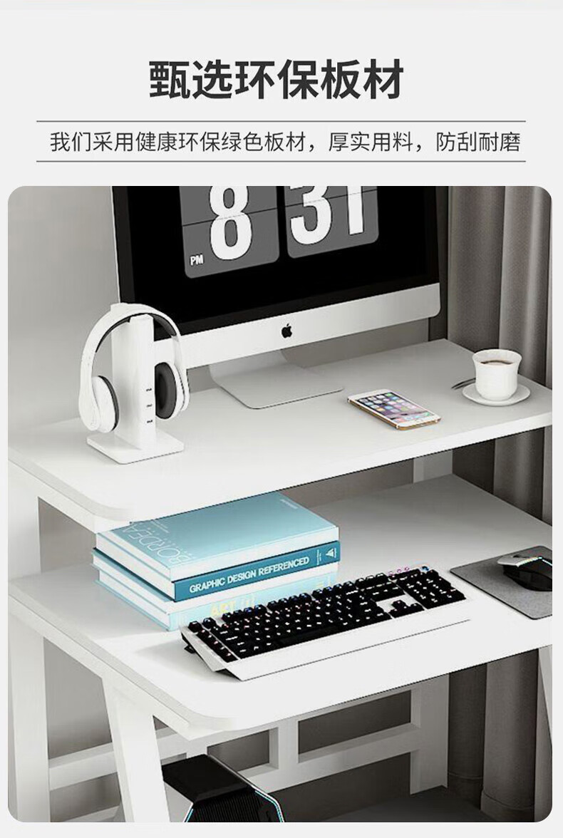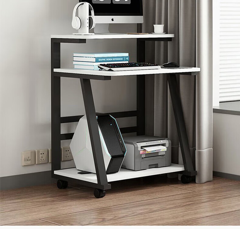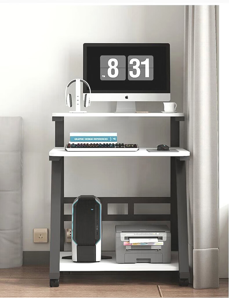 Computer table desktop desk home bedroom study table student study table small apartment workbench corner desk Blackstone double-layer study table 80*50+ free universal wheel