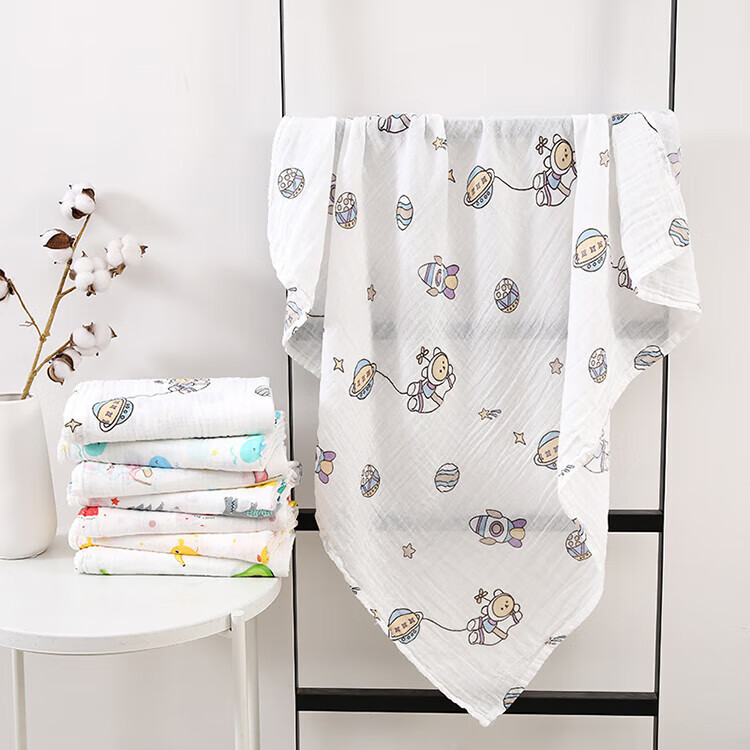 Mingyuegui gauze wrap sheet for newborn baby single layer ultra-thin summer quilt baby gauze quilt anti-jump small blanket wrap sheet Space Bear 110*110cm double layer cotton skin-friendly and breathable